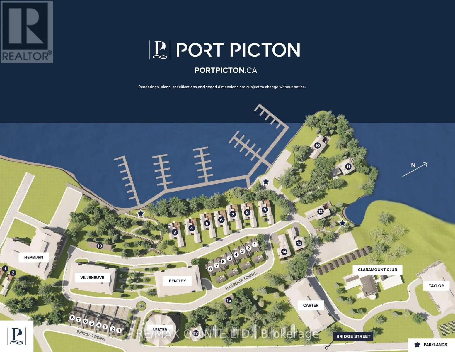 Cross Streets: Bridge Street. ** Directions: Bridge St to Cleave Ave to Clara Dr. PORT PICTON - A luxury Harbourfront Community by PORT PICTON HOMES: The TAYLOR building - Enjoy the ease of stylish condominium living! This building hosts 42 condo suites with balconies or terraces, climate controlled underground parking and storage lockers. Suite 104 (990 sq ft) corner suite features 2 spacious bedrooms, 1.5 bathrooms and expansive kitchen and living/dining room looking out to your balcony. Standard features include engineered hardwood throughout, quartz countertops, tiled showers/tubs, and more. It's a quick walk to the Claramount Club that will host a new fine dining restaurant and pub, spa, fitness facility, indoor lap pool, tennis court. Experience the tranquility of Port Picton with freedom from property maintenance. Condo/common fees $316.80/mth. (id:27476)