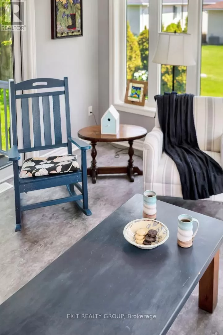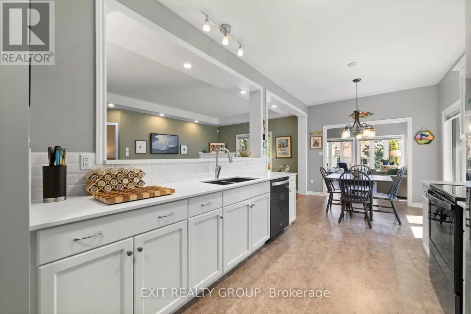 Cross Streets: Aletha Dr & Maplehurst Cres. ** Directions: Main St to Prince Edward Dr, right onto Elmdale Dr, left onto Maplehurst Cres, right onto Aletha Dr. EXIT TO THE COUNTY! WELLINGTON ON THE LAKE ADULT LIFESTYLE COMMUNITY. FREEHOLD. Thoughtfully designed, well maintained, bright 1750 sq ft turnkey home. Features bonus 4-season sunroom with private feeling back yard, 9' trayed ceiling, hardwood floors, quartz countertop, beautiful finished spacious 2-bedroom 3-bathroom bungalow in the adult lifestyle community of Wellington on the lake. This home provides open-concept main floor living with plenty of space for family and friends to stay and visit. The front entrance leads you into your formal living room/dining room space with tray ceilings, hardwood floors, gas fireplace and tons of natural light. The large eat-in Kitchen was upgraded in 2019 with quartz Derton counters and dual granite composite sinks and four appliances. A bonus 200 square foot 4-season bright sunroom gives you a great view of the park like backyards and active bird life. Your laundry is conveniently located on the main level with ease of access to the garage so you can bring your groceries directly in through your double car extended garage equipped with a laundry tub. Your large bright primary bedroom is just off the main living space, with a walk-in closet and 4-piece ensuite. The basement is constructed with 9' ceilings with a 3-piece bathroom with in-floor heating. There is a lift chair to make it easy to access the basement. In 2020 a Stone patio was added out front to engage with neighbors. New roof in 2021. Partake in the many activities that Wellington on the Lake offers; inground heated pool, tennis/pickle ball, lawn bowling, shuffleboard, outdoor and indoor fitness equipment. Lots of clubs to join. Within easy walking distance in the Wellington Golf Course and the Millenium Trail. The village of Wellington offers everything you need. The County is famous for our award-winning Wineries, Breweries, Eateries, Beaches and Spas. Ask for a tour today. Come EXIT to the County! (id:27476)