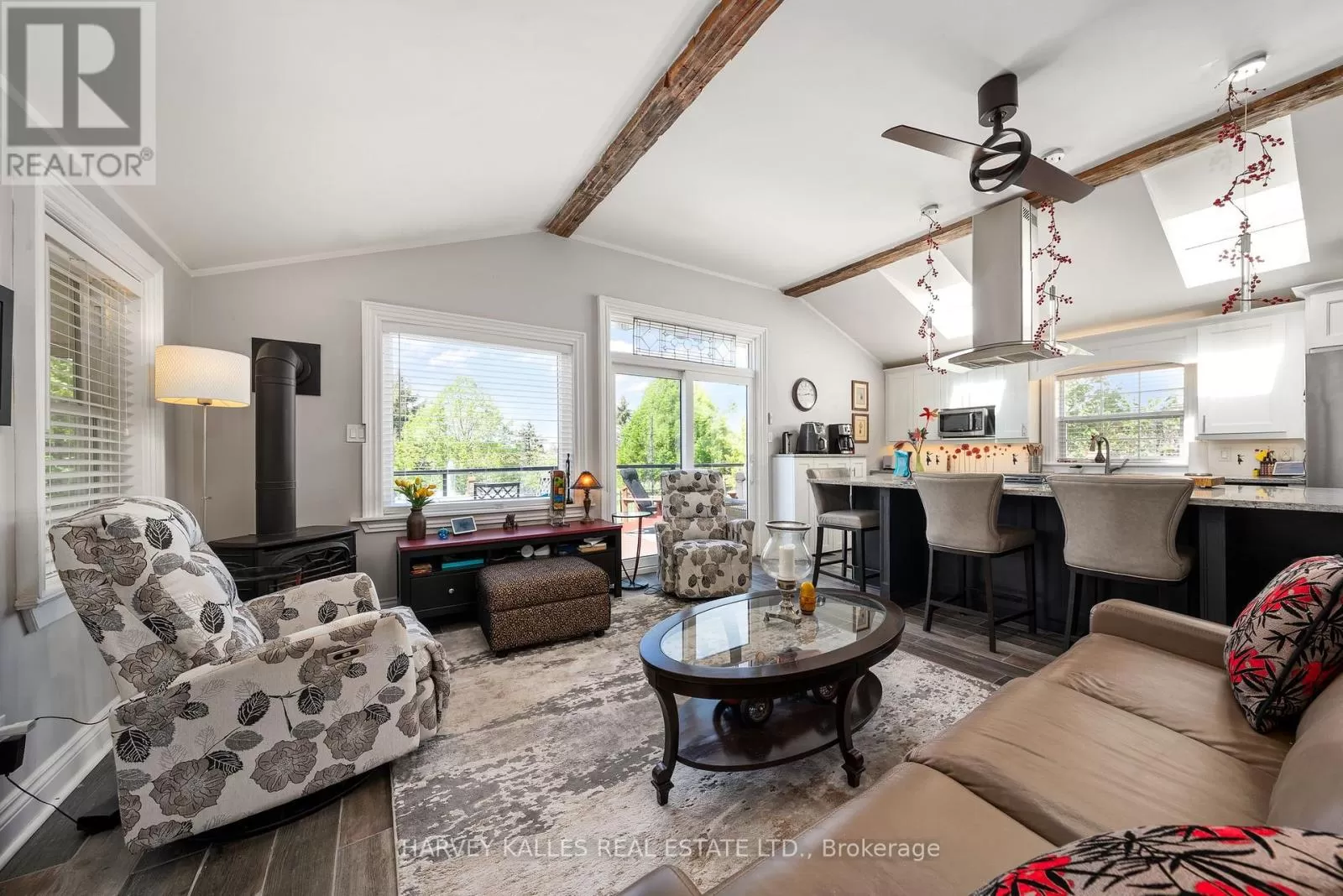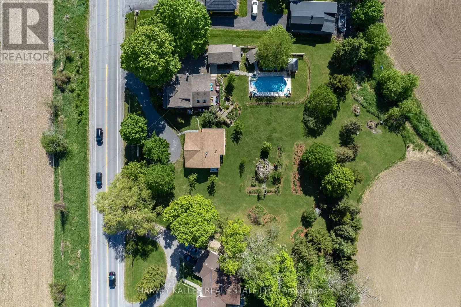 Cross Streets: Loyalist Parkway. ** Directions: From Bloomfield Main Street turn left onto Loyalist Parkway, home is on the right. Two great houses on a beautiful property in Bloomfield, Prince Edward County. This home has been designed with friends and family at its centre. A secondary house provides extra living space, complemented by a backyard pool oasis featuring a pool house, gazebo, expansive decks, and a playhouse complete with twinkle lights and patio seating nestled among many colourful flower beds. The main house is a two-bedroom, two-bathroom century home that has been thoughtfully updated and renovated throughout. It retains its original character, including wide plank floors, deep baseboards, a large family room, a well-designed screened porch to conveniently catch coats and boots, and a charming front porch. The updated kitchen and living area open onto a covered porch and a patio with a walkout to the deck overlooking the pool and gardens, extending the living space during the warmer seasons. The secondary house was created with ease and accessibility in mind. It is all on one level, with extra storage and a wraparound deck. Inside, you'll find two bedrooms and a full bathroom, along with an open-concept kitchen, dining, and living area with a patio door walkout to the backyard. The oversized single garage includes an attached garden shed-perfect for tending to the perennial gardens-and provides privacy for the in-ground pool. The property is bordered by mature trees and overlooks farm fields, offering an ideal setting just outside of town. Located only a 2 minute drive to Bloomfield Main Street, 10 minutes to Wellington, 12 minutes to downtown Picton, and within a short walk to the Millennium Trail. (id:27476)