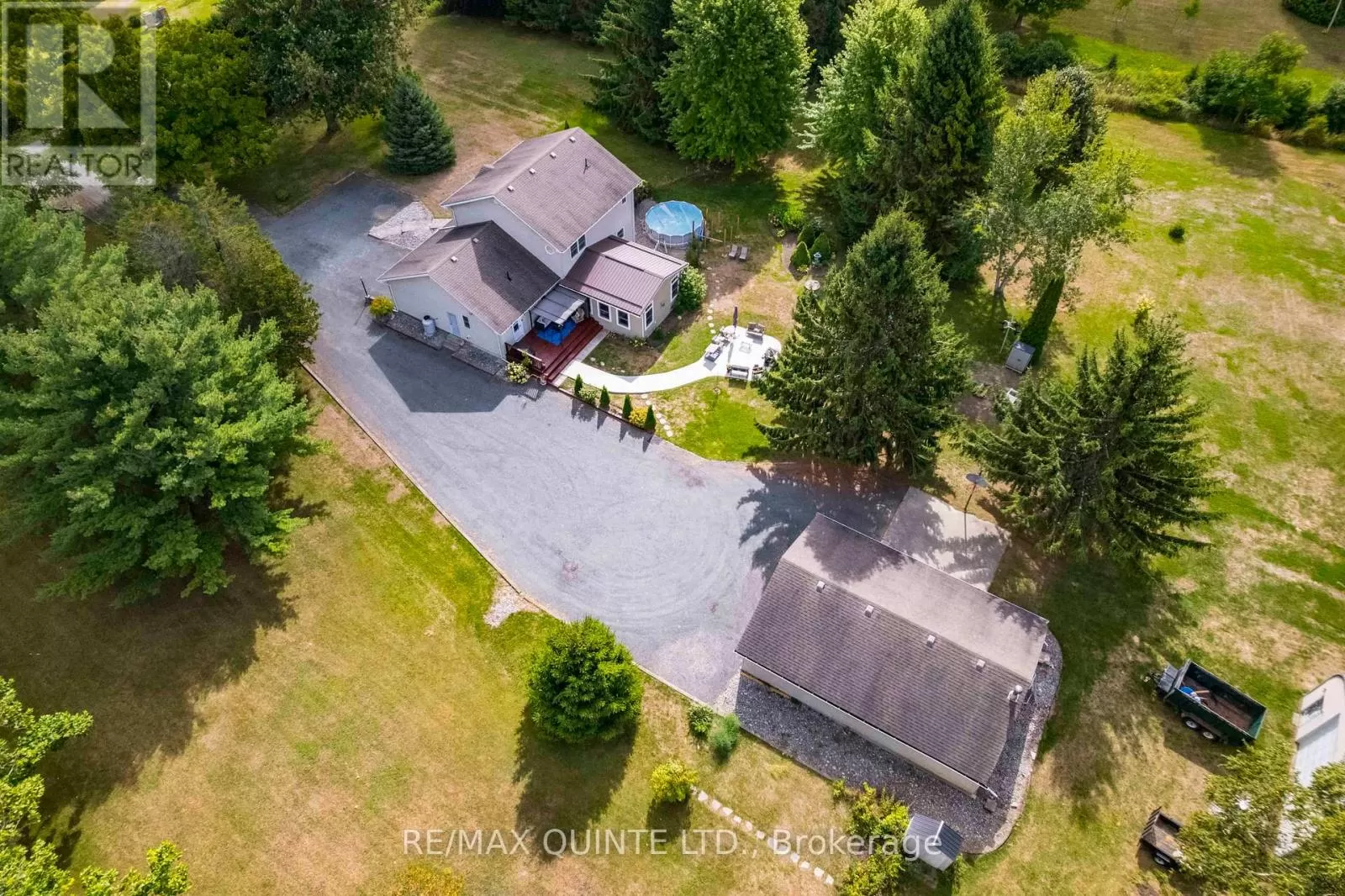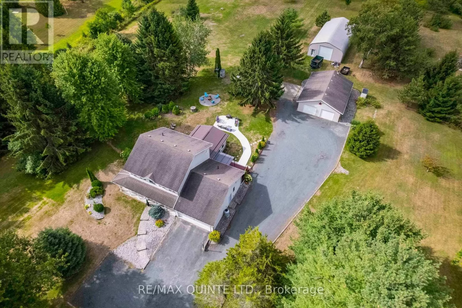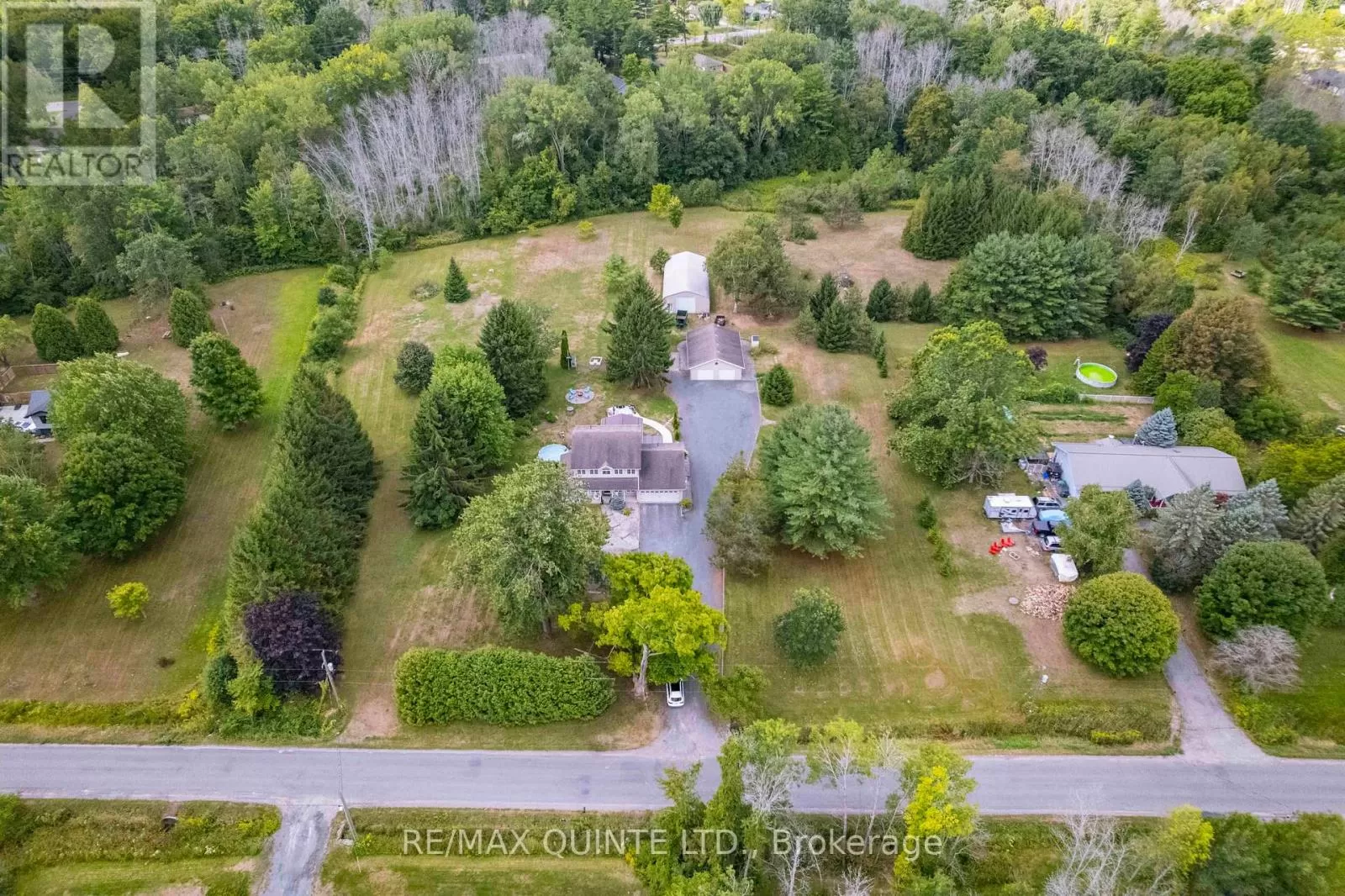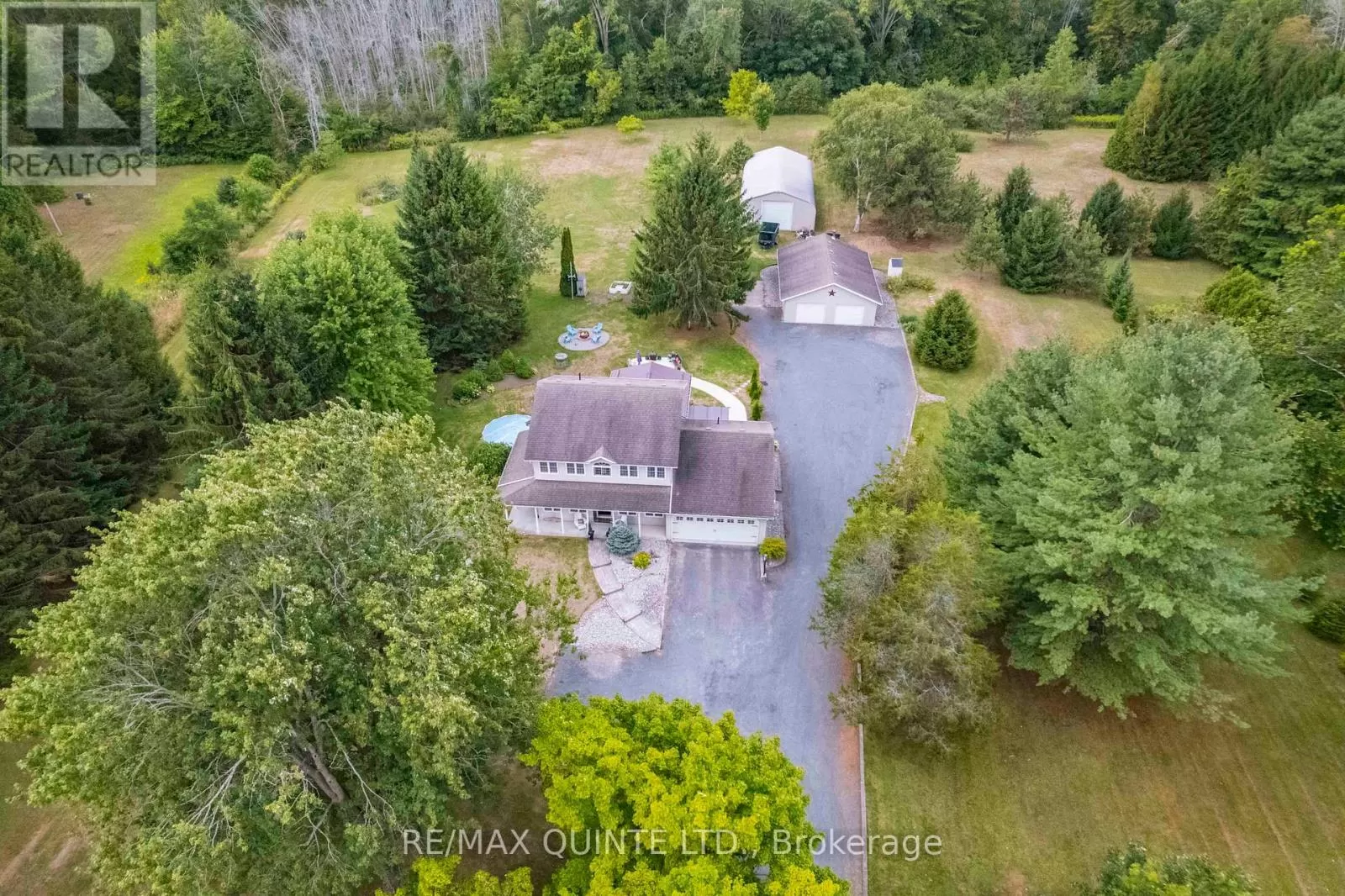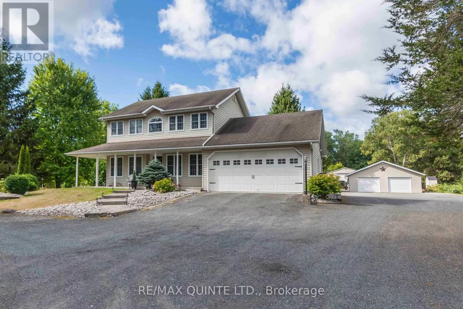 Cross Streets: Rednersville Road/ Loyalist Parkway. ** Directions: Loyalist Parkway, go East on Rednersville Road, then South on Taft. Solid, well appointed family home on quiet road in Prince Edward County with 2 large outbuildings on just under 5 beautiful acres. The interior features gracious foyer with hardwood staircase, formal living room and den both with hardwood floors. Beautiful kitchen with bright breakfast nook, abundance of quality cabinets, tile backsplash and granite countertops. Oversized dining room with laminate flooring and open to a bright sunken family room with propane fireplace and cathedral ceiling. Main level laundry area and 4 piece bath complete the main level. 2nd storey offers master suite with walk-in closet and 4 piece ensuite bath. 2 additional bedrooms with separate 4 piece bath. Full unspoiled basement offers plenty of storage space and room to build a large rec. room area. Economical Geo Thermal system for heating and cooling. 2 exterior doors in 2024, Exterior features manicured grounds and gardens, seasonal creek on the south side, covered front porch, stamped concrete front walkway, rear patio and additional concrete patio for entertaining and mature trees. This unique home additionally has 2 detached outbuildings. A 28 x 40 insulated garage with separate geothermal system for heating/cooling and this garage can hold another 4 vehicles and detached 30 x 60 Quanset Hut. Both are great for storing lots of toys!! lots of wildlife including birds, turkey and deer!! Abundance of parking space. A unique property and loaded with value! (id:27476)