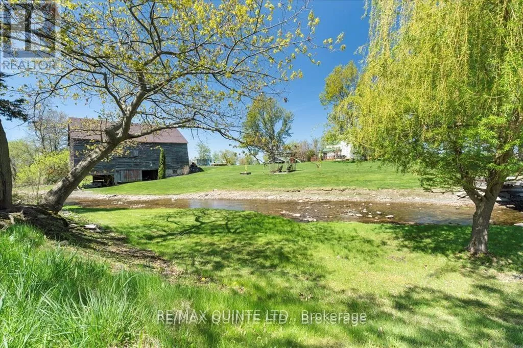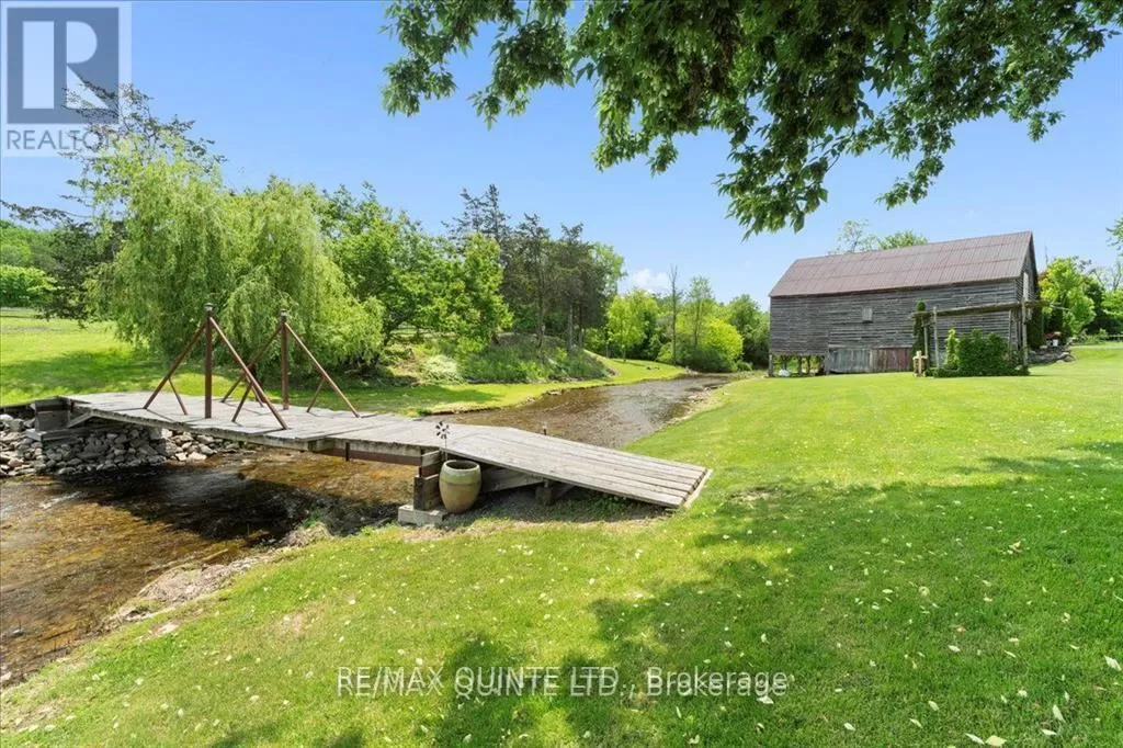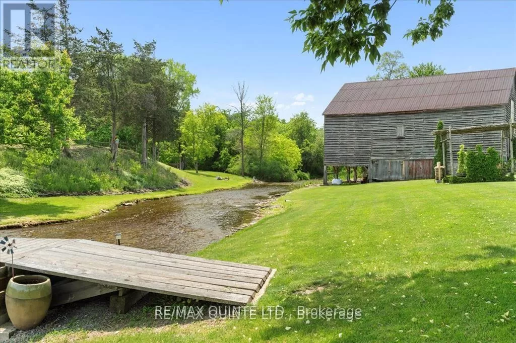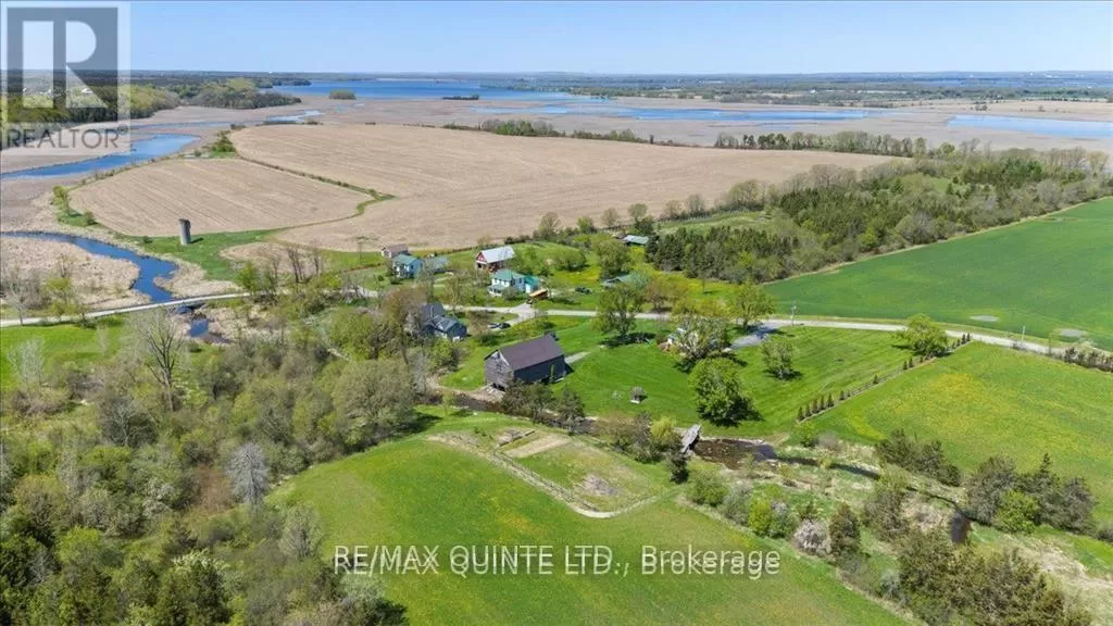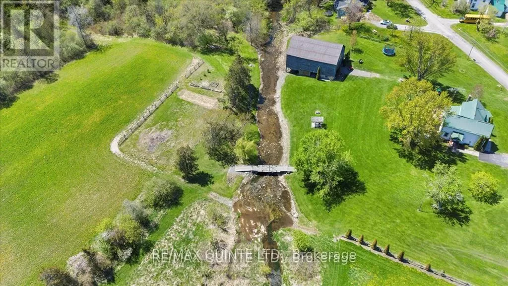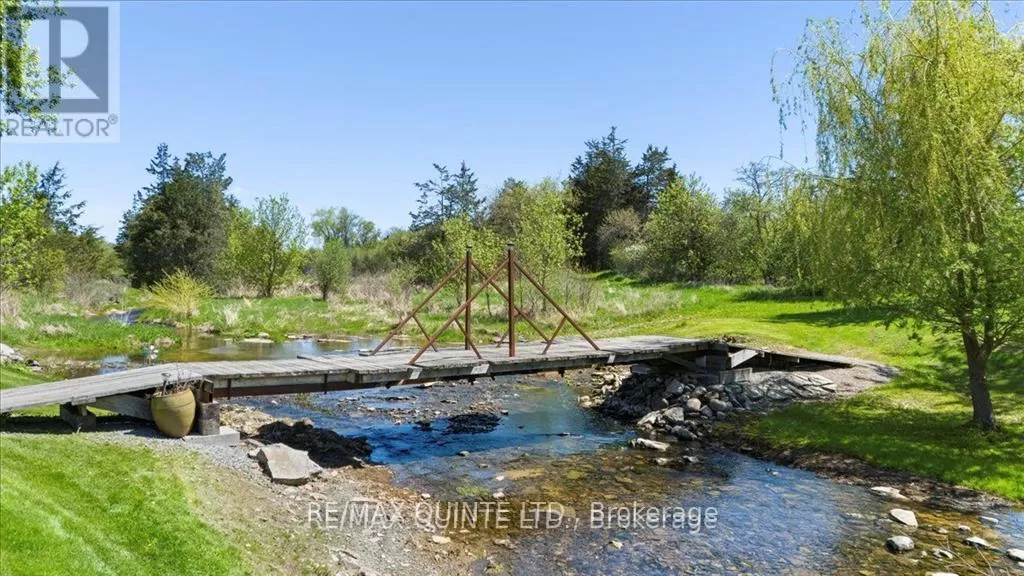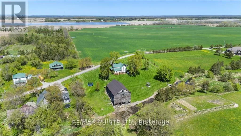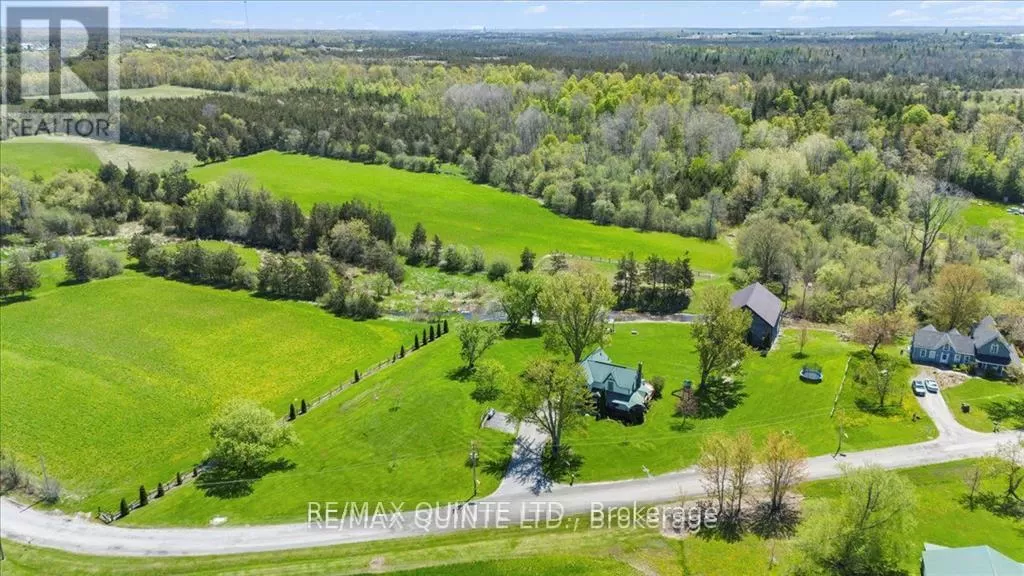 Cross Streets: County Road 14/County Road 15. ** Directions: Follow County Roads 14 or 15 to Gomorrah Road, just outside of Demorestville. Nestled in a serene historical hamlet of Prince Edward County, this magnificent two-storey country home sits on a picturesque 2.6 acre parcel, featuring Smith's Creek gently meandering through the property behind a beautifully restored multi-level Dutch barn. Cross the creek via a quaint bridge to discover a spacious garden area - perfect for quiet enjoyment or outdoor gatherings. Meticulous care has been taken to preserve the original character of this century home. The main floor welcomes you with grand 8-foot double library doors leading to both the formal living room and the cozy family room. Each space is enhanced by original pine flooring, elegant trim, soaring ceilings, and the inviting glow of propane fireplaces. The living room also boasts an intricately designed tin ceiling, adding a touch of period charm. The newly installed kitchen (2022) was thoughtfully crafted to harmonize with the homes historic aesthetic. It offers abundant cabinetry, a central island, and opens into the bright dining area, which leads to a large deck overlooking the grounds. This deck connects seamlessly with the inviting wraparound covered porch - ideal for enjoying peaceful country views. Upstairs, the second level features four comfortable bedrooms, a spacious 4-piece bathroom, and a large walk-in storage closet. Original hardwood floors and woodwork continue throughout, preserving the timeless warmth and character of the home. The impressive multi-level barn, dating back to the late 1800's has undergone significant structural improvements, including foundation reinforcement and interior refinishing with rustic pine planks. Currently used for dry storage, its versatile design and unique atmosphere make it a perfect venue for festive events or creative ventures. Surrounded by farmland and forest teeming with local wildlife and bird species, this one-of-a-kind property offers a rare opportunity to own a piece of County heritage, with all the tranquility and beauty of rural living. (id:27476)