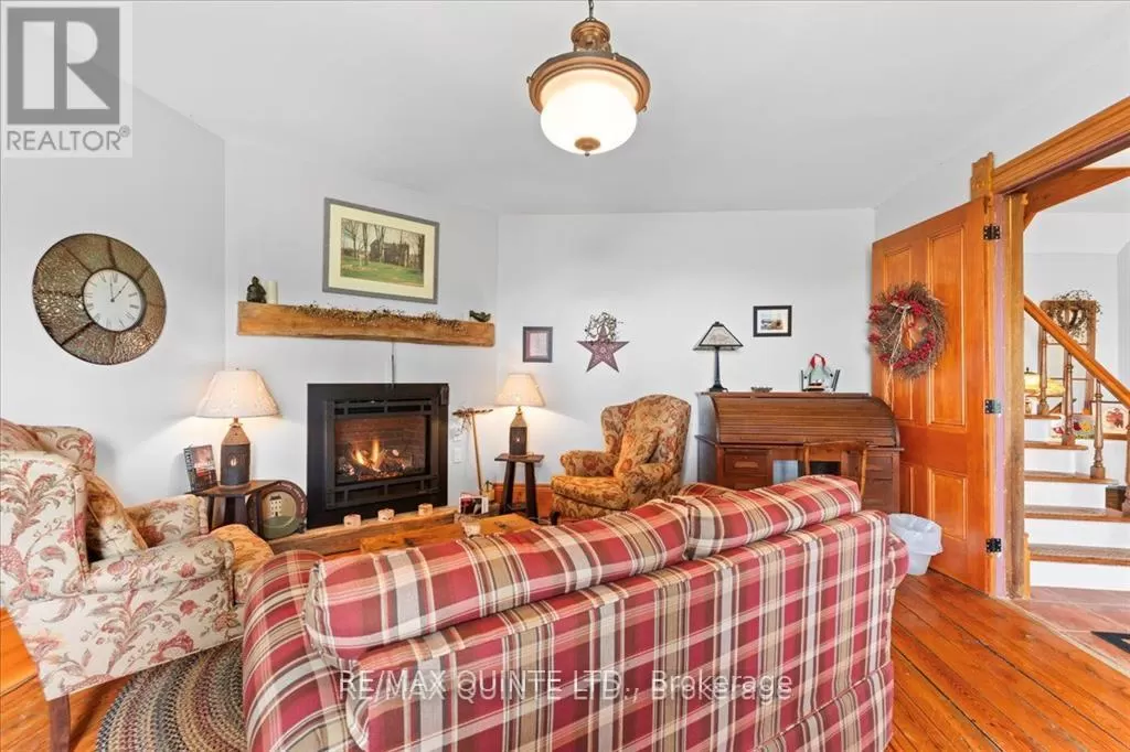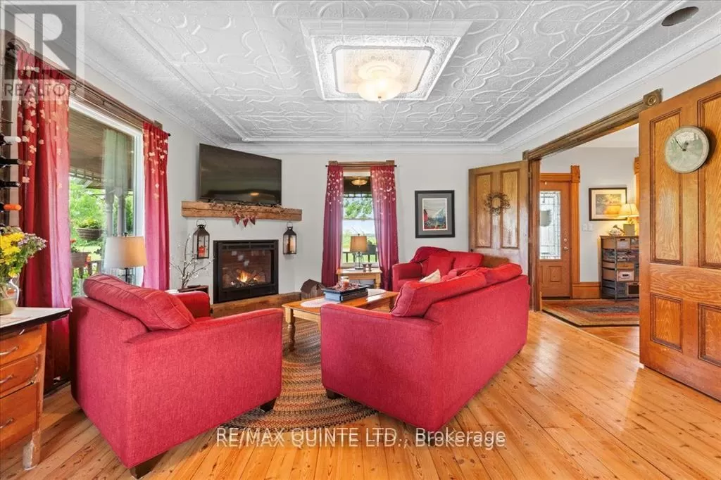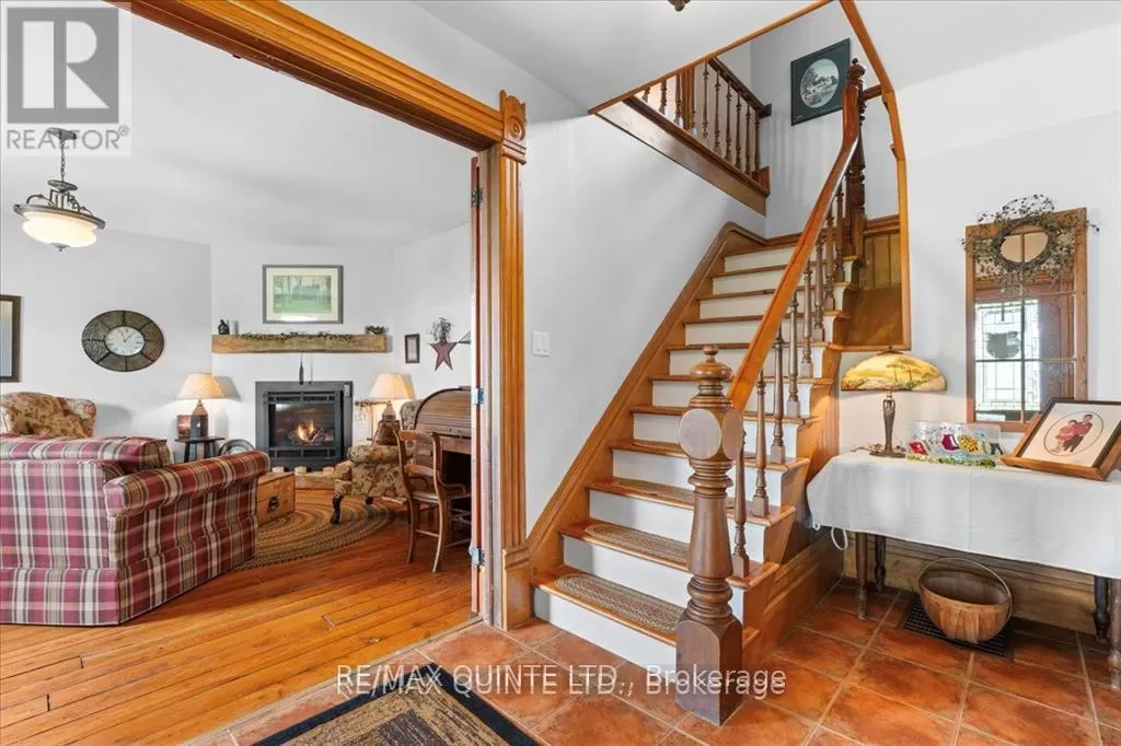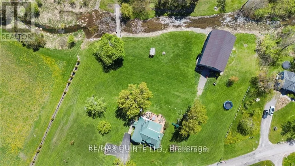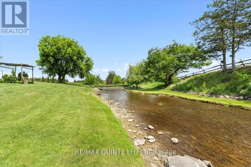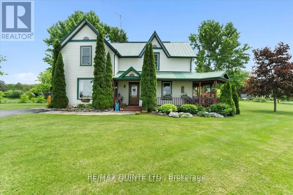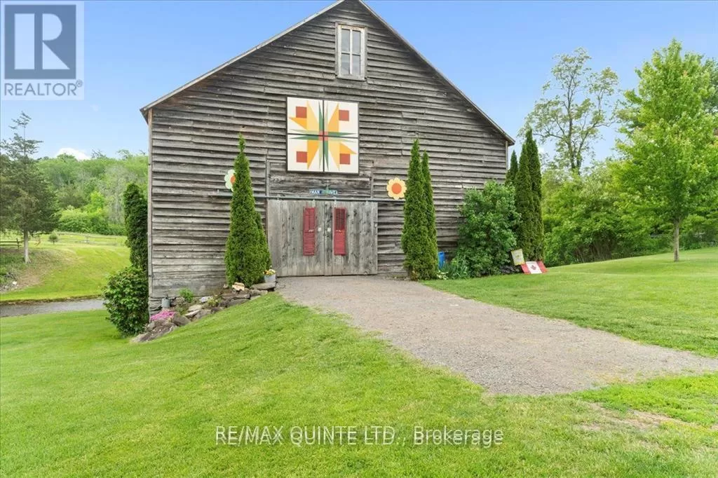 Cross Streets: County Road 14/County Road 15. ** Directions: Follow County Roads 14 or 15 to Gomorrah Road, just outside of Demorestville. Nestled in a serene historical hamlet of Prince Edward County, this magnificent two-storey country home sits on a picturesque 2.6 acre parcel, featuring Smith's Creek gently meandering through the property behind a beautifully restored multi-level Dutch barn. Cross the creek via a quaint bridge to discover a spacious garden area - perfect for quiet enjoyment or outdoor gatherings. Meticulous care has been taken to preserve the original character of this century home. The main floor welcomes you with grand 8-foot double library doors leading to both the formal living room and the cozy family room. Each space is enhanced by original pine flooring, elegant trim, soaring ceilings, and the inviting glow of propane fireplaces. The living room also boasts an intricately designed tin ceiling, adding a touch of period charm. The newly installed kitchen (2022) was thoughtfully crafted to harmonize with the homes historic aesthetic. It offers abundant cabinetry, a central island, and opens into the bright dining area, which leads to a large deck overlooking the grounds. This deck connects seamlessly with the inviting wraparound covered porch - ideal for enjoying peaceful country views. Upstairs, the second level features four comfortable bedrooms, a spacious 4-piece bathroom, and a large walk-in storage closet. Original hardwood floors and woodwork continue throughout, preserving the timeless warmth and character of the home. The impressive multi-level barn, dating back to the late 1800's has undergone significant structural improvements, including foundation reinforcement and interior refinishing with rustic pine planks. Currently used for dry storage, its versatile design and unique atmosphere make it a perfect venue for festive events or creative ventures. Surrounded by farmland and forest teeming with local wildlife and bird species, this one-of-a-kind property offers a rare opportunity to own a piece of County heritage, with all the tranquility and beauty of rural living. (id:27476)