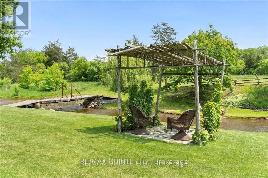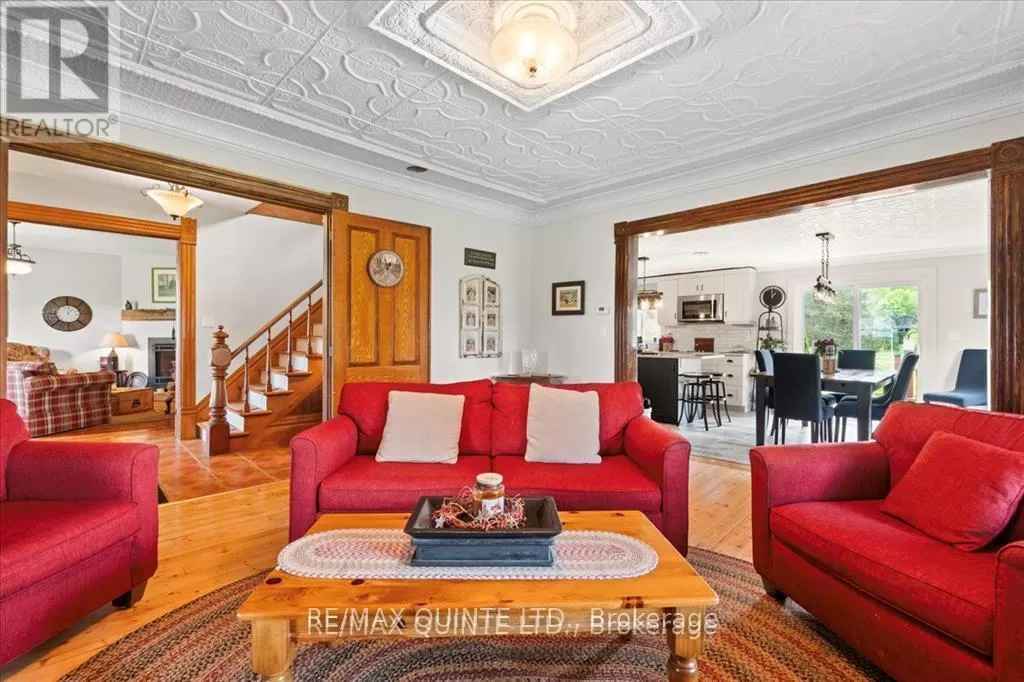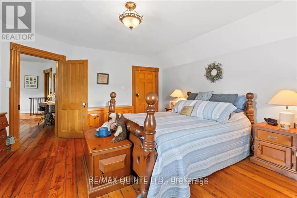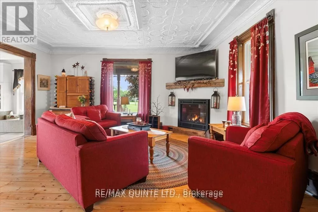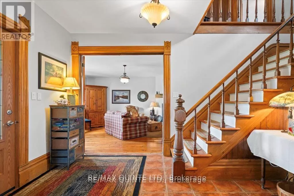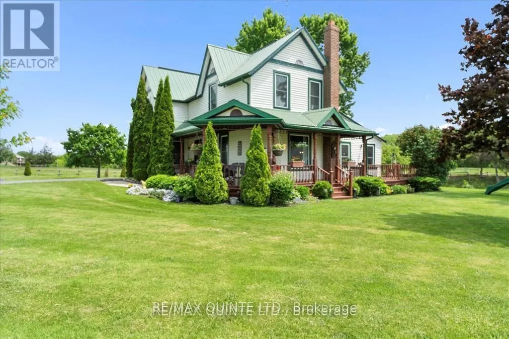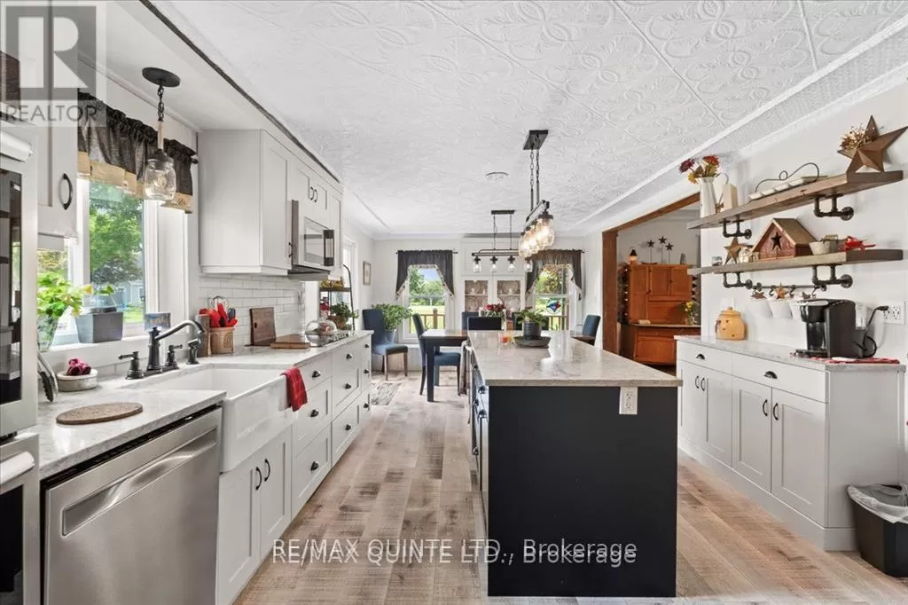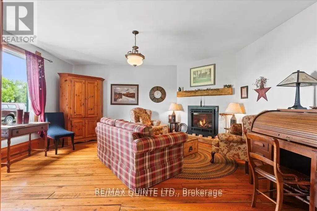 Cross Streets: County Road 14/County Road 15. ** Directions: Follow County Roads 14 or 15 to Gomorrah Road, just outside of Demorestville. Nestled in a serene historical hamlet of Prince Edward County, this magnificent two-storey country home sits on a picturesque 2.6 acre parcel, featuring Smith's Creek gently meandering through the property behind a beautifully restored multi-level Dutch barn. Cross the creek via a quaint bridge to discover a spacious garden area - perfect for quiet enjoyment or outdoor gatherings. Meticulous care has been taken to preserve the original character of this century home. The main floor welcomes you with grand 8-foot double library doors leading to both the formal living room and the cozy family room. Each space is enhanced by original pine flooring, elegant trim, soaring ceilings, and the inviting glow of propane fireplaces. The living room also boasts an intricately designed tin ceiling, adding a touch of period charm. The newly installed kitchen (2022) was thoughtfully crafted to harmonize with the homes historic aesthetic. It offers abundant cabinetry, a central island, and opens into the bright dining area, which leads to a large deck overlooking the grounds. This deck connects seamlessly with the inviting wraparound covered porch - ideal for enjoying peaceful country views. Upstairs, the second level features four comfortable bedrooms, a spacious 4-piece bathroom, and a large walk-in storage closet. Original hardwood floors and woodwork continue throughout, preserving the timeless warmth and character of the home. The impressive multi-level barn, dating back to the late 1800's has undergone significant structural improvements, including foundation reinforcement and interior refinishing with rustic pine planks. Currently used for dry storage, its versatile design and unique atmosphere make it a perfect venue for festive events or creative ventures. Surrounded by farmland and forest teeming with local wildlife and bird species, this one-of-a-kind property offers a rare opportunity to own a piece of County heritage, with all the tranquility and beauty of rural living. (id:27476)