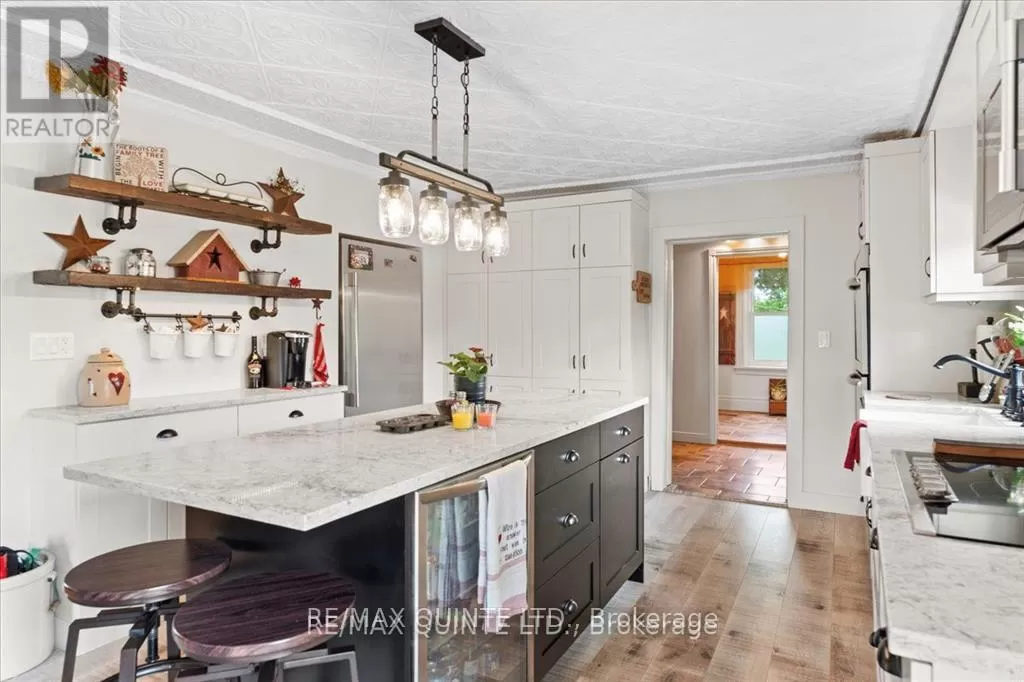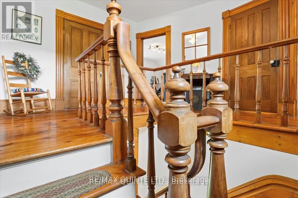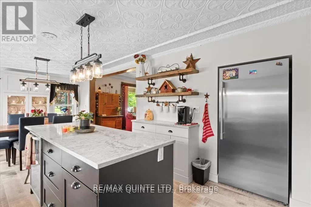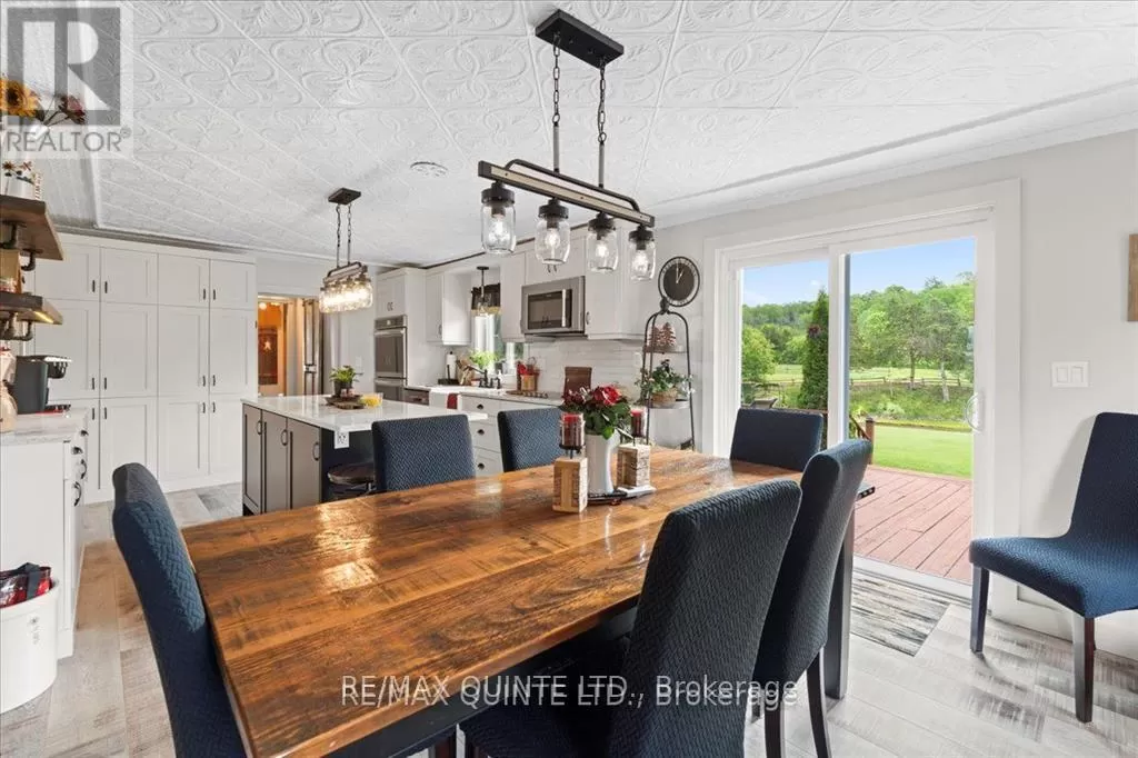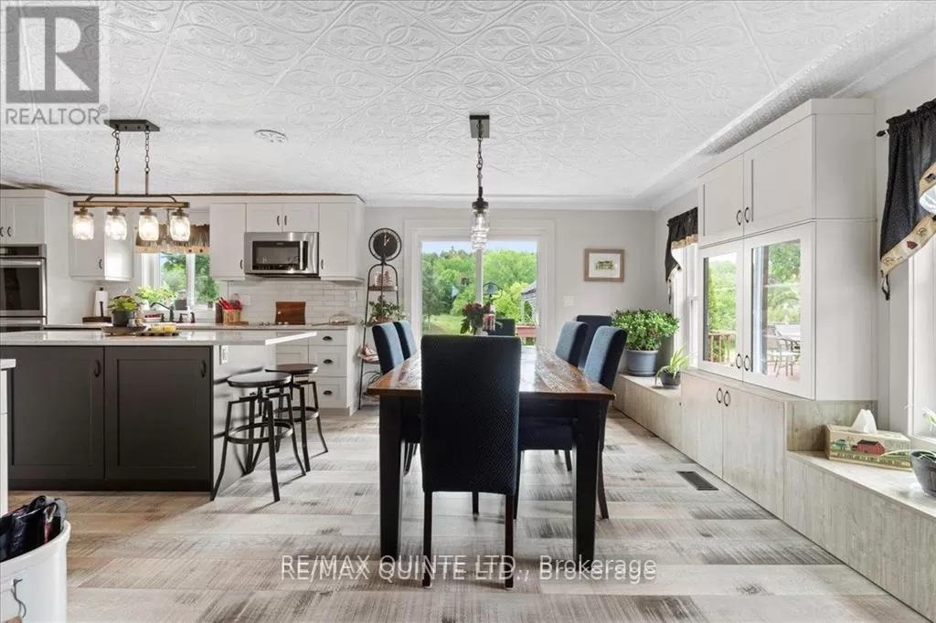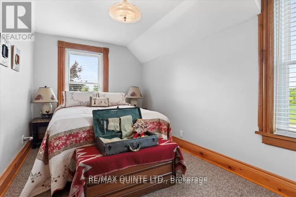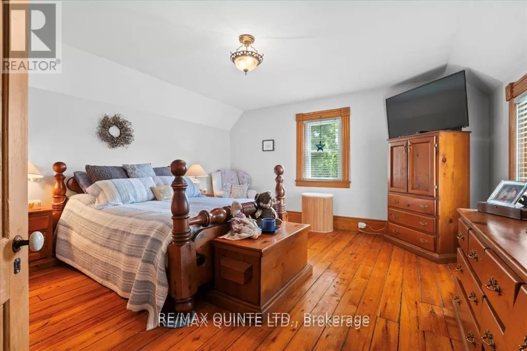 Cross Streets: County Road 14/County Road 15. ** Directions: Follow County Roads 14 or 15 to Gomorrah Road, just outside of Demorestville. Nestled in a serene historical hamlet of Prince Edward County, this magnificent two-storey country home sits on a picturesque 2.6 acre parcel, featuring Smith's Creek gently meandering through the property behind a beautifully restored multi-level Dutch barn. Cross the creek via a quaint bridge to discover a spacious garden area - perfect for quiet enjoyment or outdoor gatherings. Meticulous care has been taken to preserve the original character of this century home. The main floor welcomes you with grand 8-foot double library doors leading to both the formal living room and the cozy family room. Each space is enhanced by original pine flooring, elegant trim, soaring ceilings, and the inviting glow of propane fireplaces. The living room also boasts an intricately designed tin ceiling, adding a touch of period charm. The newly installed kitchen (2022) was thoughtfully crafted to harmonize with the homes historic aesthetic. It offers abundant cabinetry, a central island, and opens into the bright dining area, which leads to a large deck overlooking the grounds. This deck connects seamlessly with the inviting wraparound covered porch - ideal for enjoying peaceful country views. Upstairs, the second level features four comfortable bedrooms, a spacious 4-piece bathroom, and a large walk-in storage closet. Original hardwood floors and woodwork continue throughout, preserving the timeless warmth and character of the home. The impressive multi-level barn, dating back to the late 1800's has undergone significant structural improvements, including foundation reinforcement and interior refinishing with rustic pine planks. Currently used for dry storage, its versatile design and unique atmosphere make it a perfect venue for festive events or creative ventures. Surrounded by farmland and forest teeming with local wildlife and bird species, this one-of-a-kind property offers a rare opportunity to own a piece of County heritage, with all the tranquility and beauty of rural living. (id:27476)