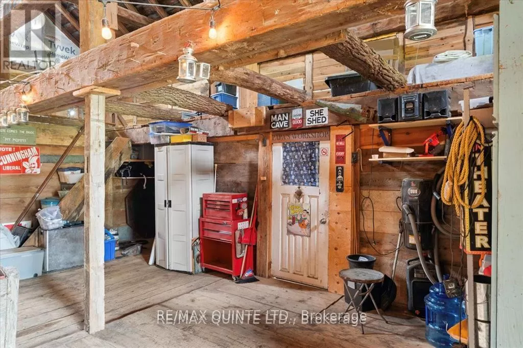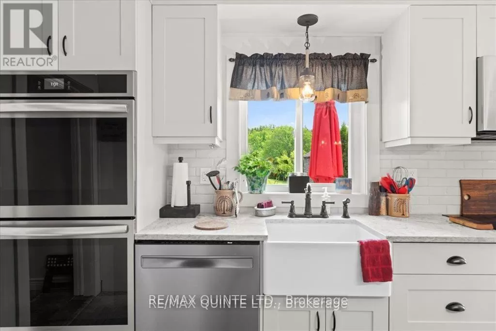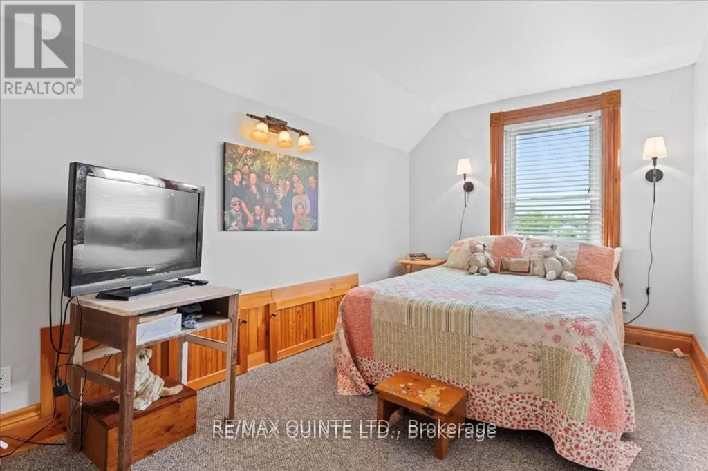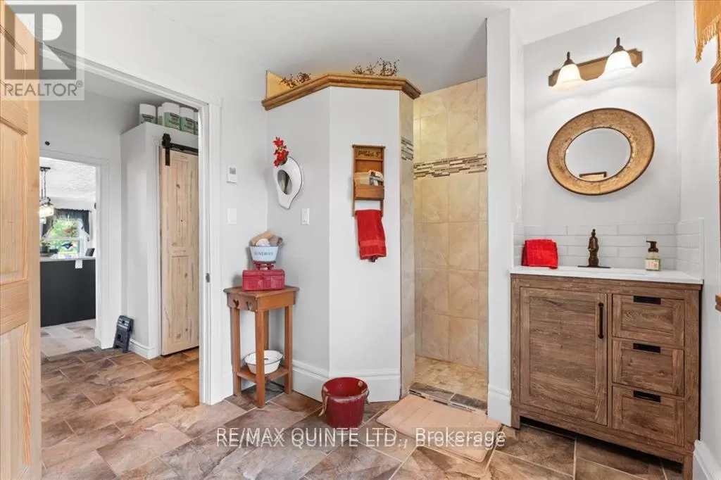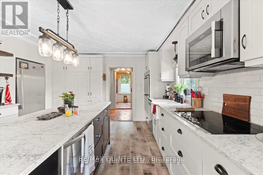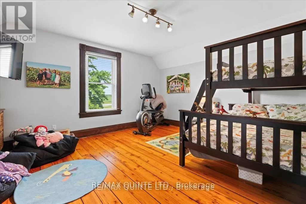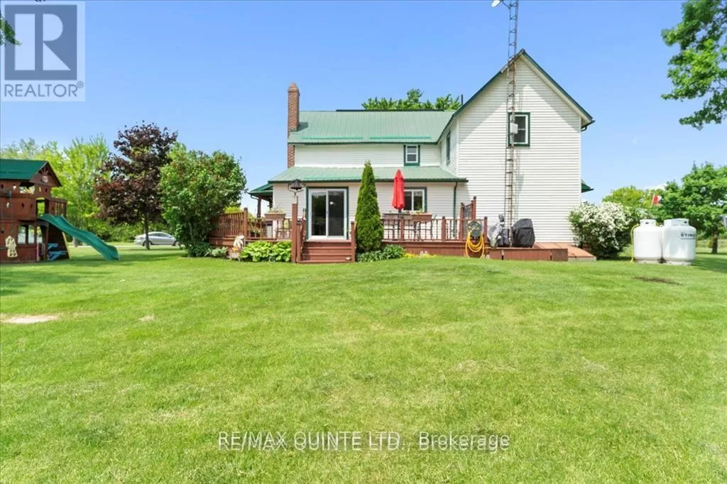 Cross Streets: County Road 14/County Road 15. ** Directions: Follow County Roads 14 or 15 to Gomorrah Road, just outside of Demorestville. Nestled in a serene historical hamlet of Prince Edward County, this magnificent two-storey country home sits on a picturesque 2.6 acre parcel, featuring Smith's Creek gently meandering through the property behind a beautifully restored multi-level Dutch barn. Cross the creek via a quaint bridge to discover a spacious garden area - perfect for quiet enjoyment or outdoor gatherings. Meticulous care has been taken to preserve the original character of this century home. The main floor welcomes you with grand 8-foot double library doors leading to both the formal living room and the cozy family room. Each space is enhanced by original pine flooring, elegant trim, soaring ceilings, and the inviting glow of propane fireplaces. The living room also boasts an intricately designed tin ceiling, adding a touch of period charm. The newly installed kitchen (2022) was thoughtfully crafted to harmonize with the homes historic aesthetic. It offers abundant cabinetry, a central island, and opens into the bright dining area, which leads to a large deck overlooking the grounds. This deck connects seamlessly with the inviting wraparound covered porch - ideal for enjoying peaceful country views. Upstairs, the second level features four comfortable bedrooms, a spacious 4-piece bathroom, and a large walk-in storage closet. Original hardwood floors and woodwork continue throughout, preserving the timeless warmth and character of the home. The impressive multi-level barn, dating back to the late 1800's has undergone significant structural improvements, including foundation reinforcement and interior refinishing with rustic pine planks. Currently used for dry storage, its versatile design and unique atmosphere make it a perfect venue for festive events or creative ventures. Surrounded by farmland and forest teeming with local wildlife and bird species, this one-of-a-kind property offers a rare opportunity to own a piece of County heritage, with all the tranquility and beauty of rural living. (id:27476)