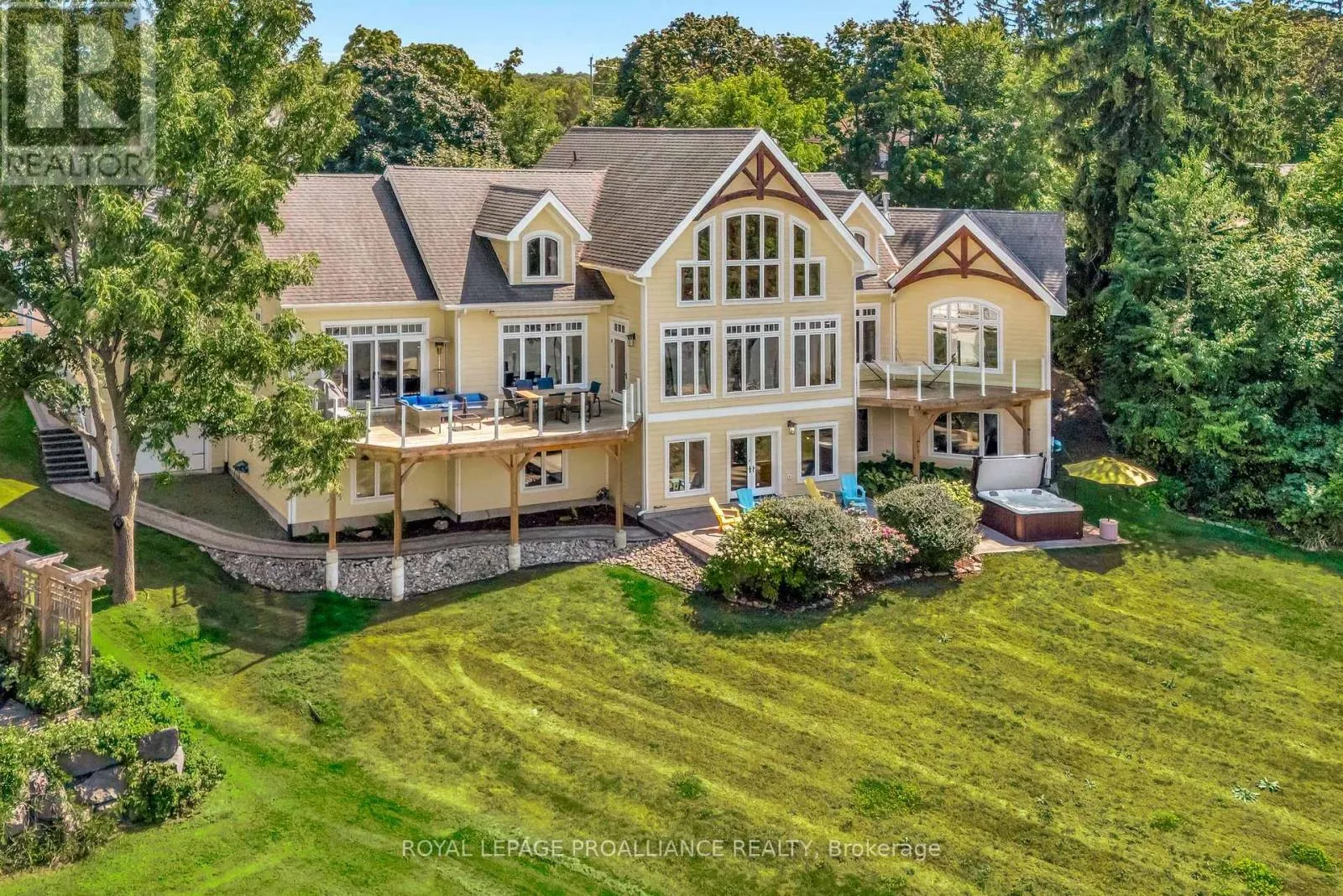 Cross Streets: Loyalist Parkway & Bridge Street. ** Directions: From Picton take Bridge Street towards Glenora Ferry. On left side just down from Port Picton. This luxurious estate is an executive, custom post and beam waterfront property on Picton Bay. With 1.3 acres of land, directly across the harbour from the Prince Edward Yacht Club, this home is a boat lovers paradise. Built in 2012, this magnificent retreat features vaulted ceilings, three spacious levels with five bedrooms and four bathrooms, a walkout patio on the lower level, and two stunning main-floor decks perfect for taking in the harbour view with your morning coffee. Over 5,000 total sq ft of living space to enjoy. A rare 2+2 car garage completes the picture. This beautiful place is a perfect gathering spot for friends and family and is an entertainers dream complete with hot tub, custom waterfront benches, fire pit, basketball and pickle ball games area, large boat dock with kayak launch, professional fitness room and more. Situated within the town limits, just minutes from all the amenities this lovely town has to offer. Located only 2.5 hours from Toronto, Prince Edward County is renowned for the beaches at Sandbanks Provincial Park, outstanding cuisine, wine, art galleries, wineries, golf, local markets and shops. Home to the Royal Hotel, which was recently awarded the prestigious MICHELIN Key, and our beloved historical Regent Theatre. Prince Edward Memorial Hospital is 10 minutes away and our new hospital is rising from the ground right behind the old one! If you have been considering buying a home in the County, this is the one you've been waiting for. Why not live where you love to visit? (id:27476)