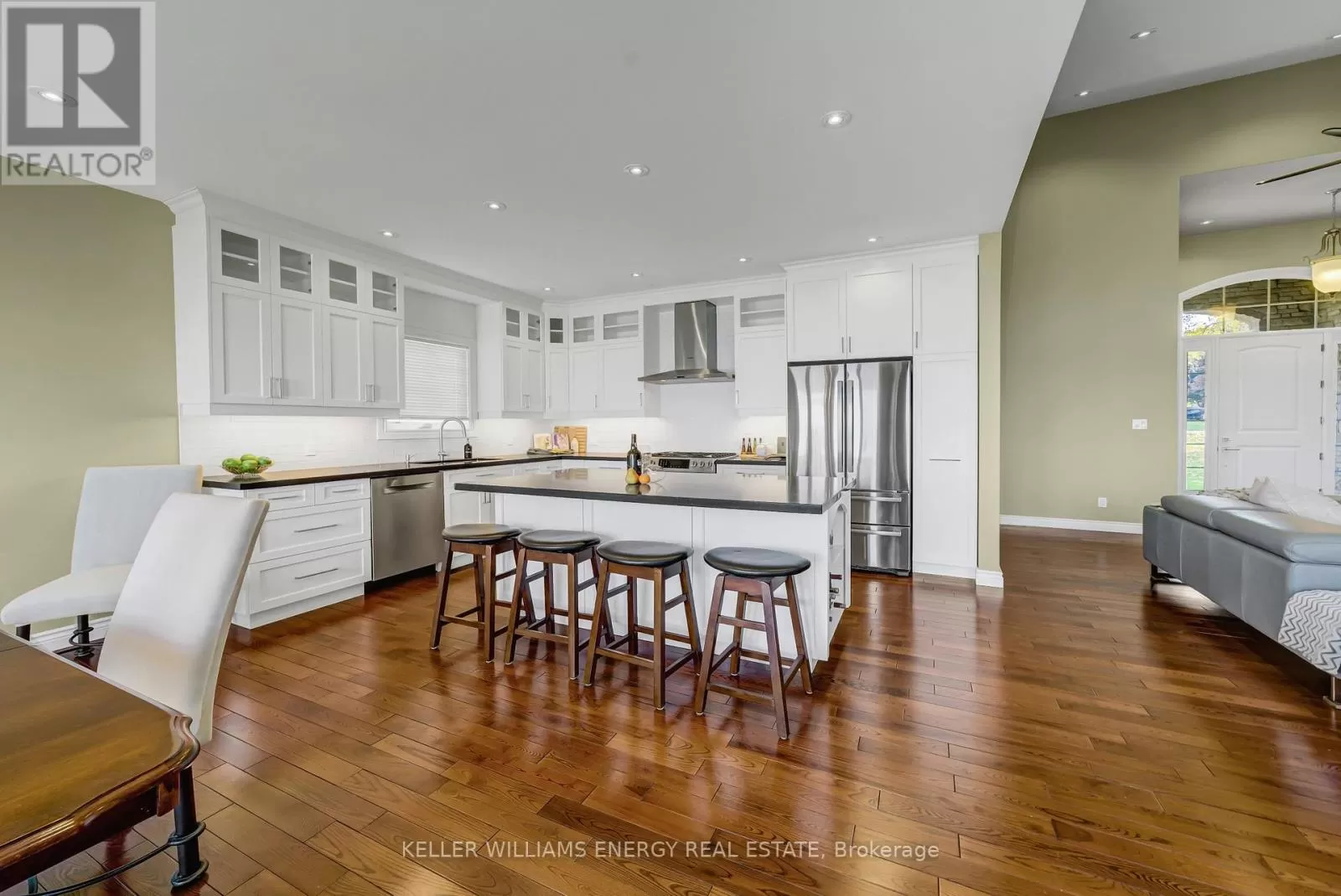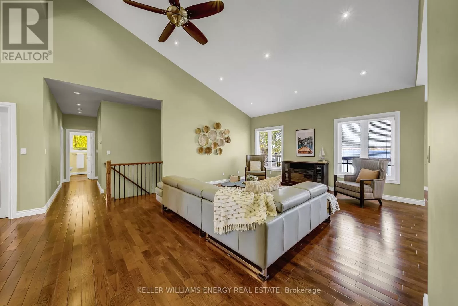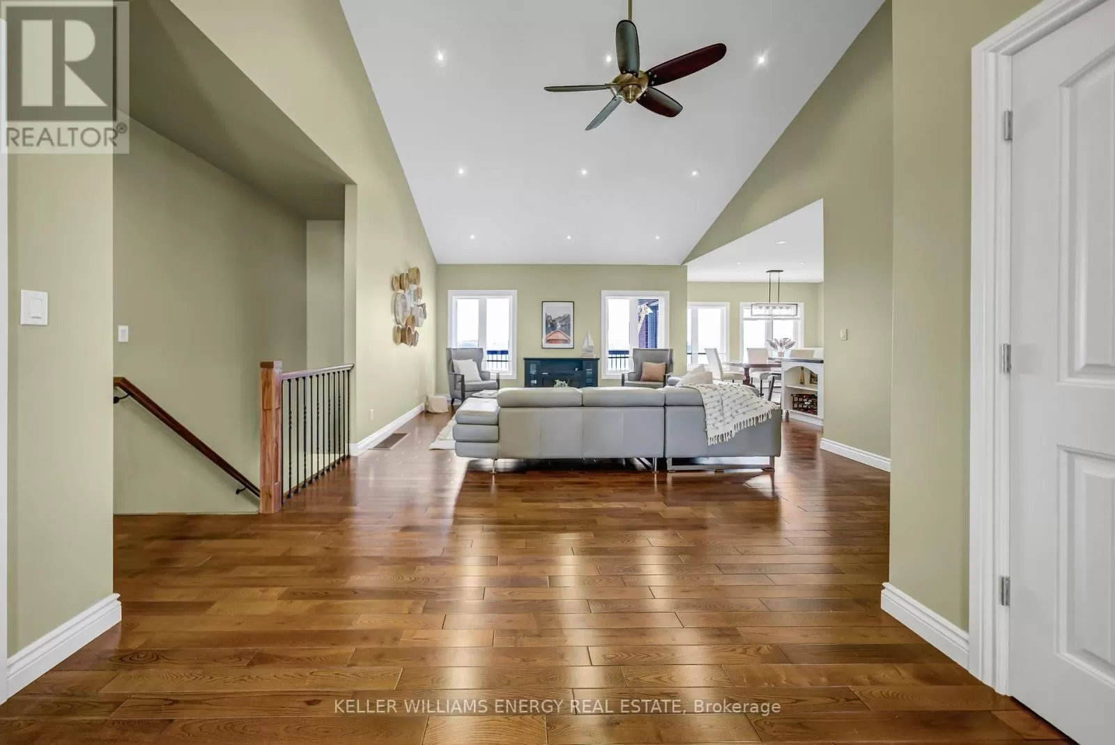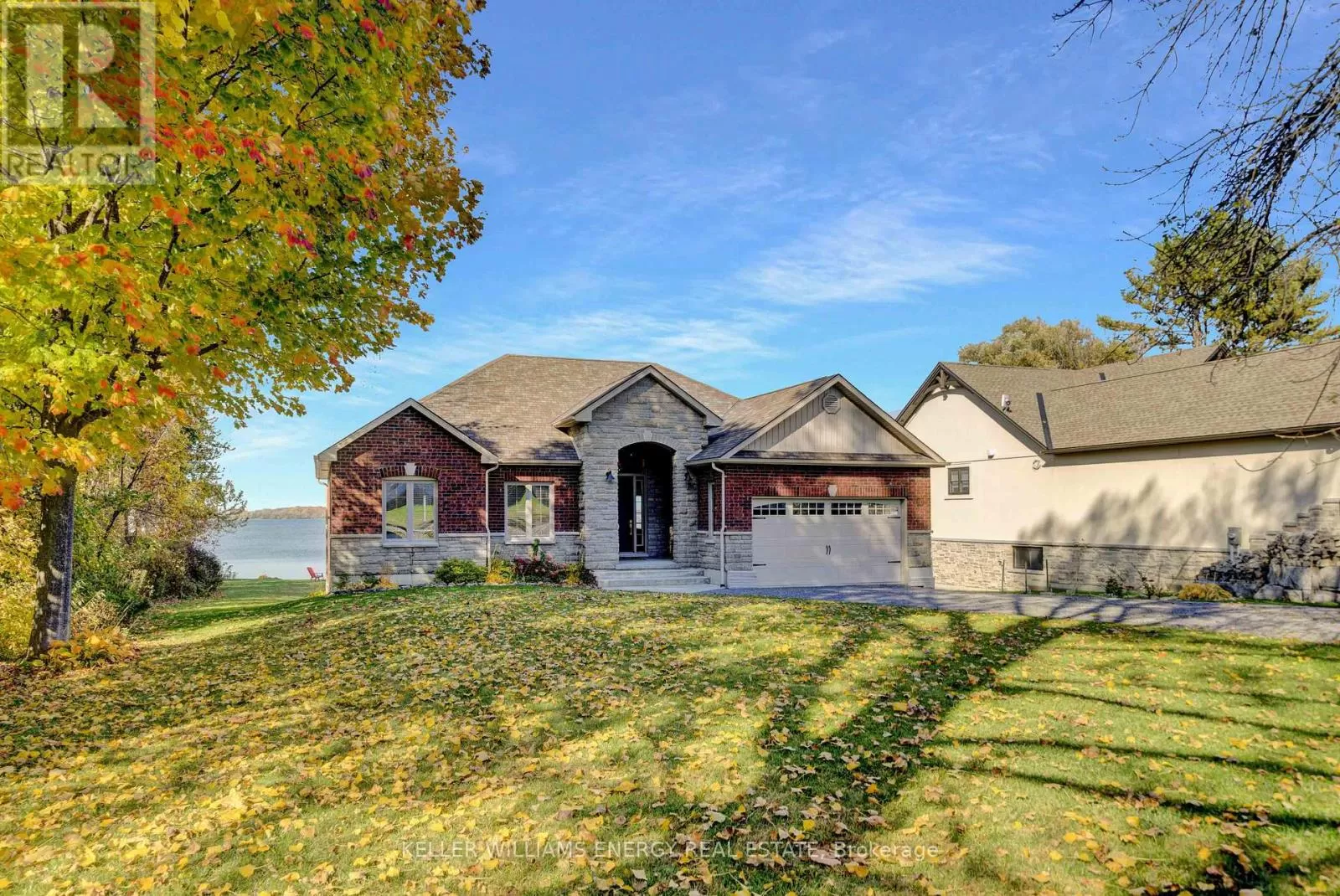 Cross Streets: County Rd 7 & Prinyers Cove Crescent. ** Directions: County Rd 7 to Prinyers Cove Crescent to Prinyers Drive. Welcome to this meticulously crafted custom brick and stone waterfront home on the shores of Adolphus Reach in beautiful Prince Edward County. Built with superior finishes and exceptional attention to detail, this residence showcases timeless craftsmanship throughout. Soaring cathedral ceilings and 9-ft main-floor ceilings set a grand tone, while sweeping, unobstructed water views create a serene backdrop for everyday living. The thoughtful floor plan (approximately 3000 sq ft of total living space) includes a spacious home office, with a well-organized mudroom, pantry, and laundry area at the garage entry keeping the home practical and clutter-free. At the heart of the home lies a custom Laurier kitchen with gleaming quartz counters, a stylish tiled backsplash, and premium Bosch stainless steel appliances. The oversized island invites gatherings and makes entertaining a joy. Step outside to the deck for morning coffee or cocktails at sunset, all while overlooking the clear, pristine waterfront. The main floor offers two bedrooms and two full bathrooms. The primary suite features a large walk-in closet with built-ins and a spa-like ensuite with a hydra-air tub and premium fixtures. The newly finished walk-out basement extends the living space with two additional bedrooms, a full bathroom, and a versatile open area perfect for a theatre room, games space, gym or even an in-law suite. This flexible design adapts easily to multi-generational living or hosting guests in comfort. Outdoors, the crystal-clear shoreline invites swimming, paddling, and endless enjoyment. Evenings by the campfire or days on the water become part of everyday life. Your own private boat launch makes it easy to set off on adventures across the Bay of Quinte and Lake Ontario, with a residents waterfront nearby adding to the lifestyle appeal. This is more than a home - it's a sanctuary where luxury meets lakefront living. Rarely do properties combine such comfort, elegance, and natural beauty. (id:27476)