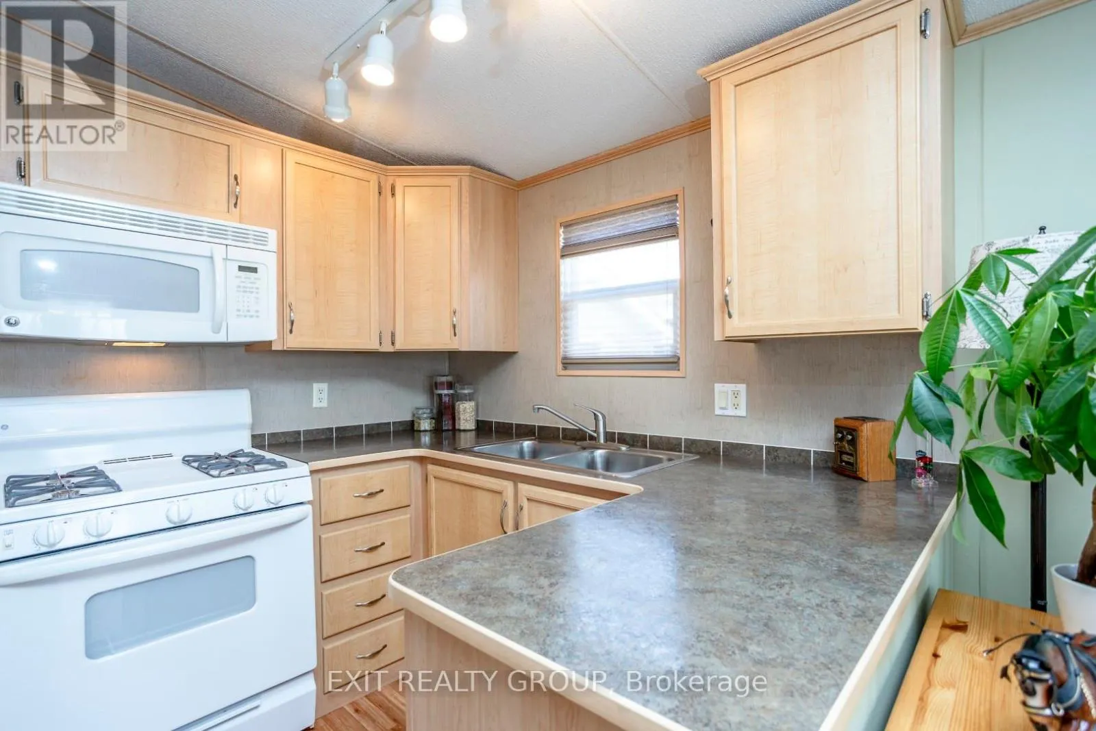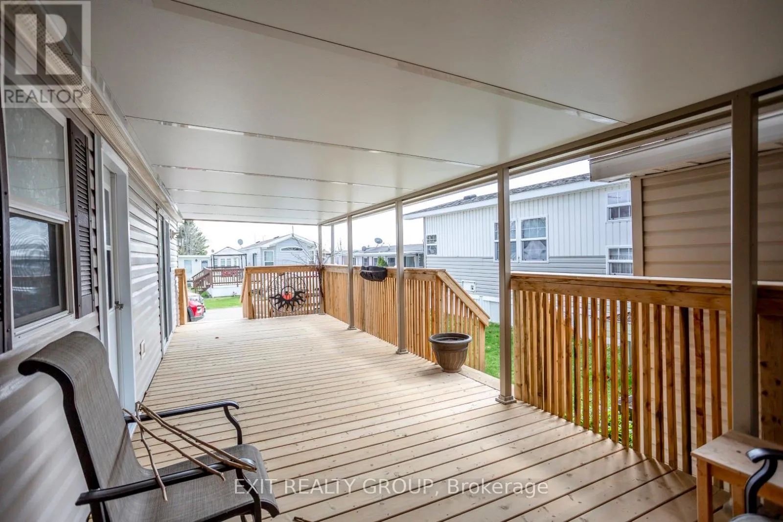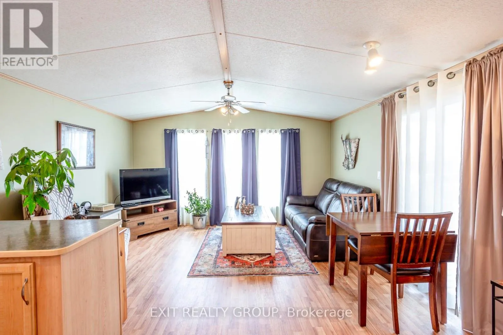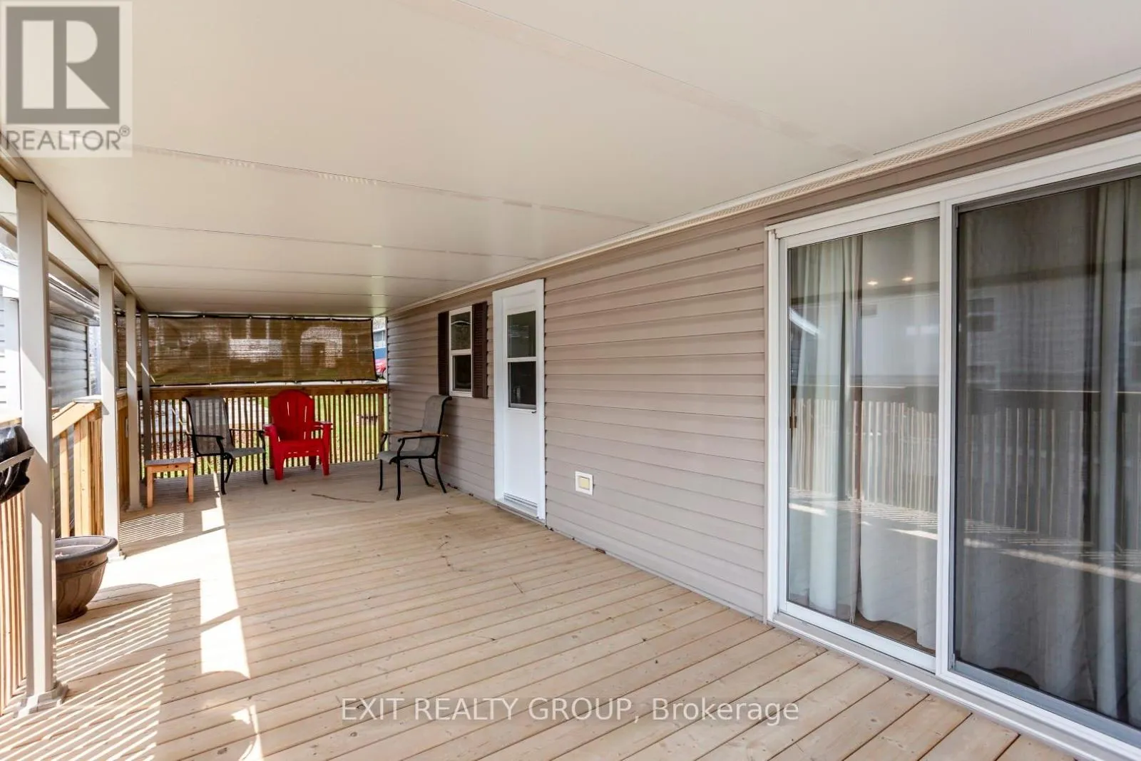 Cross Streets: Loyalist Parkway/Country Rd 33 to County Rd 27. ** Directions: Loyalist Parkway/County Rd 33 to County Rd 27 to Bay Meadows Park. Looking to downsize into a minimal maintenance home and be mortgage free? This unit is cute and cozy in a quiet park in Prince Edward County. Enjoy summer entertaining on the covered deck that runs along the full length of the home. Open concept kitchen / living room with warm and inviting colours running throughout the home. Cathedral ceilings and large windows to keep it light and spacious. The U-shaped kitchen is functional and comes with appliances. 4pc bathroom is conveniently located beside the entrance if out on the deck, and right by the primary bedroom. The Park has saltwater pool to enjoy or go to the club house library. They organize numerous events, ensuring that you will always have opportunities for social engagement. Does this sound like the lifestyle for you. Come one come all. (id:27476)