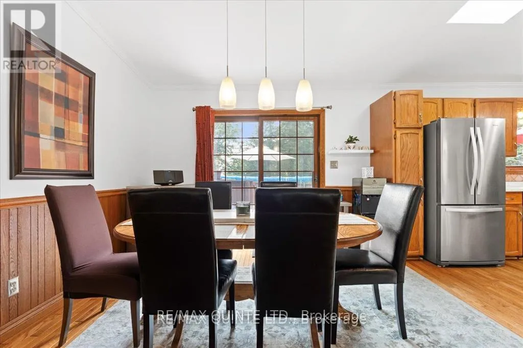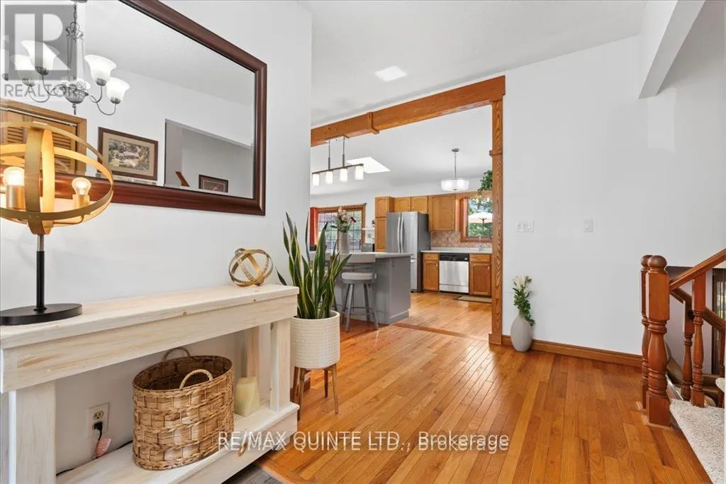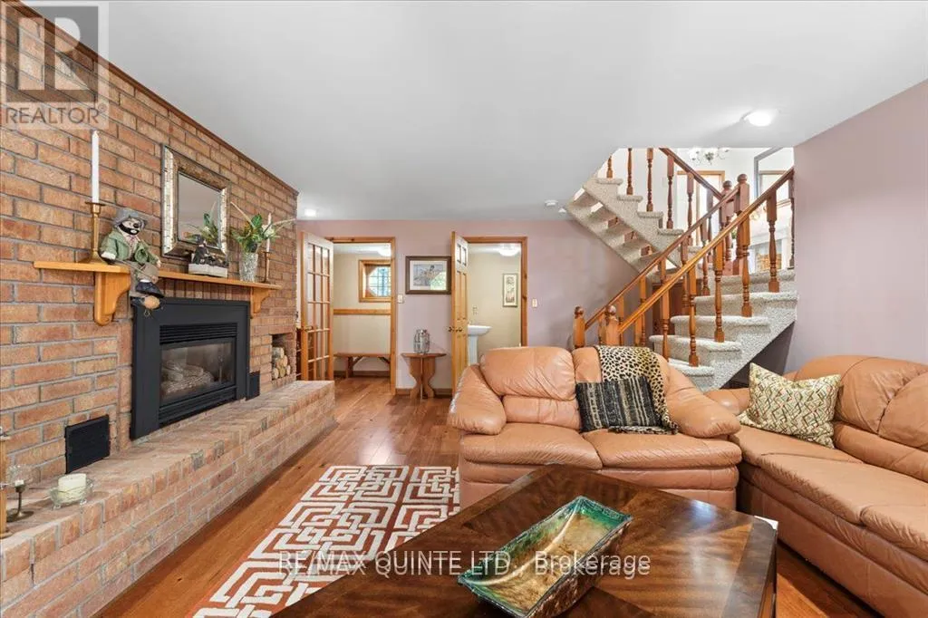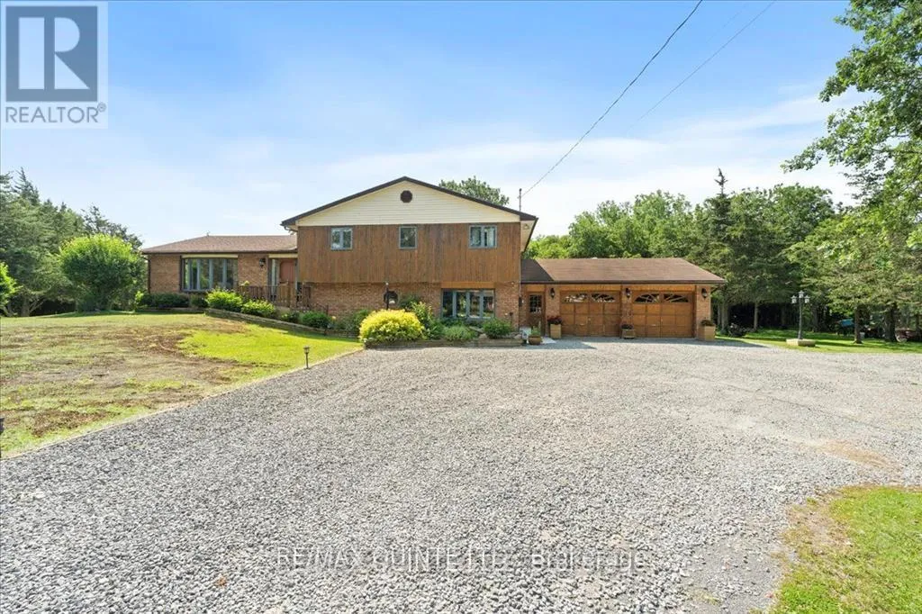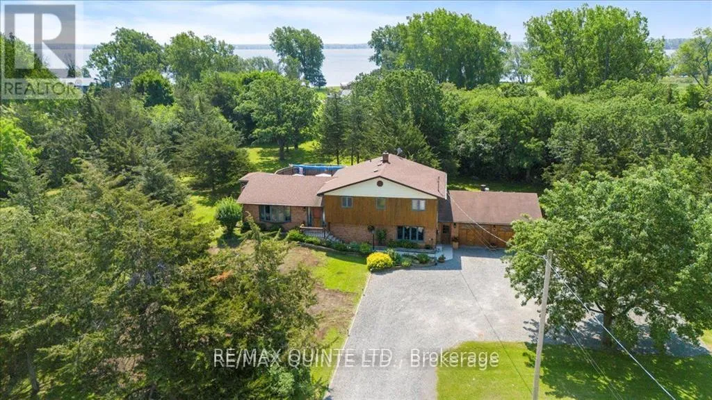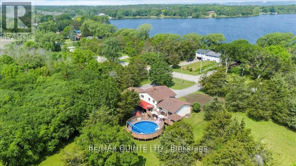 Cross Streets: Sunrise Drive & Wallbridge Circle. ** Directions: Hwy 62 south over Bay Bridge. left on Cty Rd 28 to Massassauga Road. Left on Massassauga Road to Sunrise Drive(5km). Right on Sunrise Drive to #338 on right. Welcome to this spacious 2,400 square foot, 3-bedroom, 2.5-bathroom three-level side-split home, custom-built by the owner in 1986. Situated on 2.03 acres spanning five building lots, the property offers privacy, space, and exceptional outdoor living. Open-concept kitchen, dining, and living area. Kitchen features a large island, built-in oven, and countertop stove, with patio doors leading to a partially covered deck and an above-ground pool with surrounding decking. The living room has a bay window with partial view of the Bay of Quinte. Upstairs, you'll find three generous bedrooms, a 4-piece main bath, and a convenient laundry room. The primary bedroom includes its own 4-piece ensuite. On the lower level, enjoy a large family room with a propane fireplace insert and walkout to a covered patio. A bonus games room with a pool table also walks out to a large, covered patio, ideal for entertaining. The oversized 2.5-car garage offers a workbench and ample storage and inside access. Outdoors, the manicured grounds feature mature oak and cedar trees, open lawn space, and a screened 12' x 20' raised garden. In the northwest corner, a shallow area holds water in winter perfect for a backyard skating rink. The home is finished in a mix of brick, cedar, and vinyl siding. Additional value comes from deeded shared ownership of Block A, a 3.5-acre waterfront parcel on the Bay of Quinte with direct access for boating and recreation. Recent updates include shingles (2018), a newer modulating electric forced air furnace, central air conditioning, and a new septic tile bed installed June 4, 2025. (id:27476)