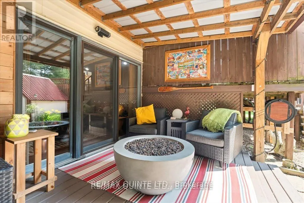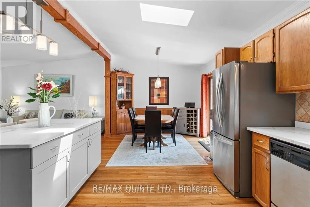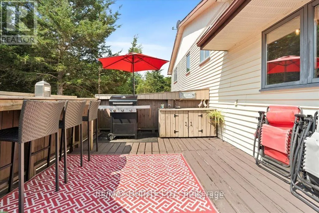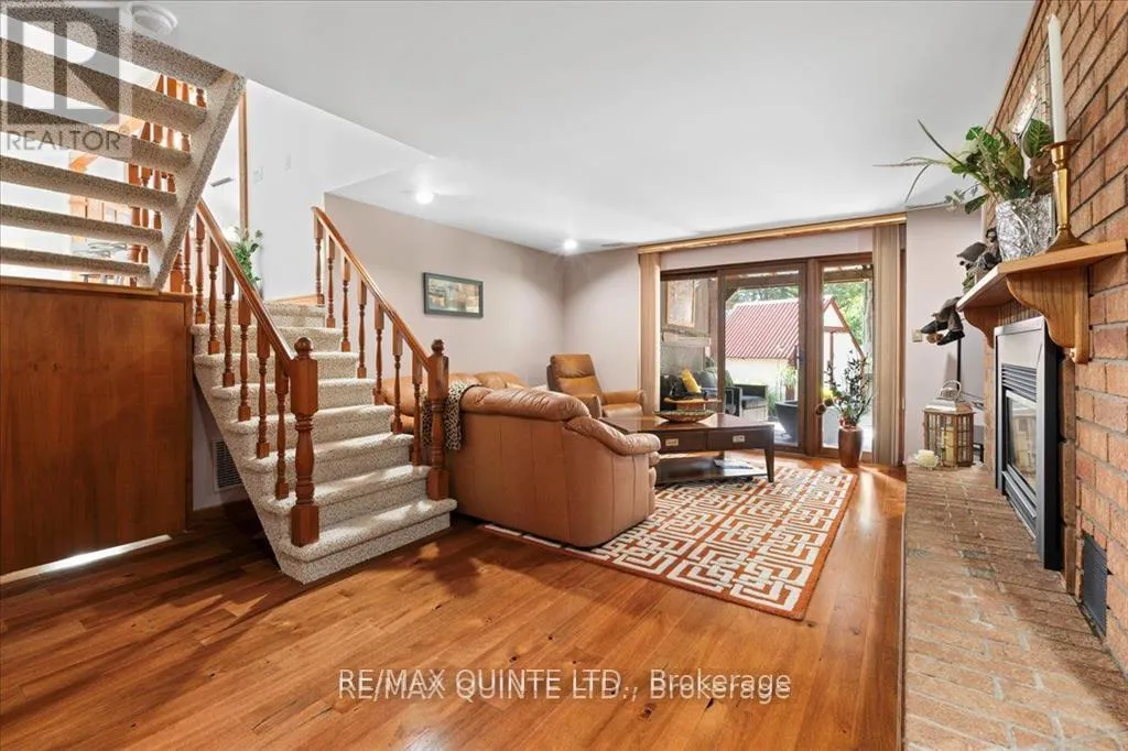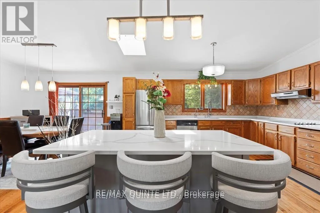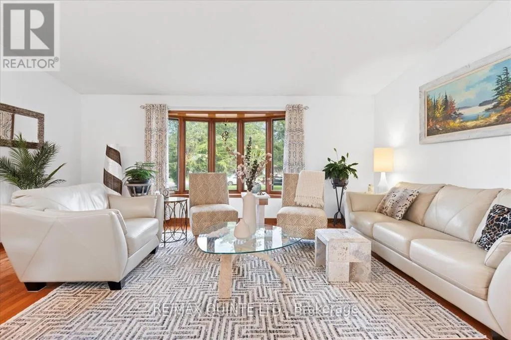 Cross Streets: Sunrise Drive & Wallbridge Circle. ** Directions: Hwy 62 south over Bay Bridge. left on Cty Rd 28 to Massassauga Road. Left on Massassauga Road to Sunrise Drive(5km). Right on Sunrise Drive to #338 on right. Welcome to this spacious 2,400 square foot, 3-bedroom, 2.5-bathroom three-level side-split home, custom-built by the owner in 1986. Situated on 2.03 acres spanning five building lots, the property offers privacy, space, and exceptional outdoor living. Open-concept kitchen, dining, and living area. Kitchen features a large island, built-in oven, and countertop stove, with patio doors leading to a partially covered deck and an above-ground pool with surrounding decking. The living room has a bay window with partial view of the Bay of Quinte. Upstairs, you'll find three generous bedrooms, a 4-piece main bath, and a convenient laundry room. The primary bedroom includes its own 4-piece ensuite. On the lower level, enjoy a large family room with a propane fireplace insert and walkout to a covered patio. A bonus games room with a pool table also walks out to a large, covered patio, ideal for entertaining. The oversized 2.5-car garage offers a workbench and ample storage and inside access. Outdoors, the manicured grounds feature mature oak and cedar trees, open lawn space, and a screened 12' x 20' raised garden. In the northwest corner, a shallow area holds water in winter perfect for a backyard skating rink. The home is finished in a mix of brick, cedar, and vinyl siding. Additional value comes from deeded shared ownership of Block A, a 3.5-acre waterfront parcel on the Bay of Quinte with direct access for boating and recreation. Recent updates include shingles (2018), a newer modulating electric forced air furnace, central air conditioning, and a new septic tile bed installed June 4, 2025. (id:27476)