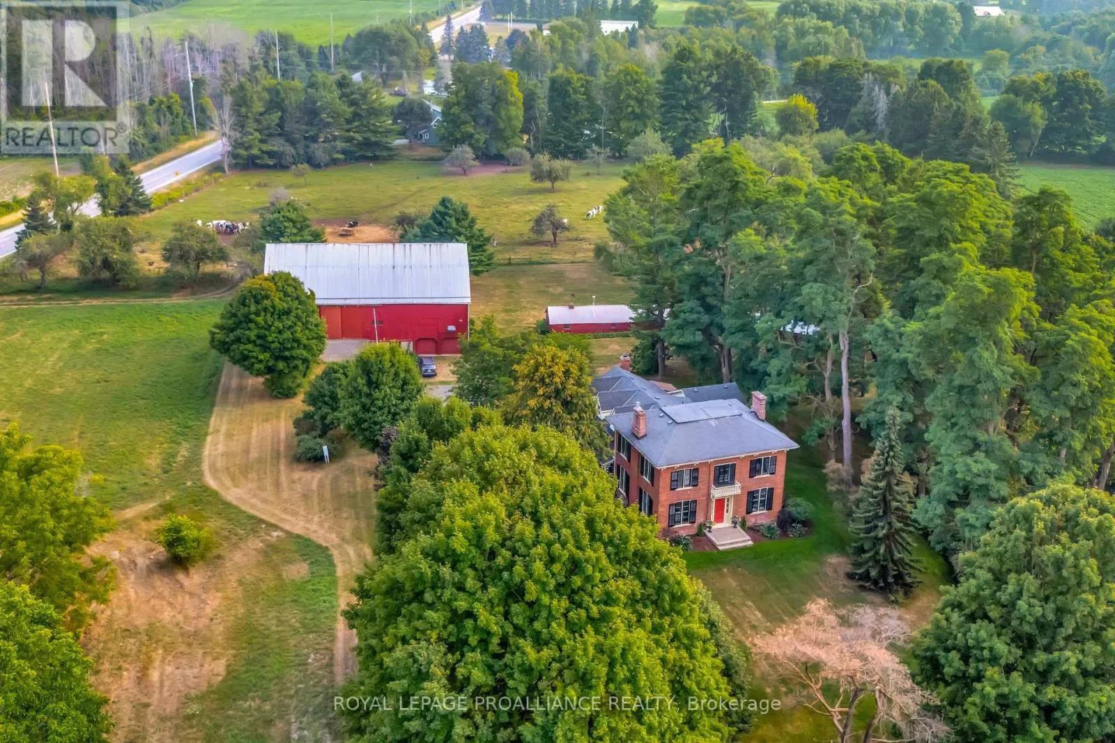 Cross Streets: Loyalist Parkway - County Road 33. ** Directions: From Picton- head southwest on Picton Main Street, at roundabout - take 2nd exit to Hwy 33, follow 2.5 km, property will be on left - 14065. Welcome to this beloved county gem, a century old red brick home located just on the edge of Bloomfield, elegantly set back from Loyalist Parkway in a grove of conifers. This home is historically significant, as seen in The Settlers Dream as the Simpson Mallory house, with similarities to its neighbours The West Lake Boarding School and Fair Lea but with the added benefit of 29+ acres including prime agriculture land under cultivation. The classical symmetry is compared with grand homes like Macaulay House and the Striker Walmsley House in Picton. When Benjamin Simpson, a wagon maker came to this town in 1837 it is likely that the present kitchen tail of the house was a wooden frame farmhouse facing Mallory Crossroad. This outstanding home showcases fascinating architectural features and enduring touches that reflect its Quaker influence. Bloomfield was established in1799 and remains a village with many historical homes and charming shops on Main Street. The house boasts 5 bedrooms and 4 bathrooms, an elegant living room and dining room, perfect for entertaining and family gatherings. The kitchen has been renovated to reflect the character of the home. This property has a fabulous old barn perfect for animals or converting to an elegant event space, a workshop and a woodshed, and a lane way access to the Millennium Trail to complete the perfect picture. Only six minutes from Picton home to the Prince Edward County Memorial Hospital, The Regent Theatre, The Royal Hotel, The Waring House, many unique shops, as well as numerous fine dining restaurants, and the PEC Yacht Club. The County is one of the premier destinations for those seeking unforgettable experiences whether its exploring nature, enjoying watersports, savouring food and wine, or relaxing at the beaches. There truly is something for everyone! (id:27476)