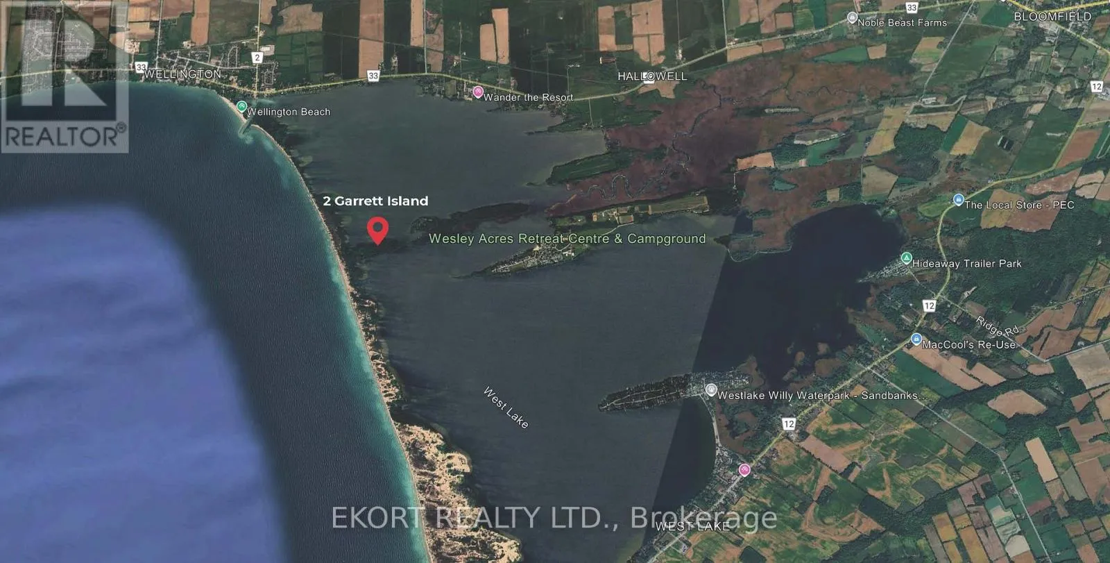 Cross Streets: N/A. ** Directions: Only accessible through Sandbank Beach. A rare opportunity to own a private 14.75 acre island on beautiful West Lake in Prince Edward County, offering an impressive 4,400 feet of shoreline. Surrounded by natural beauty, this unique property provides a peaceful retreat just steps from the world-renowned Sandbanks Provincial Park and Beach. Accessible exclusively by boat, the island offers the perfect blend of privacy and proximity to some of the County's most sought-after destinations. The official plan states the property is deemed to be under Shoreline Designation, which does permit low density residential development. All proposed development is subject to municipal approvals, including a zoning amendment to permit residential use. (id:27476)