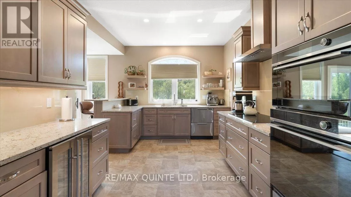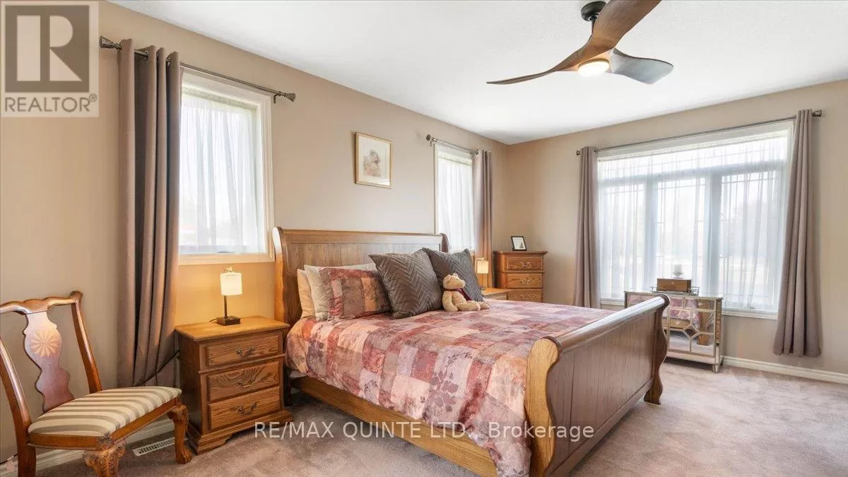 Cross Streets: County Road 23. ** Directions: Follow County Road 3 to County Road 23. Follow County Road 23 to Deerfield Court. Welcome to this remarkable 3 + 2 bedroom home on Deerfield Court - a thoughtfully designed and impeccably maintained residence where every detail has been carefully considered. From the moment you step into the grand foyer, you're greeted by elegant Crystorama "Hayes" chandeliers, setting a luxurious tone that continues throughout the home. The main floor features a spacious open-concept living and dining area, highlighted by a cozy 63" electric fireplace and a walkout to a newly restored deck - the perfect spot to enjoy views of the manicured backyard and the adjacent walking trail. The heart of the home is the stunning kitchen, equipped with top-of-the-line Fisher & Paykel appliances (installed in 2024), along with a generous walk-in pantry and a main floor laundry room, also featuring new appliances from 2024. Tucked away on the main level is a spacious primary suite, complete with a large walk-in closet and a private 3-piece ensuite. Upstairs, a striking staircase leads to a large media room - currently used as an office - offering expansive views of the property. On either side of this central space are two oversized bedrooms, each with its own 4-piece ensuite and walk-in closet. The fully finished lower level offers even more living space, including a welcoming family room accented by a propane fireplace, a hobby room, and two additional bedrooms - ideal for guests, teens, or multi-generational living. This home also includes an oversized two-car garage and sits on a beautifully landscaped 1.2-acre lot in an established, private subdivision. Additional features include a 10 kW generator installed in 2025, providing backup power to 8-12 essential circuits in the event of an outage - offering peace of mind year-round. Although custom-built in 2008, the home's exceptional care and attention to detail make it feel like a new build. Enjoy the best of both worlds: peaceful country living with the convenience of urban amenities 15 minutes away in Bellevi (id:27476)