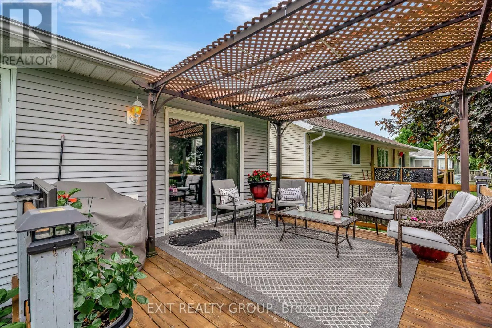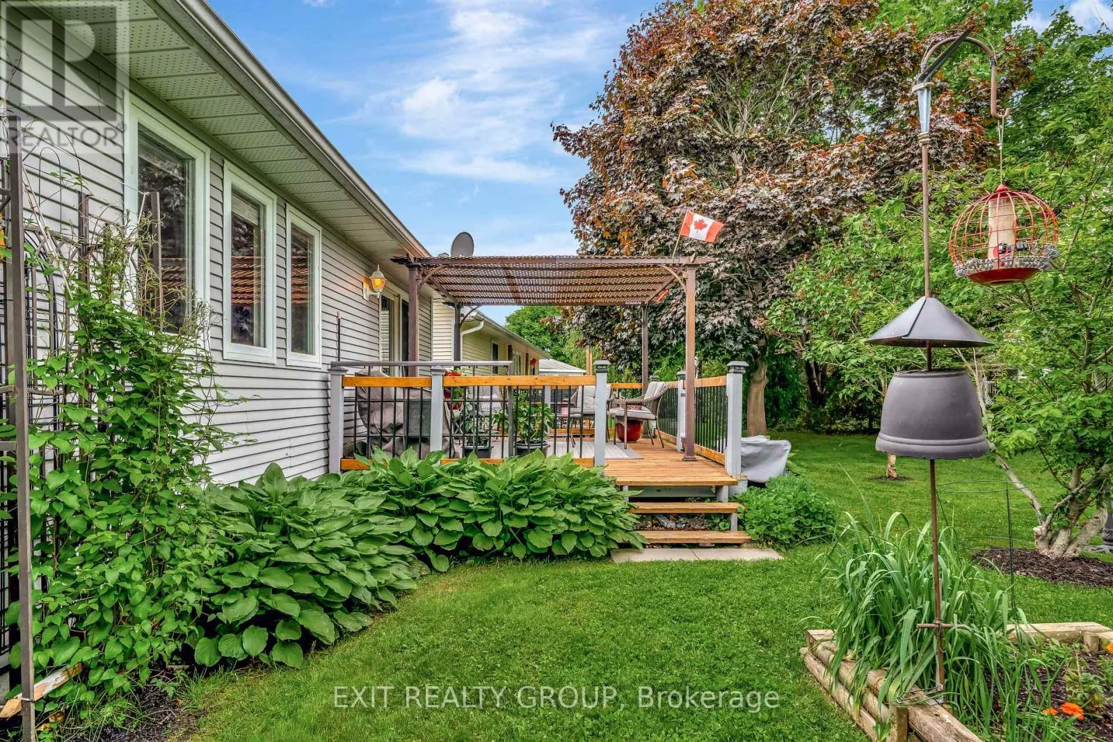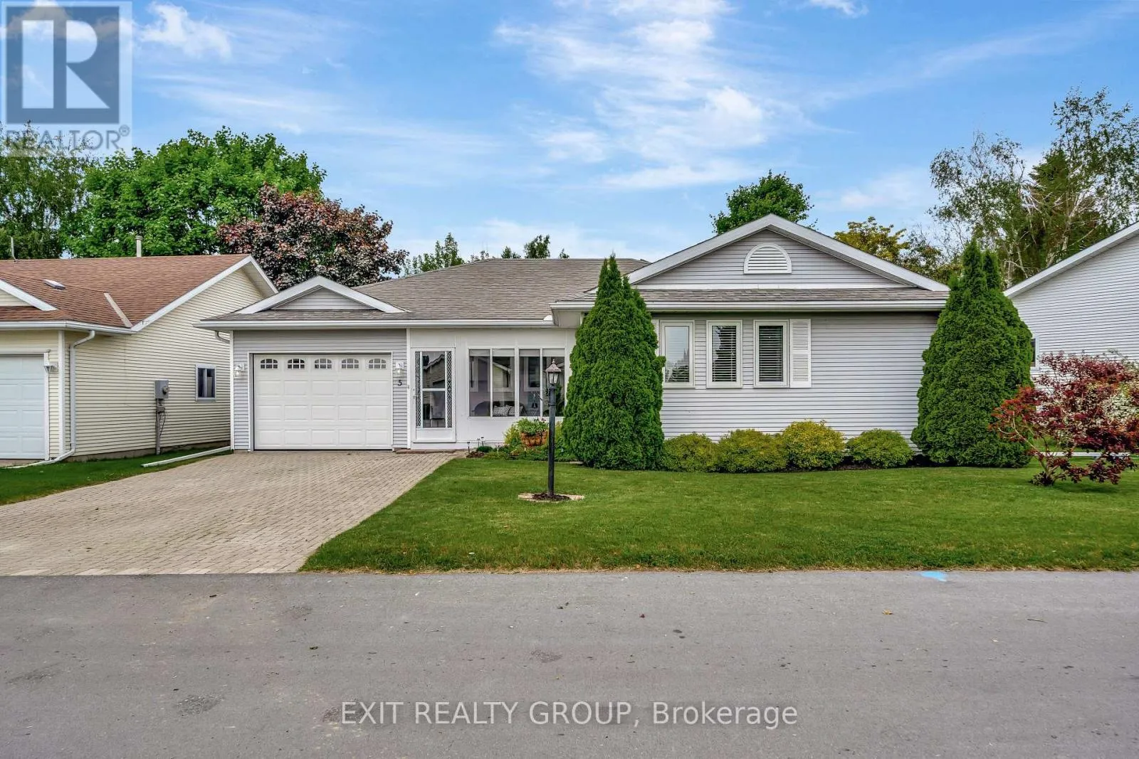 Cross Streets: Heritage Dr & Cretney Dr. ** Directions: Prince Edward Dr to Empire Blvd to Heritage Dr to Cretney Dr. EXIT TO THE COUNTY! Adult community of Wellington on the Lake. Land Lease. This unit has 2 large bedrooms, both with walk-in closets. 2 full bathrooms. Closed in Sunroom and great back deck with a yard surrounded by mature trees and bushes that encourage the birds to welcome you to the morning with their songs. The owner has been meticulous about the maintenance on this home. Modified to make the home brighter with French doors and installed new garage door in 2024, New Furnace and Air Conditioner in 2020, New roof 2015. Wellington on the Lake offers an inground heated swimming pool, tennis/bocce ball courts, lawn bowling, horseshoes pitches, shuffleboard, woodworking shop, snooker room and many clubs to join. The Millennium Trail and golf course is within easy walking distance. The Village of Wellington has everything you need and the County is full of award-winning wineries, breweries, restaurants and beaches. It's like you are on holiday every day. Come see what Wellington on the Lake has to offer. Come EXIT to the County. (id:27476)