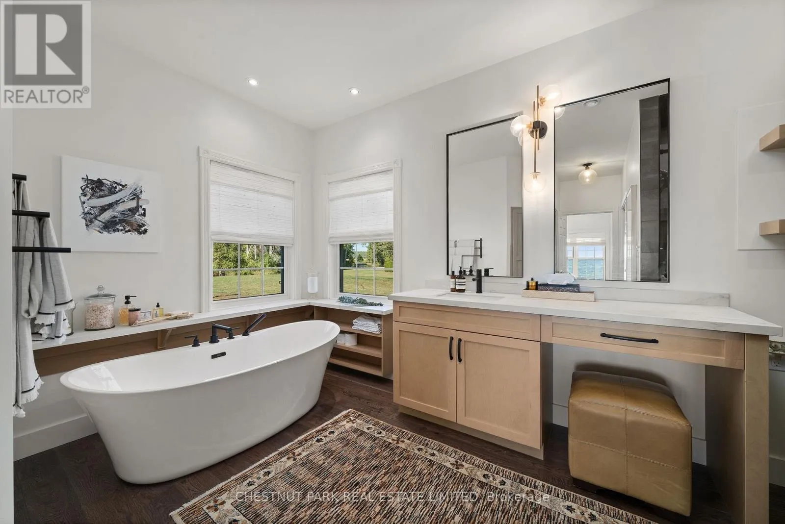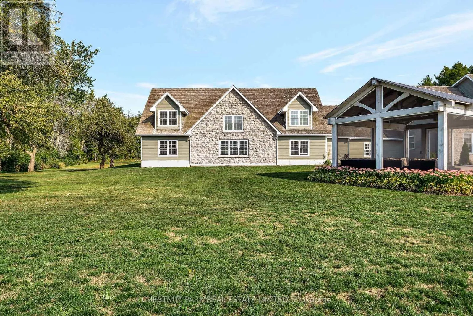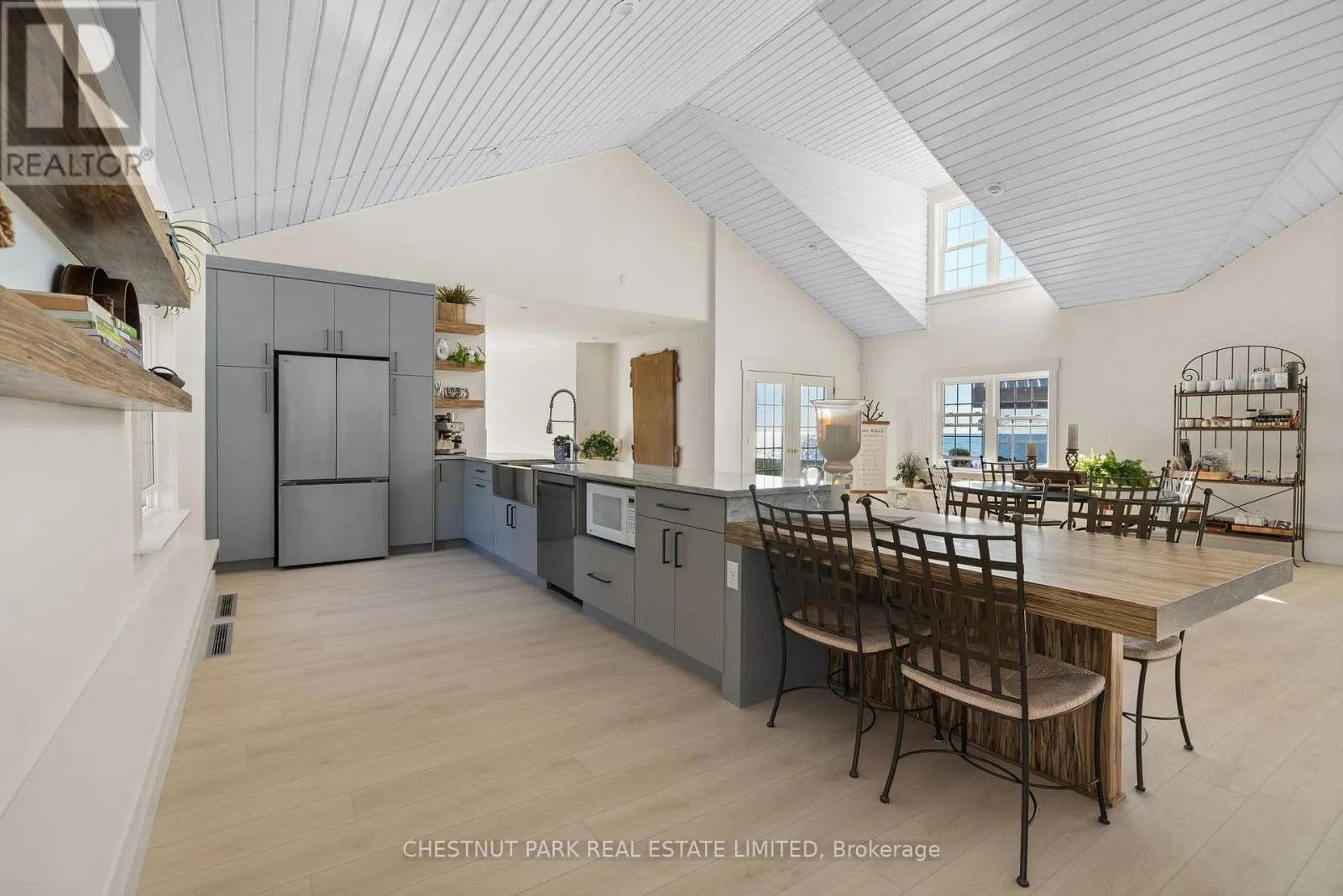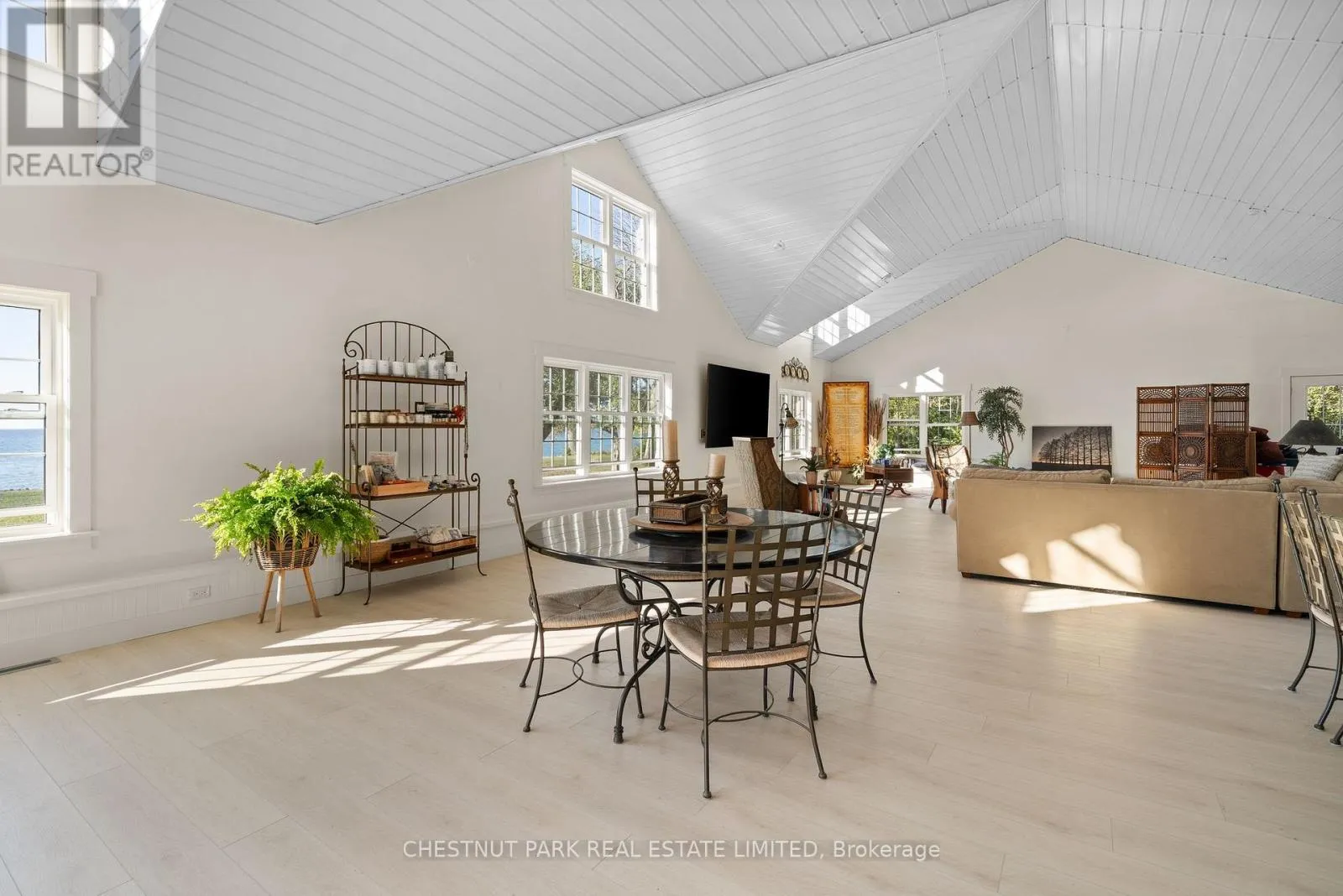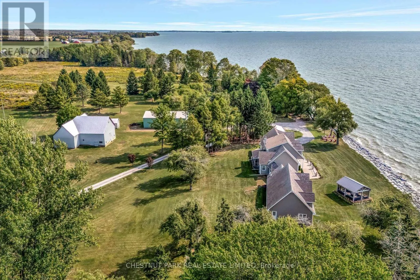 Cross Streets: Kaiser Crossroad and County Road 8. ** Directions: Picton Main Street to Union Street/County Road 8. Experience the ultimate waterfront luxury at this stunning estate. Nestled on almost 9 acres of pristine land with breathtaking views of Lake Ontario.This private, secluded retreat offers tranquility and sophistication in every detail, with close to 7,000 sq ft of beautifully renovated living space that blends classic elegance with modern comfort. The home features a brand new gourmet kitchen inspired by mid-century luxury design rich wood accents, Dekton countertops, and abundant storage create a warm, inviting space perfect for entertaining. The open-concept design enhances the sense of spaciousness, with thoughtful transitions from room to room. One of the property's most exceptional features is the retreat space, a separate building connected to the main home by a breezeway. Designed with versatility in mind, this retreat boasts high vaulted ceilings and an expansive layout perfect for gatherings, workshops, or creative pursuits. Adding to the outdoor space, a newly built enclosed pavilion, that can host many guests amidst the beautiful surroundings. The primary suite offers peaceful water views, complemented by three spacious bedrooms upstairs two with en-suite bathrooms. The main floor is warm and inviting, with a wood-burning fireplace and expansive windows framing spectacular lake vistas from every room, as well as a screened-in porch. The estates outdoor spaces include charming barns, apple orchards, and lush landscaping, and creative gardens that will impress and delight. This property is a true sanctuary for both gathering and enjoyment. Living in North Marysburgh combines the best of nature and local charm: explore nearby Waupoos wineries, cideries, and cheese markets; enjoy crystal-clear waters and stunning vistas; and indulge in the relaxed rural lifestyle that makes this area so special. This exceptional property blends privacy, luxury, and functionality an inspiring lakeside retreat designed for both everyday living and memorable entertaining. (id:27476)