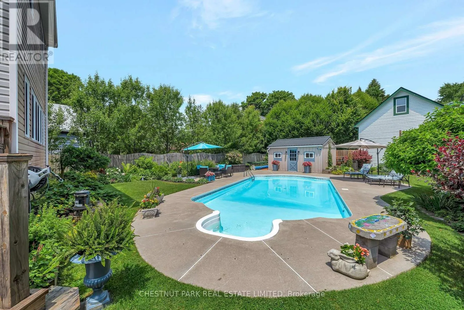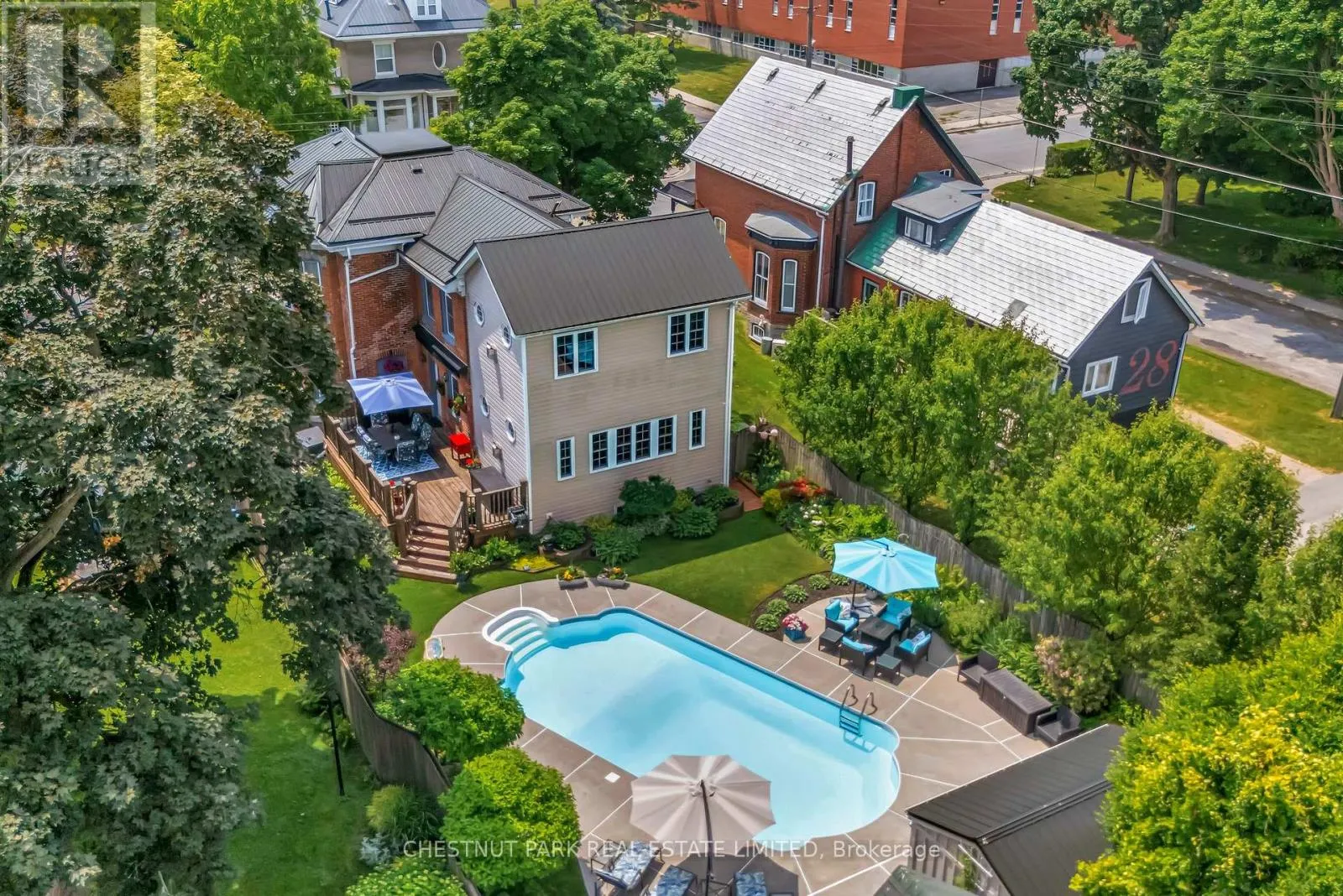 Cross Streets: Barker St & Queen St. ** Directions: Picton Main St to Paul St, Left on Queen St, Right on Centre St to #26. Welcome to 26 Centre St, a beautifully updated and impeccably maintained c. 1900 brick century home, nestled in a mature & quiet neighborhood in Picton, Prince Edward County. This grand residence seamlessly blends timeless character with modern comforts and offers a rare opportunity to own a piece of local history. As you approach the home, you're greeted by stunning original architectural details, lovingly preserved to showcase the homes historic charm. From the moment you step through the door, the classic craftsmanship invites you to experience the warmth and history that set this home apart. Throughout the home, you will find soaring ceilings, wood flooring, vintage trim & mouldings, while the large windows flood the space with natural light, creating a bright and inviting atmosphere. The flowing layout features large principal rooms, with four generous bedrooms and three well-appointed bathrooms, providing ample space for family & guests. At the heart of the home, the newly updated kitchen is a chefs dream, boasting quartz countertops, abundant cabinetry, & ample work space - ideal for both everyday living & entertaining. A tasteful rear addition enhances the living space, offering a sun-filled family room with a cozy gas fireplace. Above, the luxurious primary suite offers a private retreat, complete with its own gas fireplace. Step outside to discover your own backyard oasis. The fully fenced yard was thoughtfully designed for relaxation & entertaining, featuring a spacious deck, in-ground pool, and a cement patio. Lush perennial gardens envelop the front and back of the home, offering vibrant color & curb appeal with minimal upkeep. The whole-home generator provides peace of mind. This exceptional property combines low maintenance living with classic elegance, all within walking distance to Picton's shops, restaurants, & amenities. Don't miss your chance to own this meticulously cared-for home in one of Prince Edward Countys most desirable neighbourhoods! (id:27476)