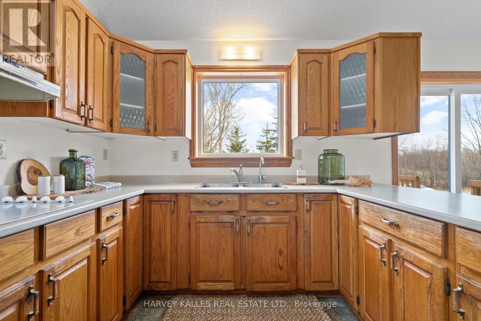 Cty Rd 1 and 2 Tucked away on 3.7 picturesque acres, this beautifully maintained 4-bedroom, 3-bathroom home offers the perfect blend of space, charm, and potential just a short drive to Wellington and the best of Prince Edward County's wineries, restaurants, and beaches. From the moment you arrive, you'll be captivated by the pastoral setting, complete with rolling farm fields, a tranquil stream, a peaceful pond, and your own pocket of woods all visible from the large living room and multiple outdoor spaces. Inside, the home offers generous room to live, work,and entertain. The spacious kitchen includes a separate dining nook and walkout to a large deck, while a formal dining room provides space for special gatherings. The sunlit living room with vaulted ceilings features a cozy wood stove and balcony with elevated views of the surrounding countryside. The walkout lower level expands your options with a large family room, second wood stove, office, fourth bedroom, full bath, and an oversized laundry room that could easily be converted into a second kitchen making this level ideal for an in-law suite or income-generating rental. Practical features like a durable metal roof, attached 2-car garage, and multiple outdoor living spaces including a side patio, deck, and balcony make this home as functional as it is beautiful. Whether you're looking for a full-time family home, a multi-generational setup, or a property with income potential, this countryside gem delivers space, serenity, and versatility in equal measure. (id:27476)