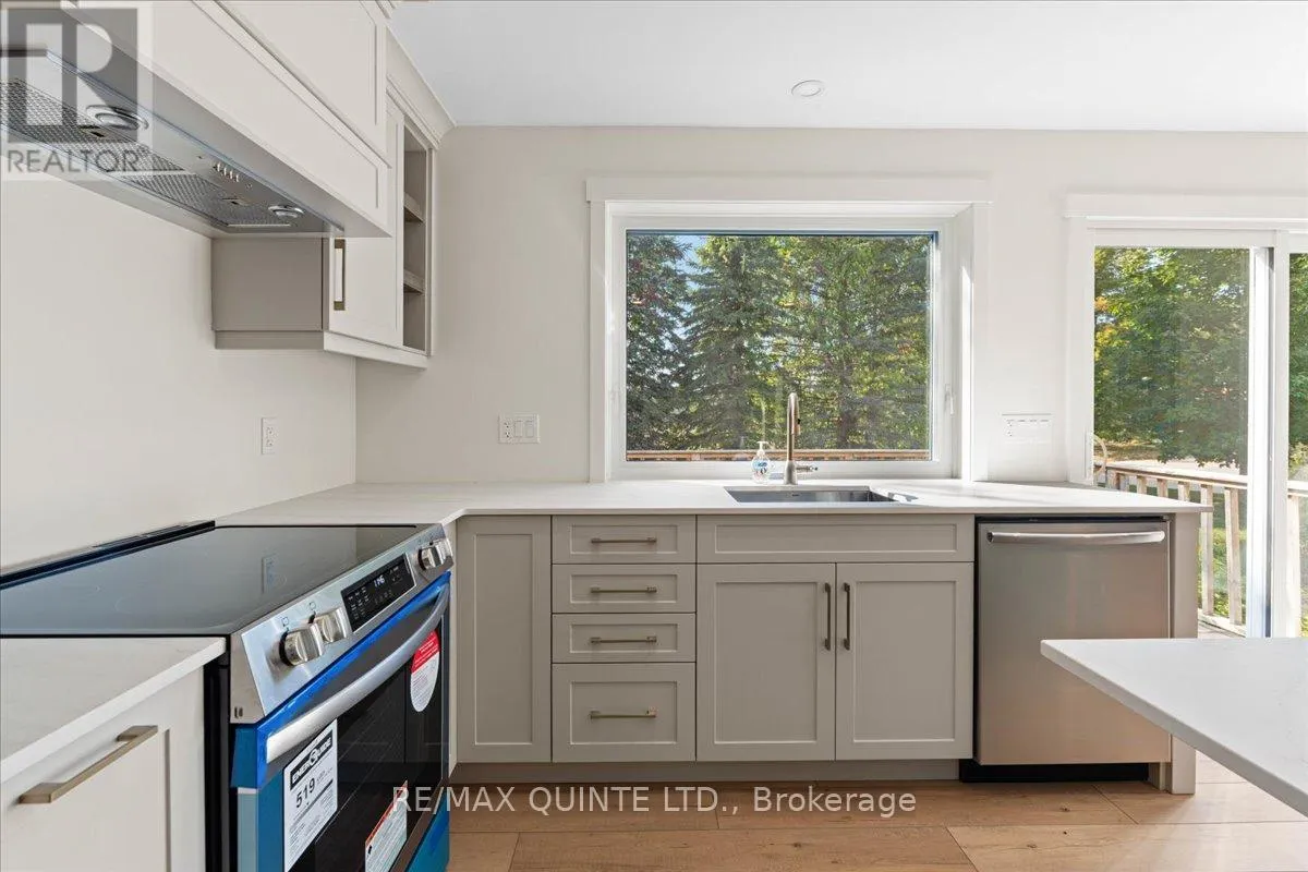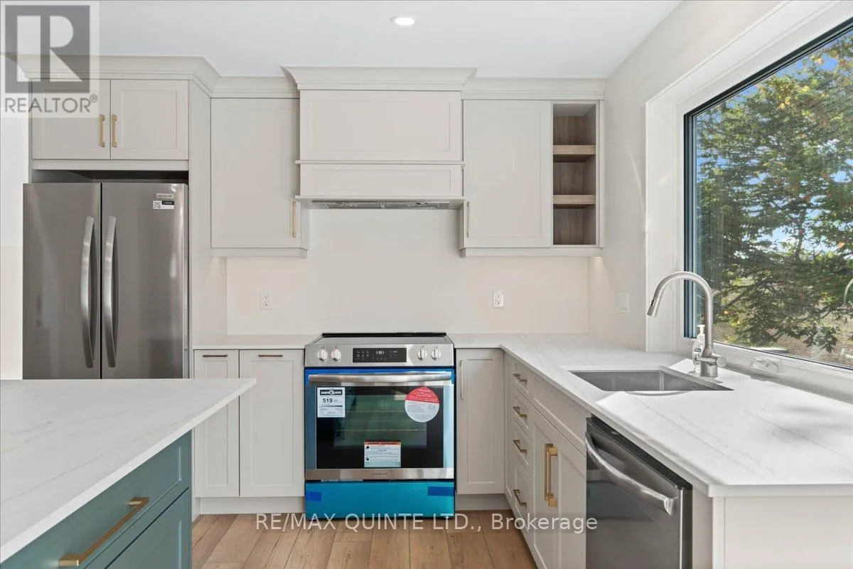 Cross Streets: County Road 12/Windatt Lane. ** Directions: From Bloomfield, take County Road 12 toward Sandbanks Provincial Park. Stay on CR12 to West Lake area. 1501 will be on your left, just after Windatt Lane. This Century home located in lovely West Lake has been entirely renovated from the insulation to the custom kitchen! This storey and 1/2 home built in 1880 has underwent a massive transformation, complete with upscale bathrooms, impressive custom kitchen with large island and walk out to deck. The main floor has been thoughtfully opened up to create an inviting flow, featuring a spacious dining area, cozy living room and a family room with vaulted ceilings overlooking the backyard. All new flooring, upgraded spray foam insulation in the walls, electrical, and brand new gas furnace and central air have been installed providing worry-free living for years to come. Upstairs, you will find three comfortable bedrooms, a stylish 4-piece bathroom, and convenient second-floor laundry. The spacious primary bedroom offers excellent closet space, while every detail has been designed for comfort and efficiency. Enjoy the serenity of the large back yard that overlooks farm fields with mature trees and half an acre of land. Asphalt shingles were replaced on both the house and the garage in 2023. The detached garage has a separate entrance to a workshop at the back. Enjoy close proximity to the beautiful beaches of Sandbanks Provincial Park and a short drive to Bloomfield and Picton for all amenities. (id:27476)