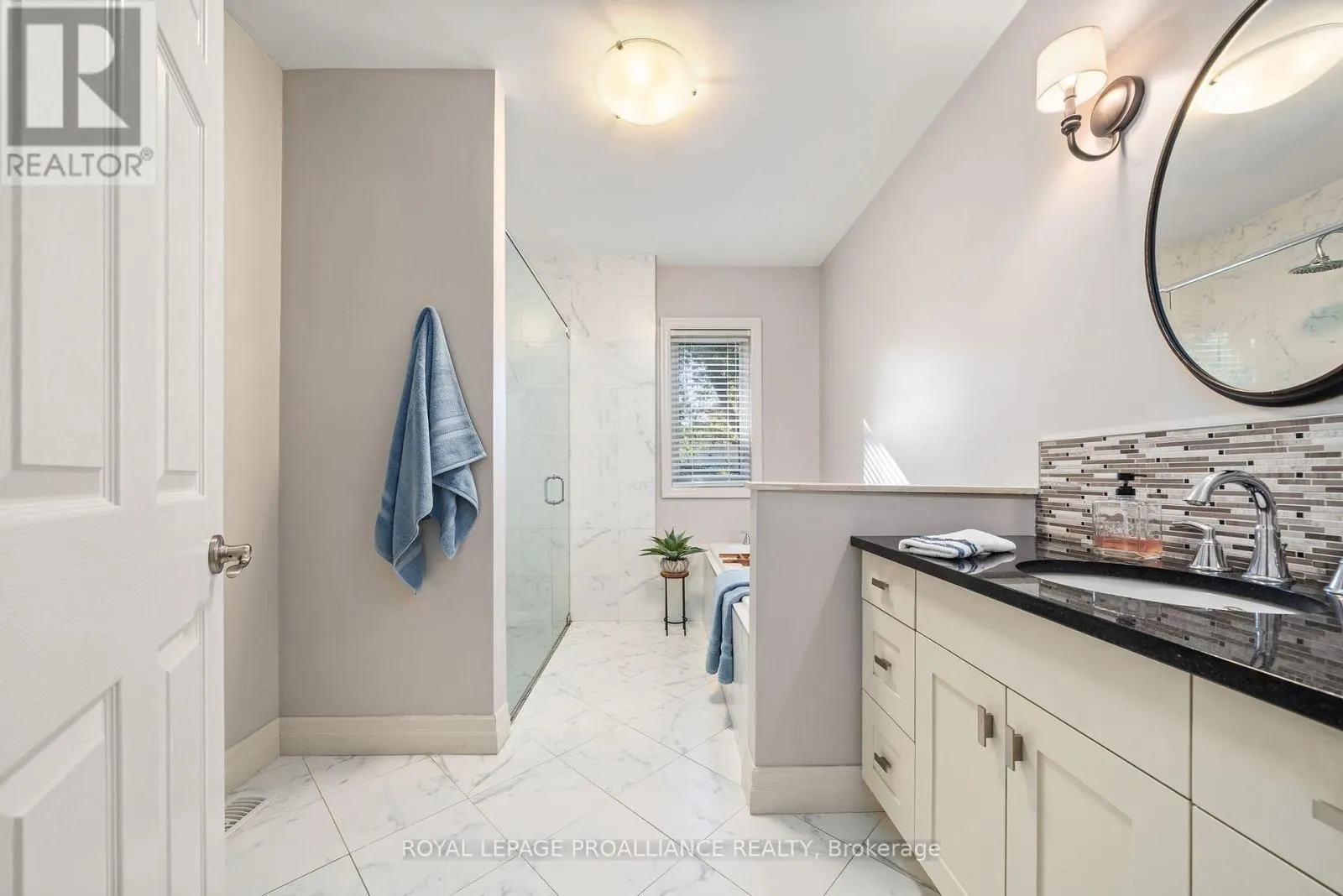 Cross Streets: County Road 3/Eastern Ave. ** Directions: County Rd 3 to Eastern Ave. Nestled on the picturesque shores of the Bay of Quinte, this extraordinary residence presents an unparalleled opportunity to embrace waterfront living. With 3,000 square feet of well designed interior space, this hidden gem seamlessly marries both quiet luxury and casual comfort. Upon entering you are immediately struck by the beautiful light flooding in from every direction. The spacious living room is anchored by a stone fireplace and unmatched views. The dining area opens to the wrap around raised deck through patio doors and the bright and sunny kitchen with a sizeable island, ample cabinetry and direct access to the BBQ. Tucked down the hall you will find 2 large guest rooms, main 4pc bath, a full guest suite with a walk in closet and 3pc ensuite. On the lower level, the spacious primary suite features direct access to the meticulously maintained lawns and gardens, a private 4pc ensuite with separate soaker tub and large shower. The bright, large games room with a stacked stone fireplace and matching bar area offer a seamless transition between indoor and outdoor living spaces making this the perfect location for entertaining large crowds or cuddling up for quiet movie nights. A 4th guest room, a 2pc bath, a large laundry room and a huge storage room under the garage fill out the lower level. The large bright windows and patio doors in the walkout lower level and direct access to the waterfront, allows natural light to flood the space. This versatile space adapts to the changing needs of modern families and could easily suite a multigenerational family. A stone shoreline that offers both step in shallow spaces and deep waters off the dock suitable for various water sports and activities. Tucked just off sought after Rednersville Road (Cty Rd 3) and located 6 mins to the Bay Bridge, 20 mins from Highway 401, this extraordinary home allows you to be close to everything and still able enjoy the beaches and wineries that define the sought after 'County' lifestyle. (id:27476)