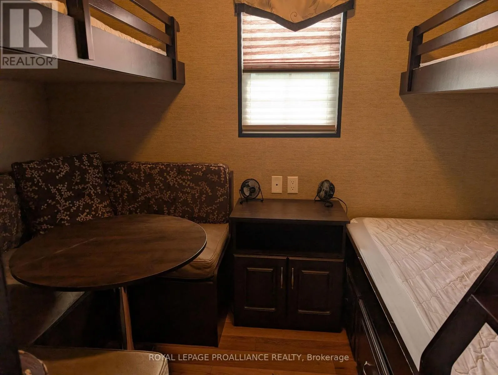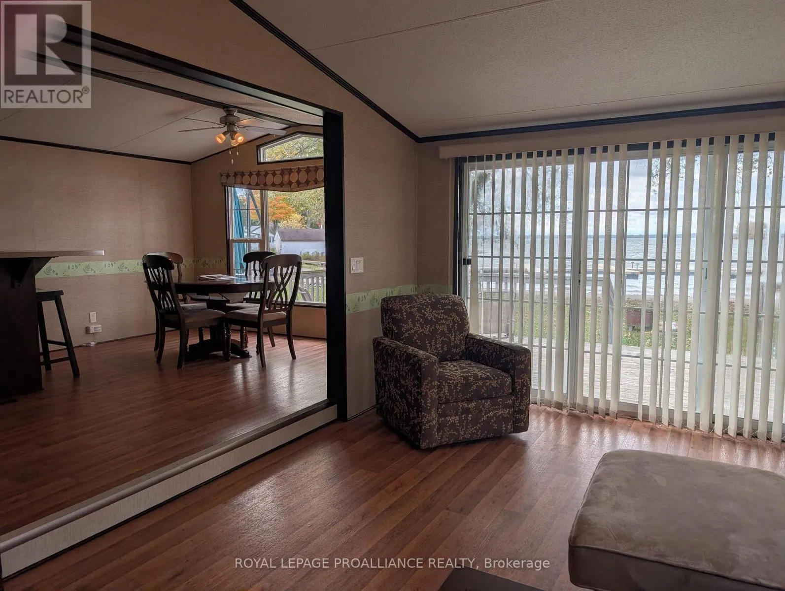 Cross Streets: County Road 18 and Cherry Beach Resort. ** Directions: From Picton - County Road 10 to County Road 18 to Cherry Beach Resort. Waterfront on the Beach! 7 BEACHVIEW LANE. Impressive waterfront unit situated directly on the Beach of Cherry Beach Resort, Prince Edward County. The "County" is known for its beaches, restaurants & wineries. Panoramic views of Flakes Cove, the sandy beach & boat slips, all right out your back windows & expansive rear deck. Great location close to park amenities, the welcome centre, play areas, & most importantly, the beach! Watch the kids safely play on the sand, right from your back yard. The spacious lot features a firepit area, a storage shed, parking for 2 cars & front & rear decks. Inside, this spacious Northlander Hickory model offers 732sqft of living space including a factory Northlander family rm addition measuring 18ft x 12ft, offering a patio door, electric F/P & built-ins. The unit offers 2 bdrms & 1 bath but can sleep up to 9, given a pull out couch & a 2nd bdrm that offers 2 sets of dbl bunks. This bdrm is set up with the horseshoe seating & table, which makes it great for friends to come over & play, but also converts to additional sleeping bunks. Thanks to the family rm addition the kitchen & dining area is open & spacious, making it a great place to entertain or share meals with the family while overlooking the waterfront backdrop. Comfort features include: propane furnace & C/Air, plus the unit comes fully equipped with all interior & exterior furnishings & appliances making it a PERFECT SEASONAL, TURN-KEY RETREAT. Great for personal use or use as a rental for when you are not there & offset some of the annual costs. Great place for family & friends to enjoy summer at the Beach. Seasonal park (OPEN May 1 - Oct. 31) offers amenities like a heated Chlorine pool, basketball & tennis courts, playground, splash pad, sandy beach, boat docks, a rec centre, convenience store, laundry & more. 7 mins from Sandbanks Prov. Park! Park fees are $16,015 + HST (includes land lease, taxes, grass cutting, hydro & amenities). Buy now & be ready for 2026 season. (id:27476)