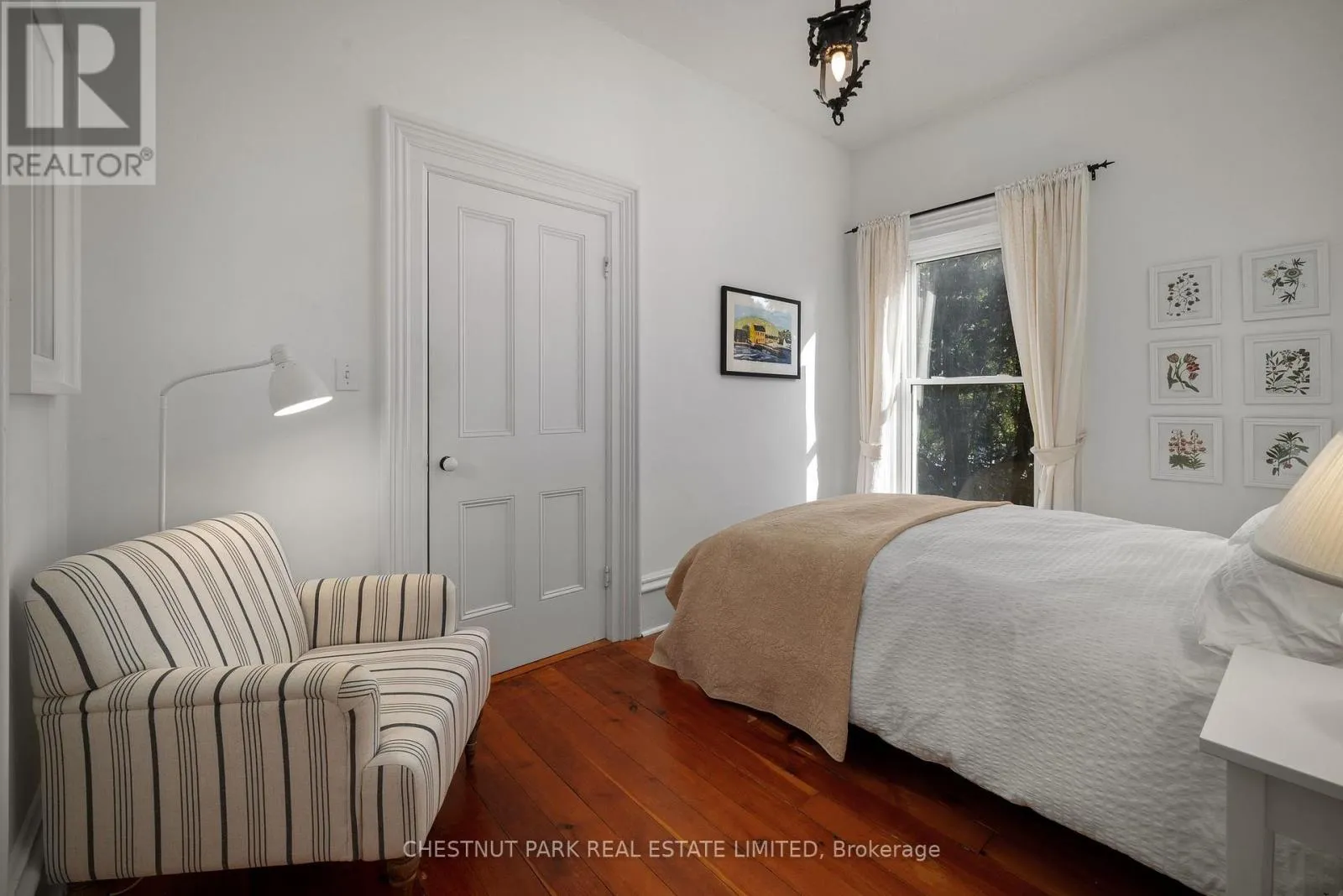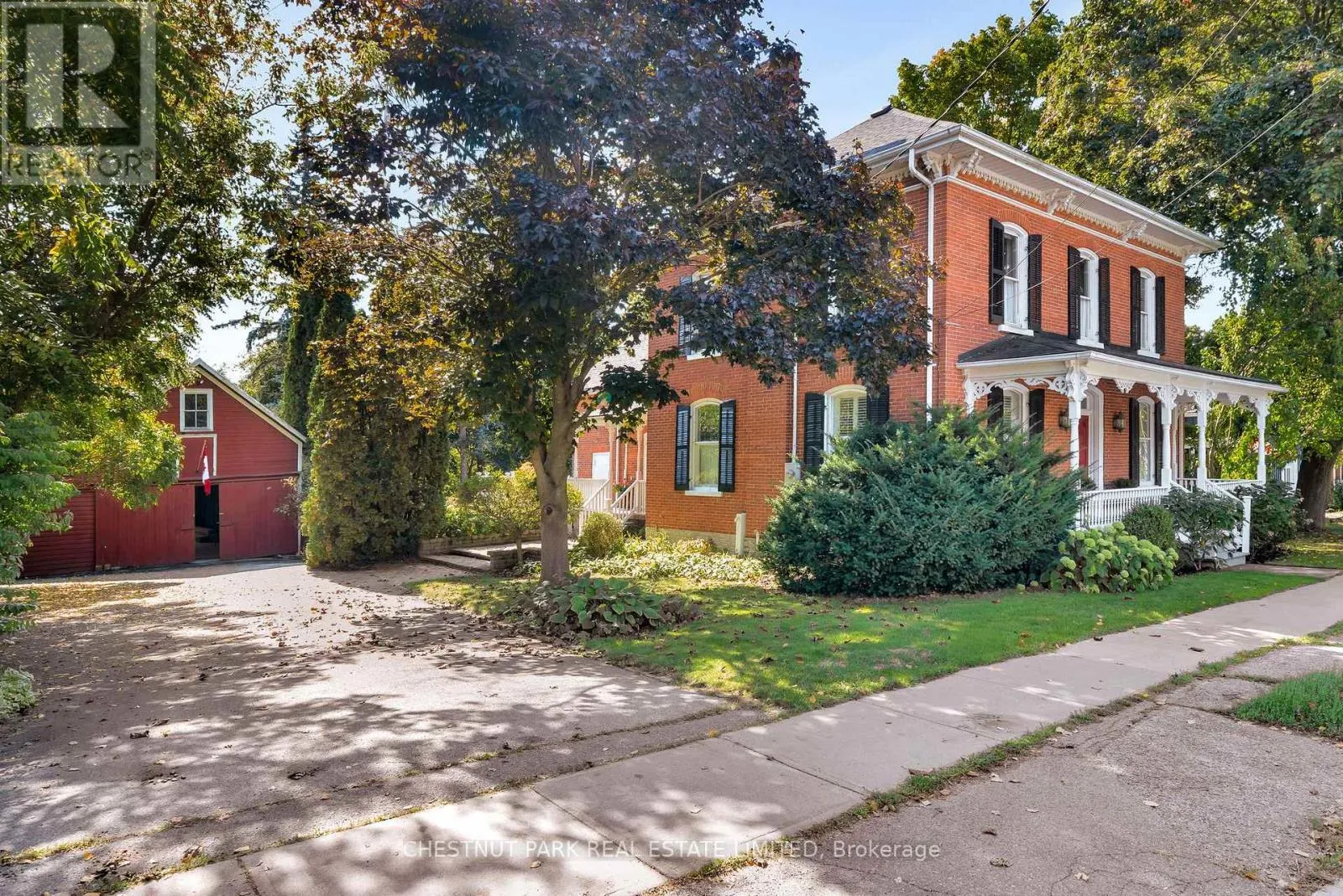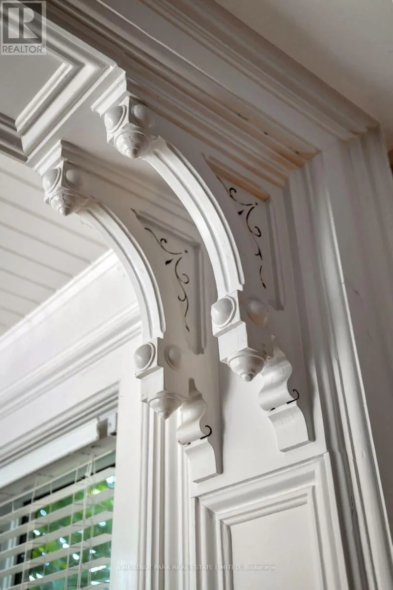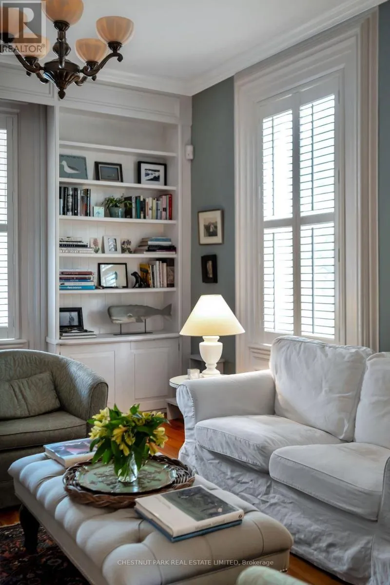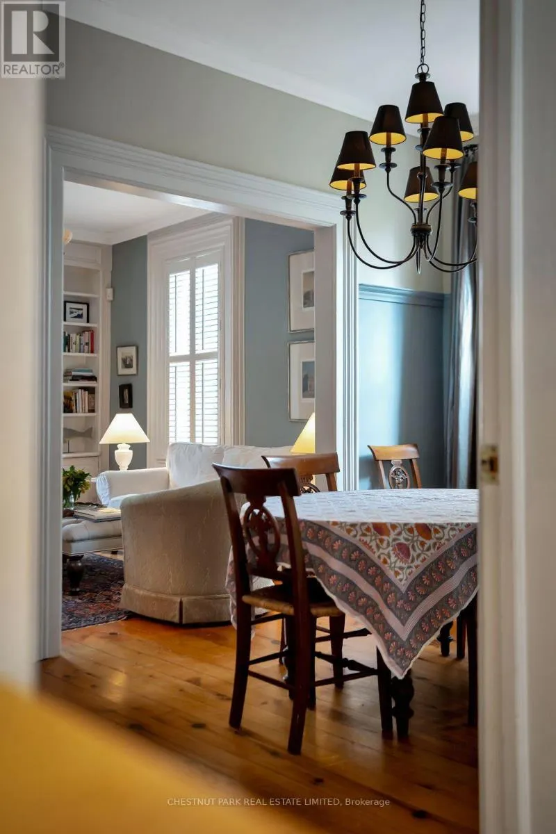 Cross Streets: Bloomfield Main Street and Stanley Street. ** Directions: Bloomfield Main Street. An architectural jewel of Bloomfield Main Street, 341 is a beautifully preserved century home with stylish modern amenities. This triple brick circa 1867 residence is a two-Storey hip-roof, showcasing soaring 10 ft ceilings, a classic centre-hall plan, elegant mouldings and timeless character throughout. Set on 1.1 acres in the heart of the village, the property extends down to Stanley Street, boasting upper and lower gardens divided by towering white pines, landscaped with a variety of mature trees that provide privacy and a haven for songbirds all year round. There is a comfy writers cabin tucked behind the home in the lower garden, along with one of the largest original coach houses in town, 2 full storeys, plus a lower level, offering endless potential. The long double-car driveway can accommodate several cars when hosting large groups. The charming Victorian era front doors open into a classic entrance hall with a convivial layout including two formal front rooms and spacious dining room, perfect for intimate or larger gatherings. The heart of the home is the updated kitchen, blending style and function, flowing into a cozy south facing sun room where you can enjoy morning coffee overlooking the magnificent pines. French doors open onto a balcony and a bird watchers paradise - forested gardens with lots of space for summer entertaining. This stylish home has four light-filled bedrooms with high ceilings and large windows facing out over the tree tops, three bathrooms including a three piece on the main-floor and upstairs, a guest bedroom with 2-piece en-suite, and a shared 4-piece along with a convenient bedroom-level laundry room. The back staircase leads to a versatile flex space, ideal as a studio, home office, or fitness area. The house is perfectly located, a short walk to the trendy boutiques, cafes and restaurants that make Bloomfield one of Prince Edward Countys most popular, vibrant villages. (id:27476)
