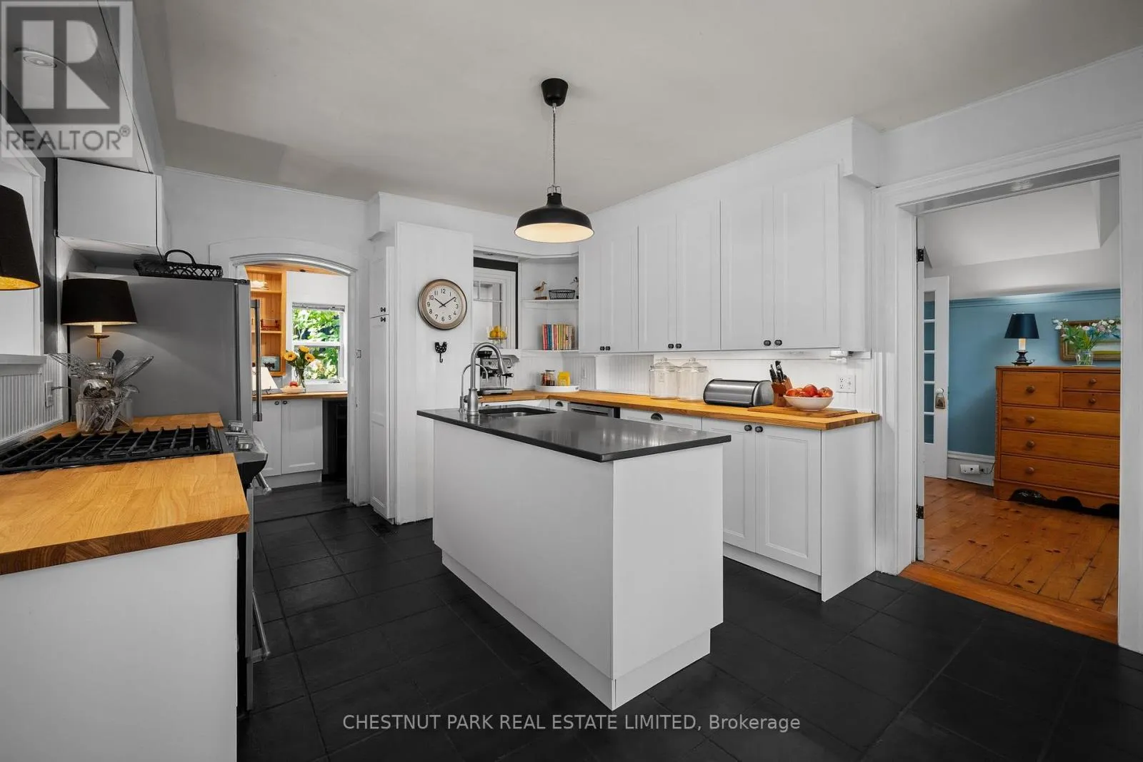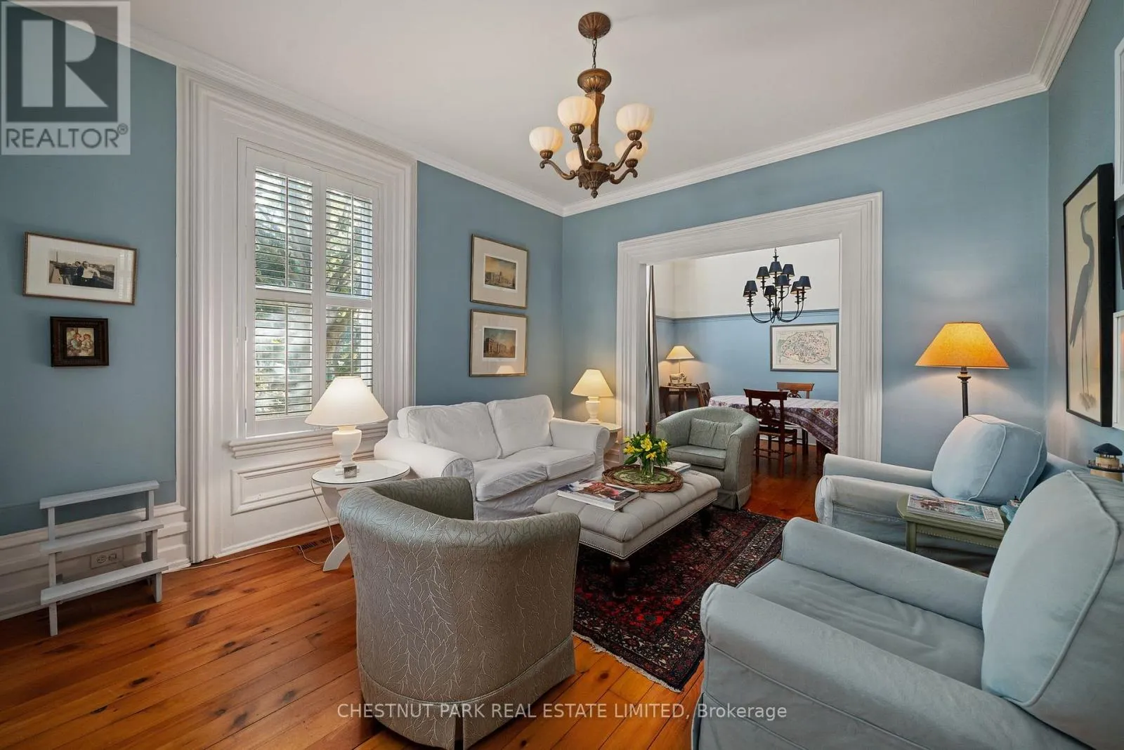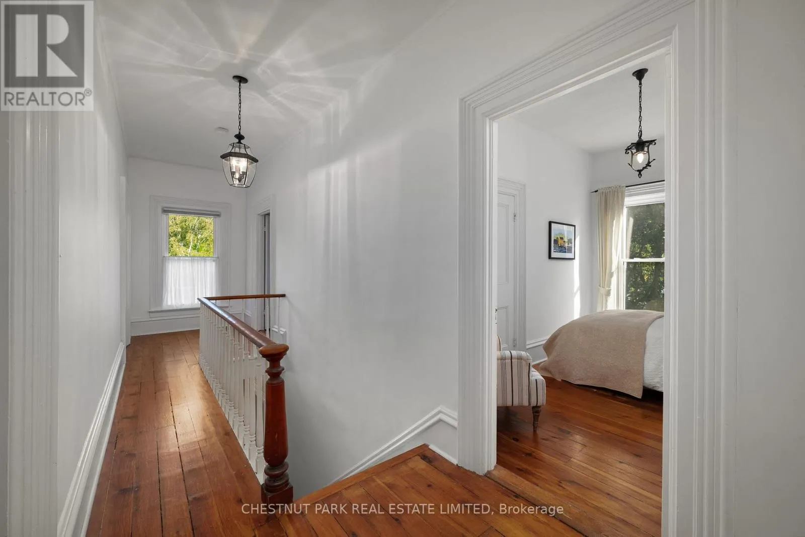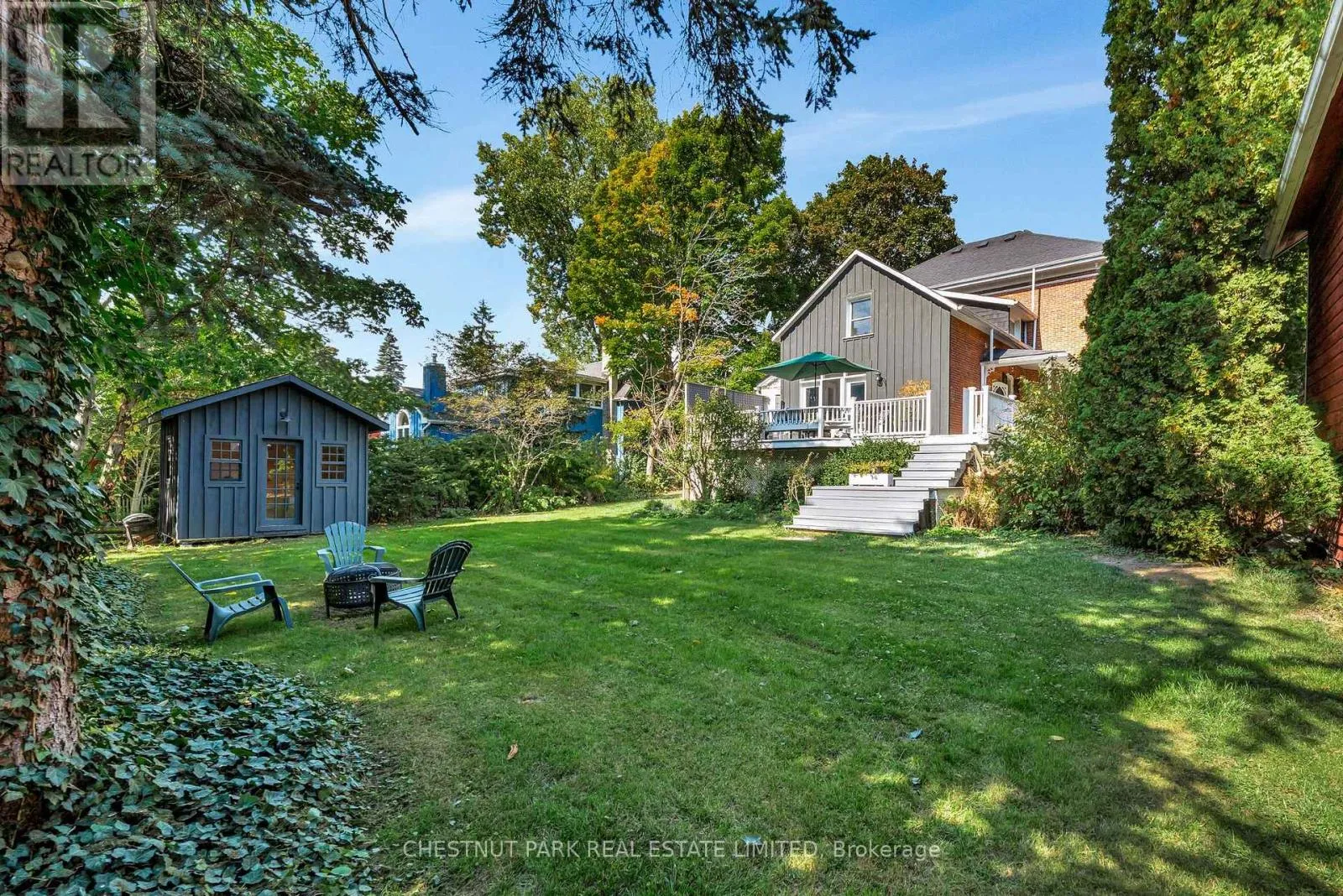 Cross Streets: Bloomfield Main Street and Stanley Street. ** Directions: Bloomfield Main Street. An architectural jewel of Bloomfield Main Street, 341 is a beautifully preserved century home with stylish modern amenities. This triple brick circa 1867 residence is a two-Storey hip-roof, showcasing soaring 10 ft ceilings, a classic centre-hall plan, elegant mouldings and timeless character throughout. Set on 1.1 acres in the heart of the village, the property extends down to Stanley Street, boasting upper and lower gardens divided by towering white pines, landscaped with a variety of mature trees that provide privacy and a haven for songbirds all year round. There is a comfy writers cabin tucked behind the home in the lower garden, along with one of the largest original coach houses in town, 2 full storeys, plus a lower level, offering endless potential. The long double-car driveway can accommodate several cars when hosting large groups. The charming Victorian era front doors open into a classic entrance hall with a convivial layout including two formal front rooms and spacious dining room, perfect for intimate or larger gatherings. The heart of the home is the updated kitchen, blending style and function, flowing into a cozy south facing sun room where you can enjoy morning coffee overlooking the magnificent pines. French doors open onto a balcony and a bird watchers paradise - forested gardens with lots of space for summer entertaining. This stylish home has four light-filled bedrooms with high ceilings and large windows facing out over the tree tops, three bathrooms including a three piece on the main-floor and upstairs, a guest bedroom with 2-piece en-suite, and a shared 4-piece along with a convenient bedroom-level laundry room. The back staircase leads to a versatile flex space, ideal as a studio, home office, or fitness area. The house is perfectly located, a short walk to the trendy boutiques, cafes and restaurants that make Bloomfield one of Prince Edward Countys most popular, vibrant villages. (id:27476)