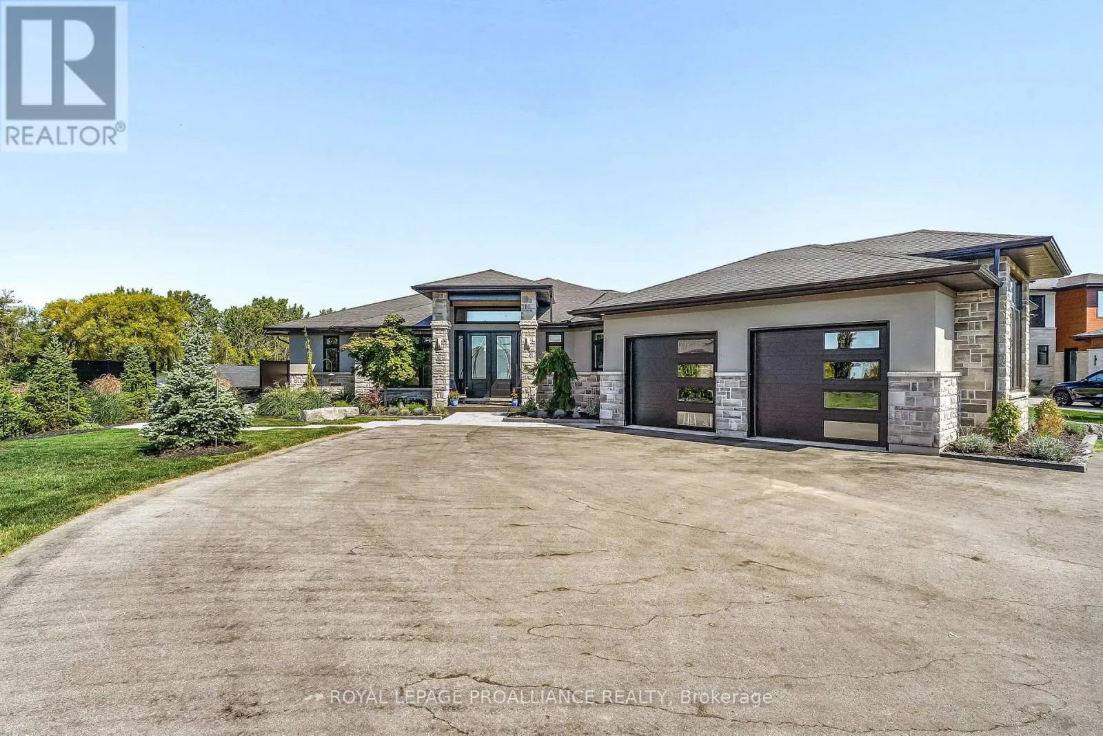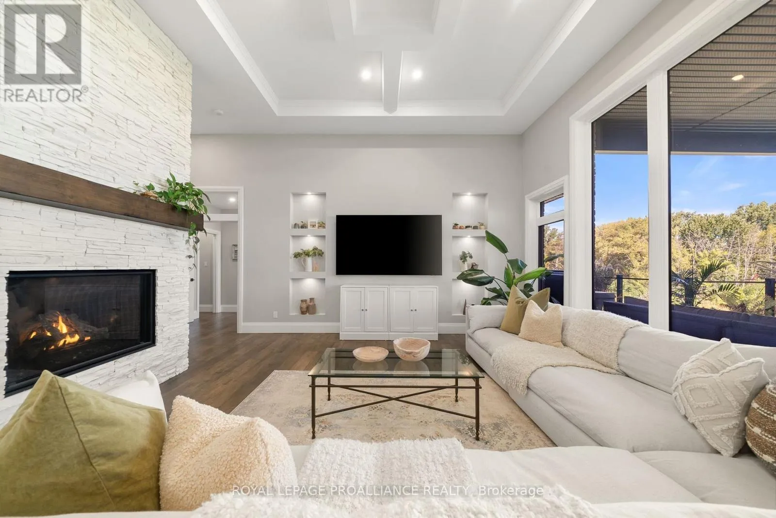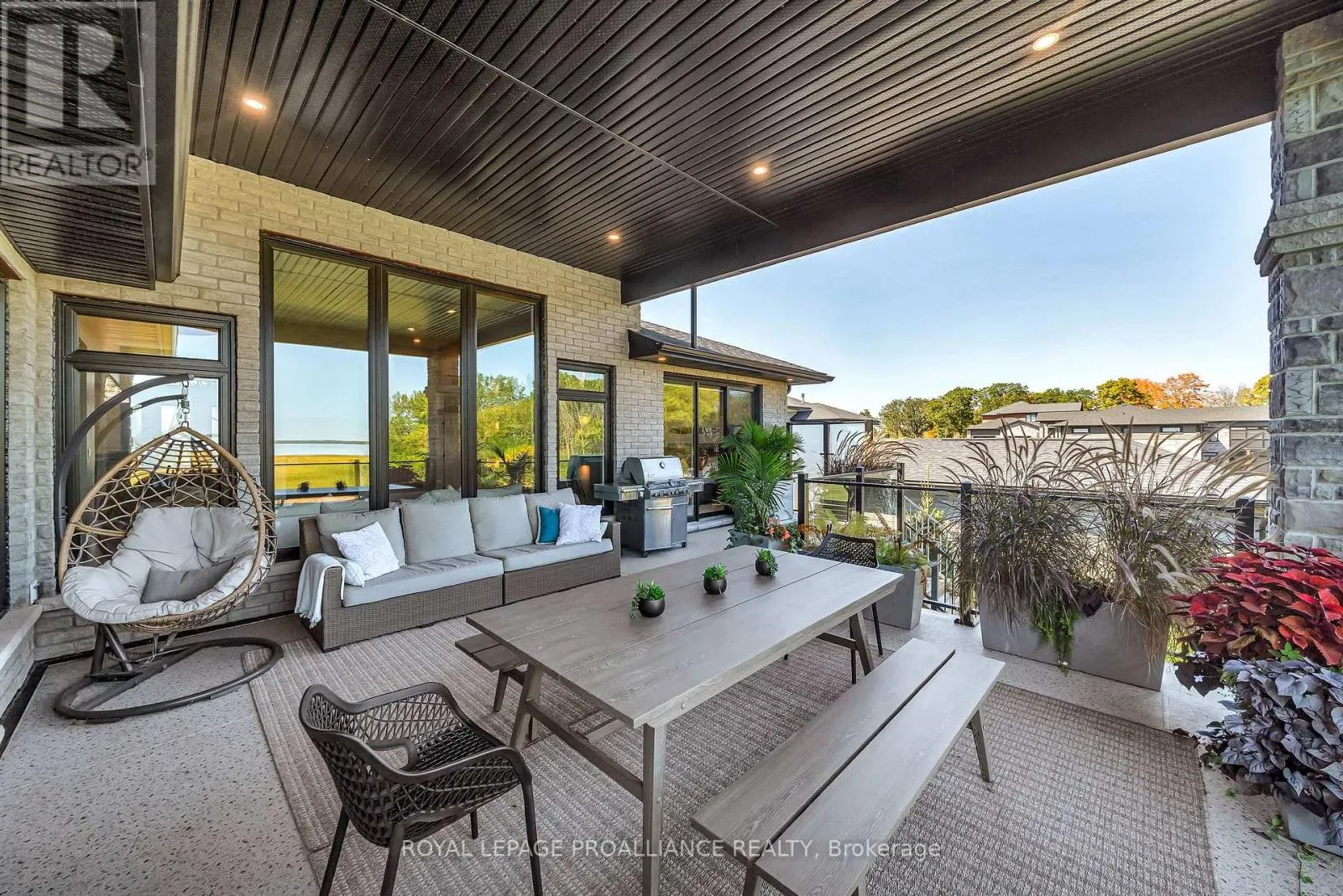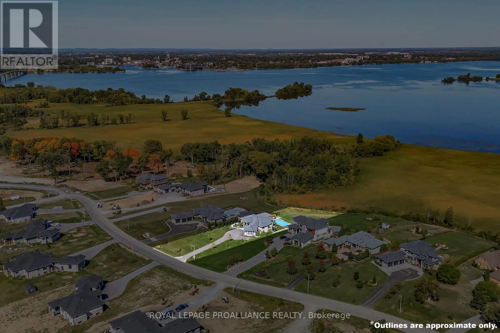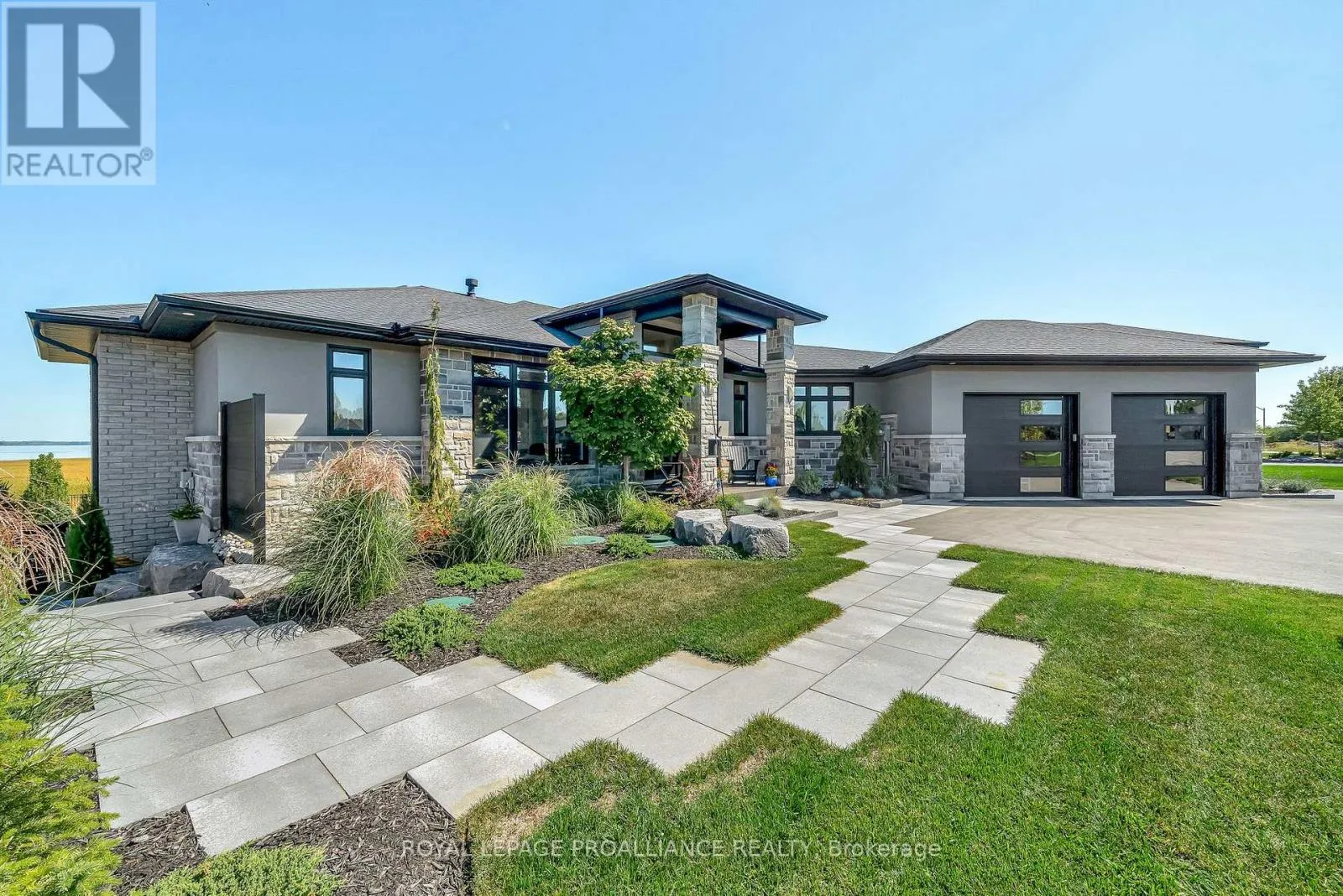 Cross Streets: County Rd. 28 & Navigation Drive. ** Directions: Highway 62 to County Rd. 28 to Navigation Drive. Incomparable home, with keen attention to the interplay of design and lifestyle, and strikingly completed by immaculate landscaping, including resort-style outdoor pool area and pristine surrounds, this stunning 3 bed 3 bath walkout home is an inimitable property in an uncompromising location in prestigious "Watermark on the Bay". Soak in the daily beauty of the ever-changing landscape of Bay of Quinte views, framed by expansive water-view windows at every opportunity. 11" coffered ceiling, and a soaring stone fireplace comfortably defines the striking living space- beautifully balancing grand entertaining with warm sophistication.Gorgeous kitchen designed with true attention to functionality and family, with each element adding ease of use and clean craftsmanship. Serving as the true heart of the home, it seamlessly connects to a generous dining area or versatile den, with garden door to the expansive elevated deck.The primary suite spans the north side of the home, a private retreat with serene views, walk-in closet with built-ins, a custom 5-pc ensuite, and patio door to the deck. Two additional bedrooms rest on the south side of the home, one with ensuite privilege to a well-appointed 3-pc bath.A beautiful home office, spacious mudroom/laundry, with access to a private south facing patio, and door to the double garage with car lift, completes the main floor.Walkout lower level offers the opportunity to add generous living space, bedrooms and a full bath, while extending indoor-outdoor living with access to the covered hot tub and stunning backyard.Meticulously landscaped with ease of maintenance and privacy in mind the curated outdoor spaces compliment the natural surroundings and create a gracious setting for outdoor living and entertaining. Situated just inside Prince Edward County only minutes to the City of Belleville. An undoubtedly rare and uncompromising lifestyle of sophistication, privacy, and distinction awaits. Feel At Home on Navigation Drive. (id:27476)
