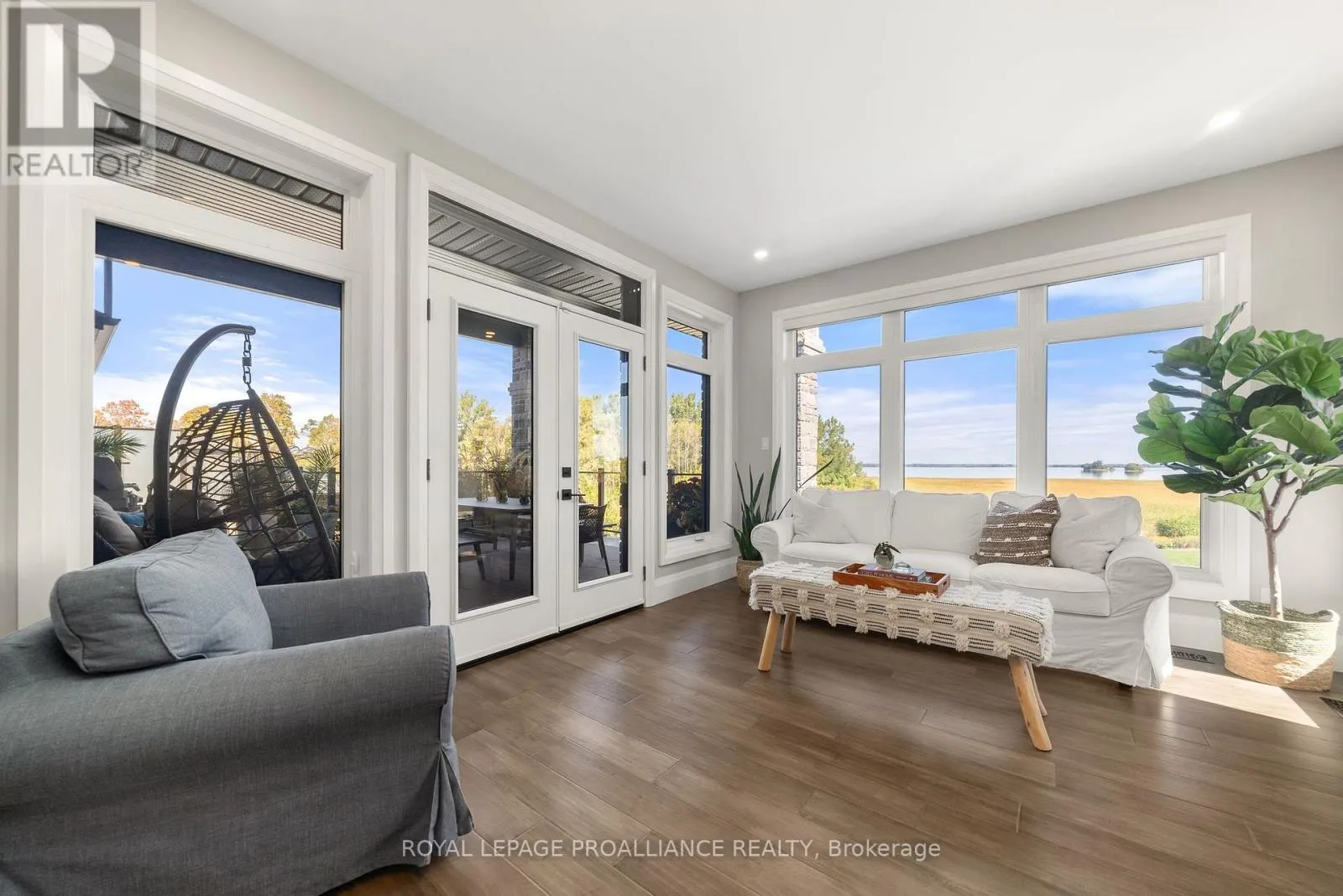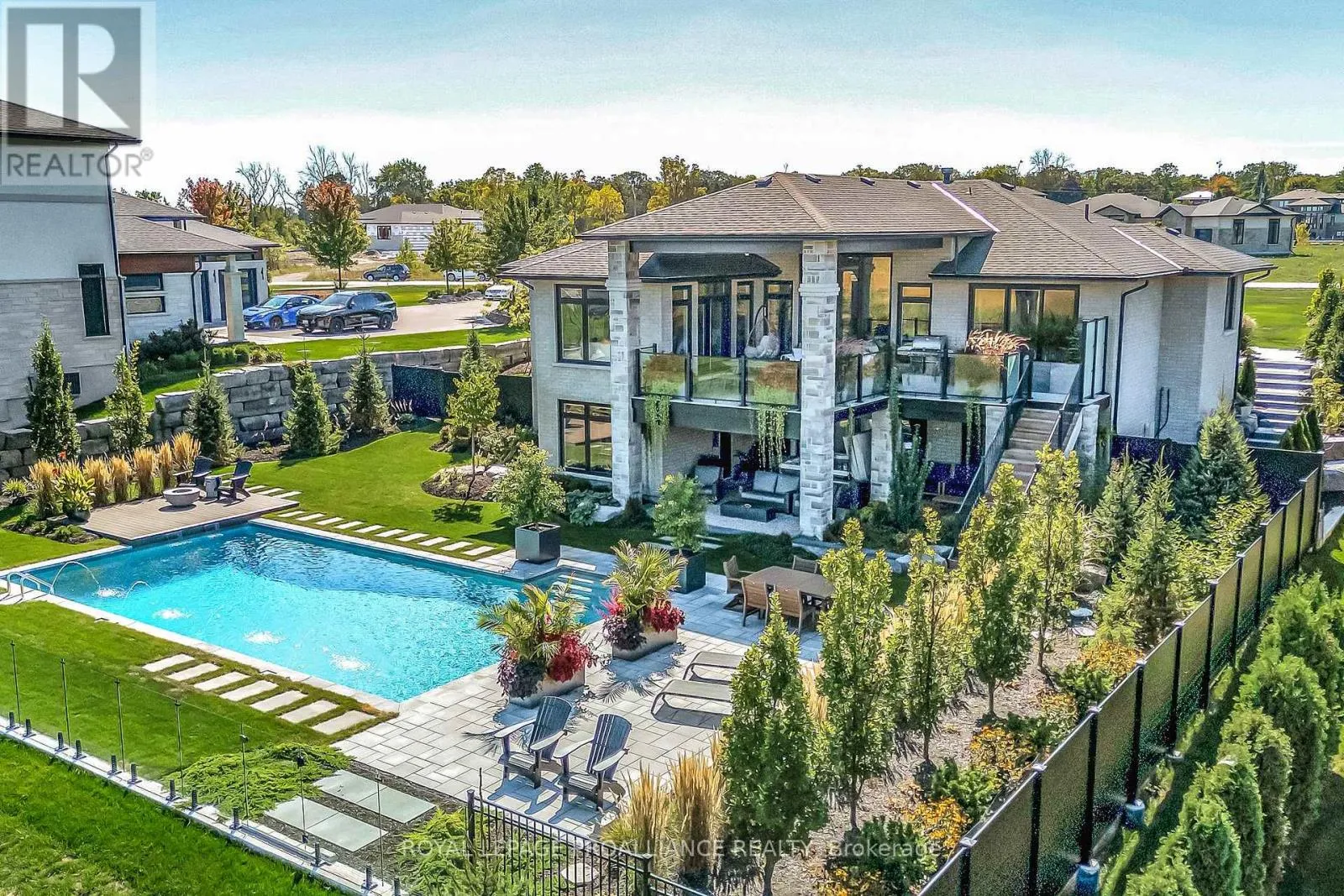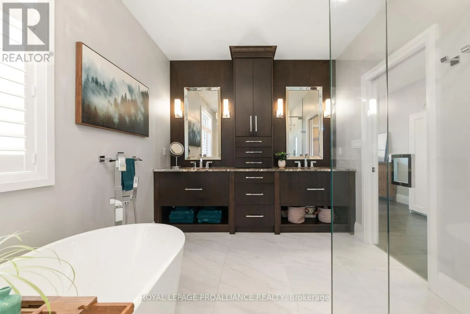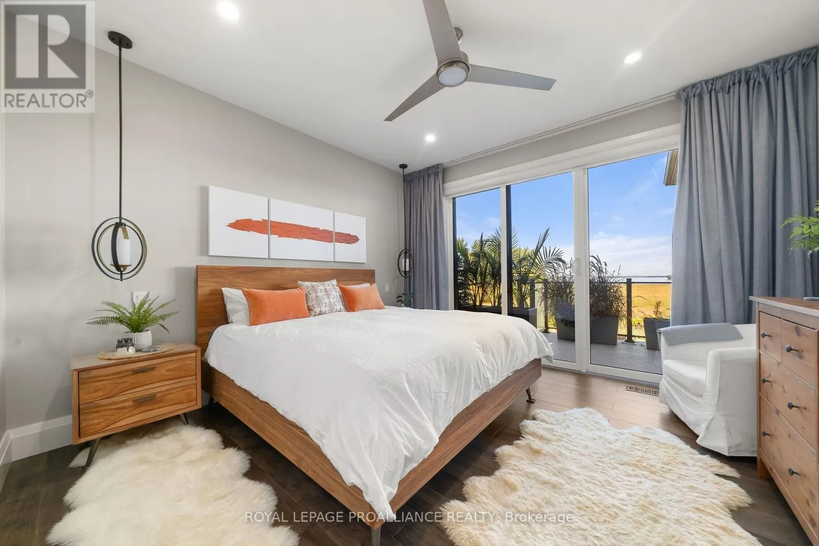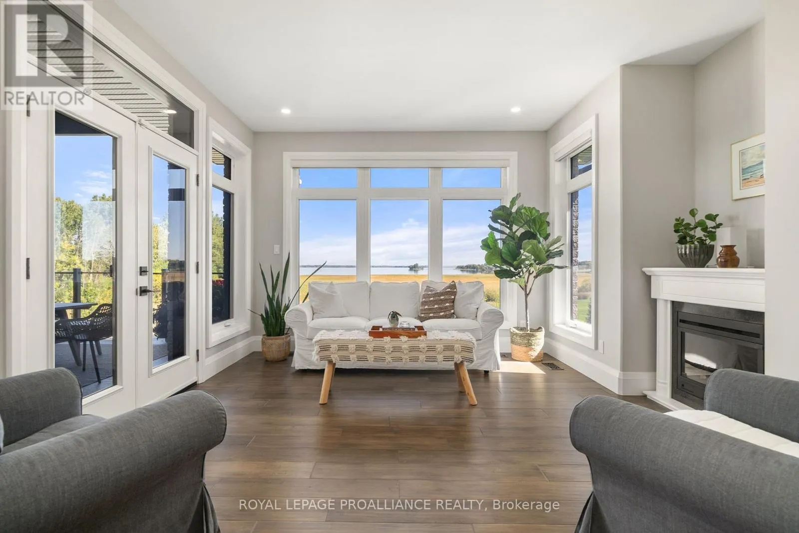 Cross Streets: County Rd. 28 & Navigation Drive. ** Directions: Highway 62 to County Rd. 28 to Navigation Drive. Incomparable home, with keen attention to the interplay of design and lifestyle, and strikingly completed by immaculate landscaping, including resort-style outdoor pool area and pristine surrounds, this stunning 3 bed 3 bath walkout home is an inimitable property in an uncompromising location in prestigious "Watermark on the Bay". Soak in the daily beauty of the ever-changing landscape of Bay of Quinte views, framed by expansive water-view windows at every opportunity. 11" coffered ceiling, and a soaring stone fireplace comfortably defines the striking living space- beautifully balancing grand entertaining with warm sophistication.Gorgeous kitchen designed with true attention to functionality and family, with each element adding ease of use and clean craftsmanship. Serving as the true heart of the home, it seamlessly connects to a generous dining area or versatile den, with garden door to the expansive elevated deck.The primary suite spans the north side of the home, a private retreat with serene views, walk-in closet with built-ins, a custom 5-pc ensuite, and patio door to the deck. Two additional bedrooms rest on the south side of the home, one with ensuite privilege to a well-appointed 3-pc bath.A beautiful home office, spacious mudroom/laundry, with access to a private south facing patio, and door to the double garage with car lift, completes the main floor.Walkout lower level offers the opportunity to add generous living space, bedrooms and a full bath, while extending indoor-outdoor living with access to the covered hot tub and stunning backyard.Meticulously landscaped with ease of maintenance and privacy in mind the curated outdoor spaces compliment the natural surroundings and create a gracious setting for outdoor living and entertaining. Situated just inside Prince Edward County only minutes to the City of Belleville. An undoubtedly rare and uncompromising lifestyle of sophistication, privacy, and distinction awaits. Feel At Home on Navigation Drive. (id:27476)