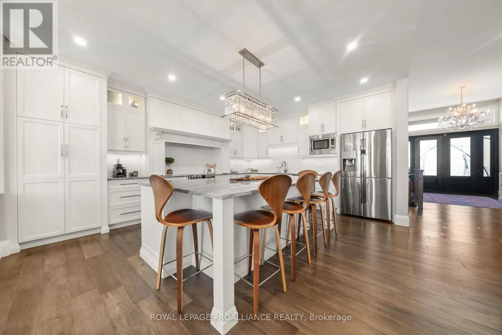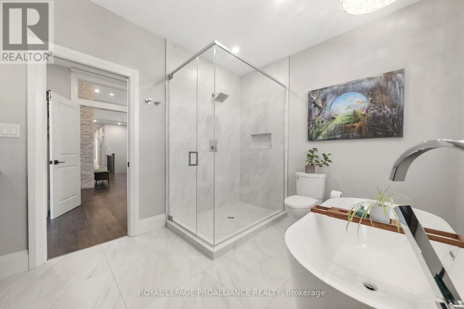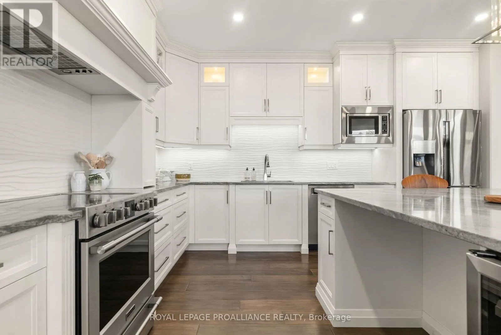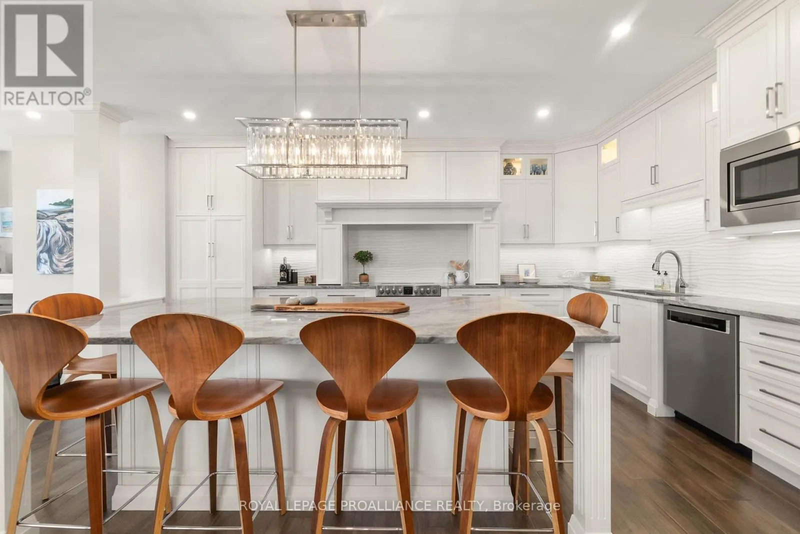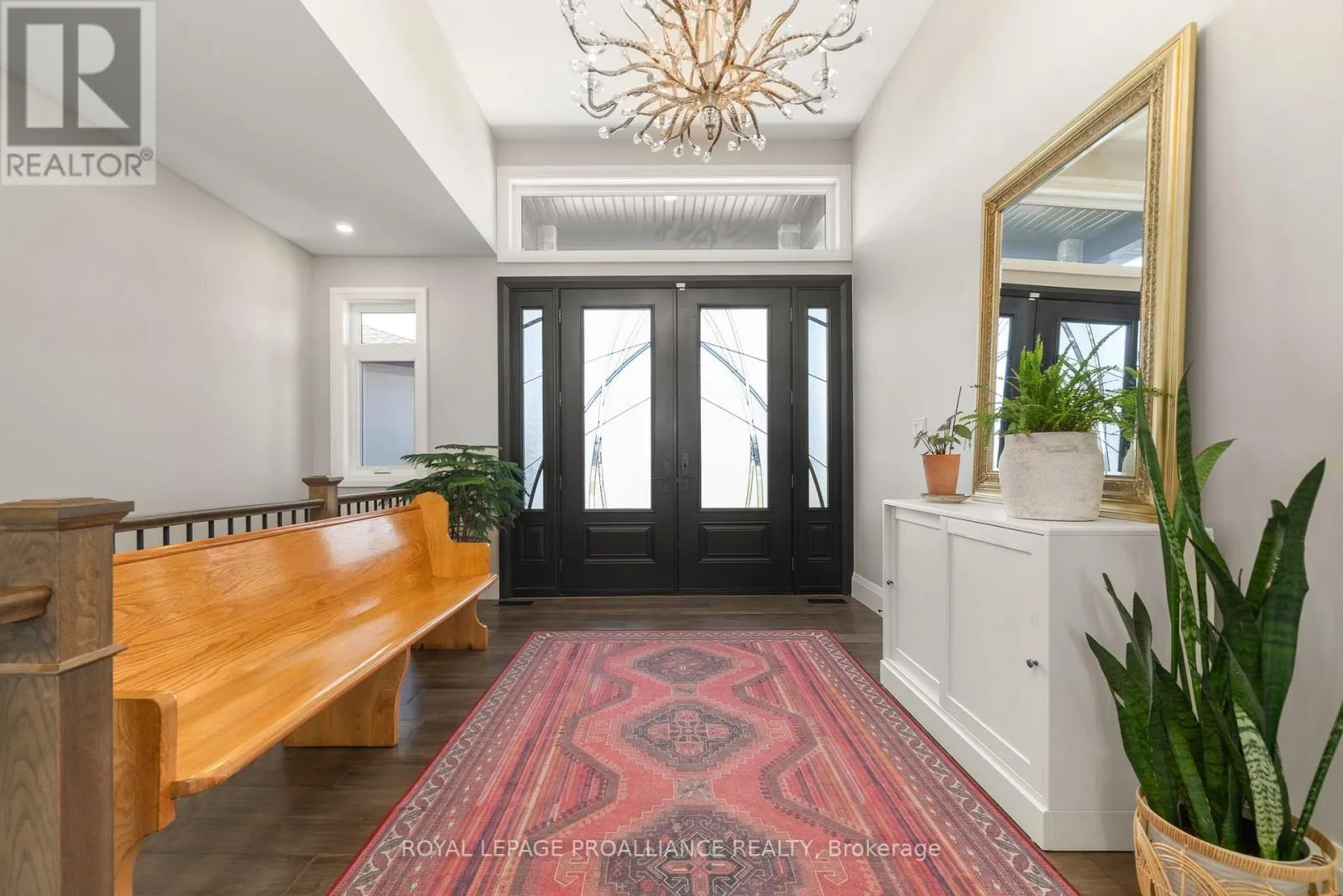 Cross Streets: County Rd. 28 & Navigation Drive. ** Directions: Highway 62 to County Rd. 28 to Navigation Drive. Incomparable home, with keen attention to the interplay of design and lifestyle, and strikingly completed by immaculate landscaping, including resort-style outdoor pool area and pristine surrounds, this stunning 3 bed 3 bath walkout home is an inimitable property in an uncompromising location in prestigious "Watermark on the Bay". Soak in the daily beauty of the ever-changing landscape of Bay of Quinte views, framed by expansive water-view windows at every opportunity. 11" coffered ceiling, and a soaring stone fireplace comfortably defines the striking living space- beautifully balancing grand entertaining with warm sophistication.Gorgeous kitchen designed with true attention to functionality and family, with each element adding ease of use and clean craftsmanship. Serving as the true heart of the home, it seamlessly connects to a generous dining area or versatile den, with garden door to the expansive elevated deck.The primary suite spans the north side of the home, a private retreat with serene views, walk-in closet with built-ins, a custom 5-pc ensuite, and patio door to the deck. Two additional bedrooms rest on the south side of the home, one with ensuite privilege to a well-appointed 3-pc bath.A beautiful home office, spacious mudroom/laundry, with access to a private south facing patio, and door to the double garage with car lift, completes the main floor.Walkout lower level offers the opportunity to add generous living space, bedrooms and a full bath, while extending indoor-outdoor living with access to the covered hot tub and stunning backyard.Meticulously landscaped with ease of maintenance and privacy in mind the curated outdoor spaces compliment the natural surroundings and create a gracious setting for outdoor living and entertaining. Situated just inside Prince Edward County only minutes to the City of Belleville. An undoubtedly rare and uncompromising lifestyle of sophistication, privacy, and distinction awaits. Feel At Home on Navigation Drive. (id:27476)