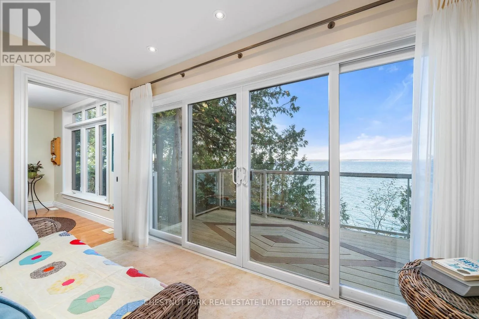 Cross Streets: County Road 13 and Whattams Road. ** Directions: County Road 10 to County Road 13. Nestled on 1.6 pristine acres along nearly 900 feet of coved South Bay shoreline in Prince Edward County's most exclusive waterfront enclave, this custom masterpiece built by Peter Sage redefines lakeside living. This beautiful residence welcomes you with gleaming hardwood floors flowing beneath soaring vaulted ceilings in the grand living room, where panoramic lake vistas steal the show through expansive windows. Every detail exudes timeless craftsmanship and understated elegance. Entertain effortlessly in the open concept kitchen or retreat to the bright sunroom, which gives you a front-row seat to the County's most breathtaking sunsets. A three car garage with a loft workshop caters to the discerning hobbyist, while manicured trails and gardens wind exquisitely through your private forested sanctuary, blending seclusion with natural splendour. Direct stair access invites you to the waters edge, where you can enjoy all the beauty, serenity and recreation of your expansive private shoreline. Ideally suited for a year round residence or an idyllic space for weekend getaways, your legacy on South Bay awaits. (id:27476)
