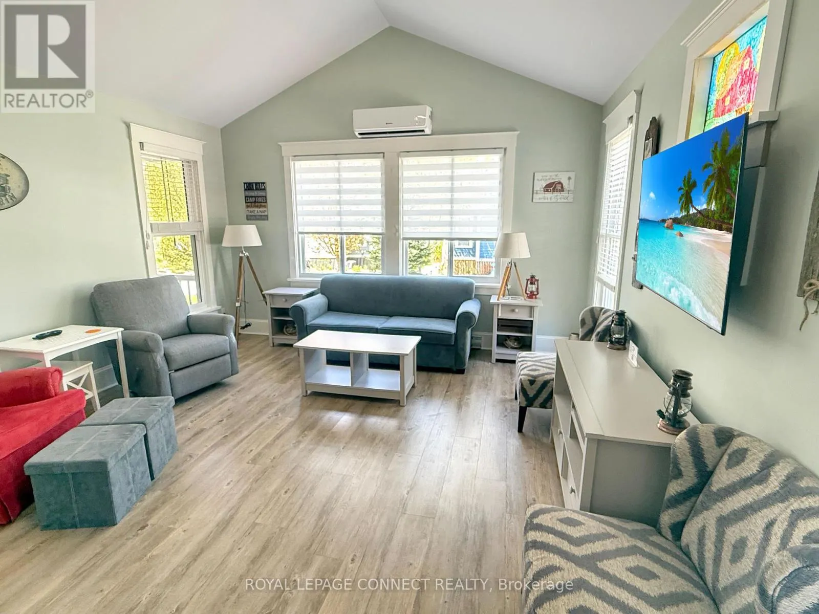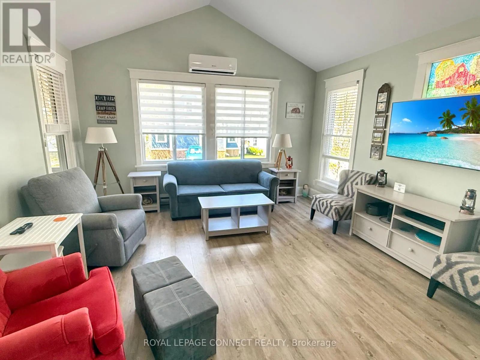 Cross Streets: Country Rd 10 & Country Rd 18. ** Directions: Country Rd 10 to Country Rd 18. Bright, Accessible Cottage with Sunset Views on East Lake! Welcome to 19 Farm View Lane, a beautiful Milford model cottage in the peaceful Woodlands area of East Lake Shores-an inviting seasonal, gated waterfront community on East Lake in Prince Edward County. This 2-bedroom, 2-bath layout is perfect for hosting family and friends, with bedrooms on opposite sides of the living space for extra privacy. The main bedroom features a 2-piece ensuite, while the second bedroom includes in-suite laundry, plus a nearby 3-piece bath with a walk-in shower.Enjoy west-facing sunsets from the large screened porch, complete with ceiling fan and roll-down shades-perfect for summer evenings. The cottage is wheelchair accessible, with a front ramp and walk-in shower, and climate-controlled with a 3-head heat pump for efficient heating and cooling. The open kitchen, dining, and living area feels bright and inviting, featuring a cathedral ceiling and plenty of natural light. Freshly painted and fully furnished, the cottage is move-in ready. Additional features include a storage shed, two-car private parking, and an EV charger so you can plug in and explore the County. Ideally located steps from the beach and East Lake, and a short walk to the adult pool, gym, Owner's Lodge, and lakeside patio deck.East Lake Shores offers 80 acres of park-like grounds, 1,500 feet of shoreline, two pools, sports courts, playground, dog park, trails, and free use of canoes, kayaks, and paddleboards. A full calendar of activities-yoga, aquafit, live music, crafts, and more-makes it easy to connect and unwind. Open April-October. Monthly condo fees of $669.70 include TV, internet, water, sewer, maintenance, snow removal, and amenities. You own both the cottage and the land. Rentals optional-join the on-site corporate program or manage your own.19 Farm View Lane is a low-maintenance County escape designed for easy living and relaxed summer days, complete with beautiful sunset views over East Lake. (id:27476)