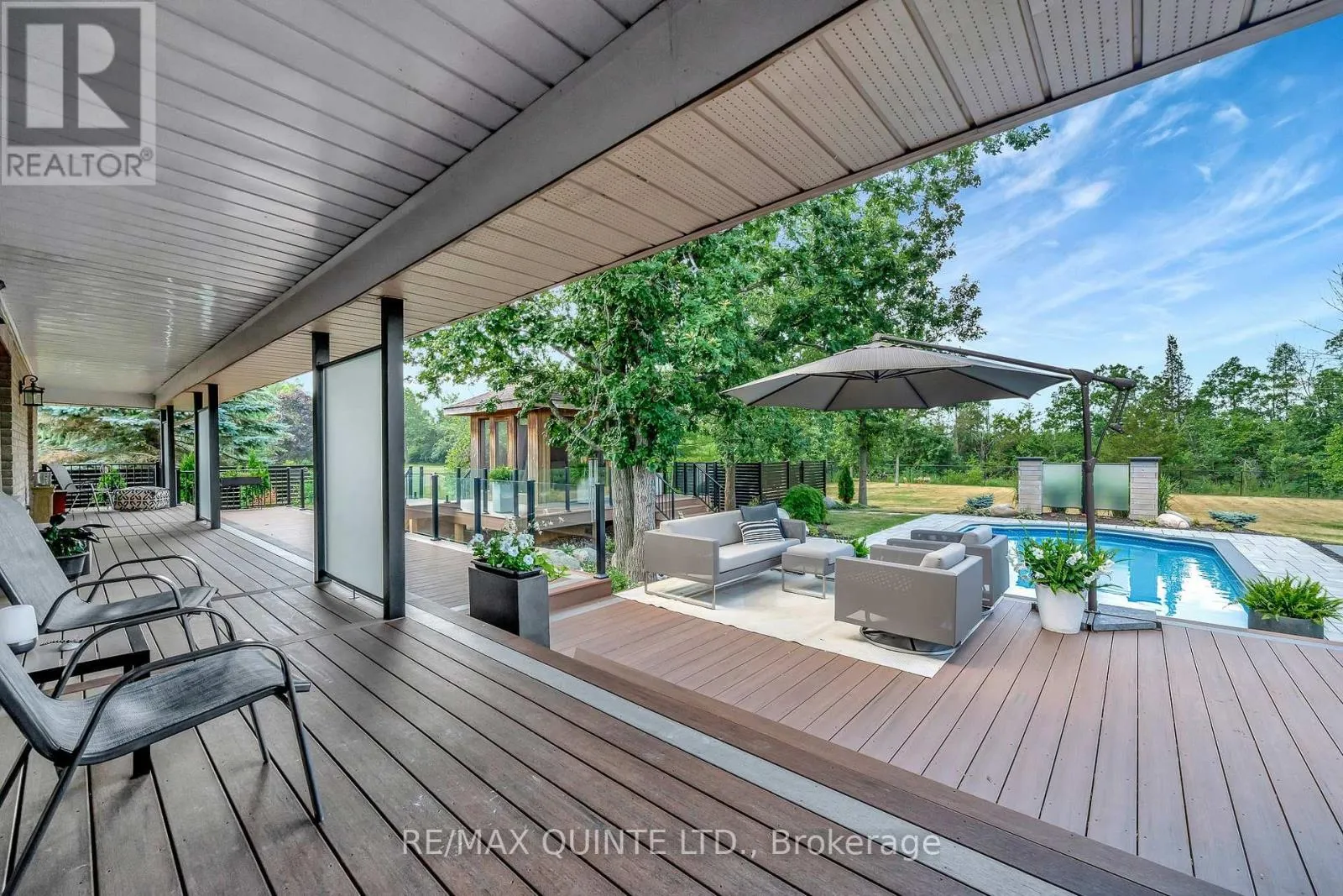Cross Streets: Hwy 62. ** Directions: Hwy 62 South to Bay Breeze St. Executive Bungalow with Show-Stopping Backyard & Modern Finishes. Welcome to 100 Bay Breeze Street, an exceptional custom built bungalow located in a prestigious neighbourhood in Prince Edward County, just minutes from Belleville. Situated on a large, beautifully landscaped lot, this home offers a rare blend of refined interior updates and truly outstanding outdoor living. Inside, you'll find 4 bedrooms and 2.5 bathrooms on the main floor, plus a fully finished lower level with a fifth bedroom and additional full bathroom with flexible living space, perfect for a home gym, media room, or guest suite or multi-generational living. The kitchen and bathrooms have been tastefully renovated with modern finishes and attention to detail. But it's the backyard that truly sets this property apart. Step outside to a private outdoor oasis, complete with a sparkling in ground pool, a screened-in gazebo, and lush, mature landscaping that offers both beauty and privacy. Whether you're hosting summer gatherings or enjoying a quiet morning coffee, this backyard is designed for relaxation and entertaining alike. This home combines luxury living with unbeatable convenience. Just Two hours east of Toronto, Prince Edward County's perfect combination of lakeside views, charming town life and award winning culinary culture have made it one of Canada's most highly coveted destinations. (id:27476)