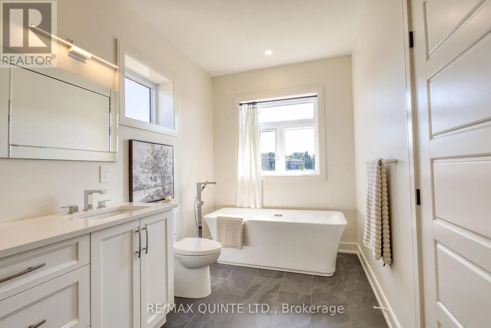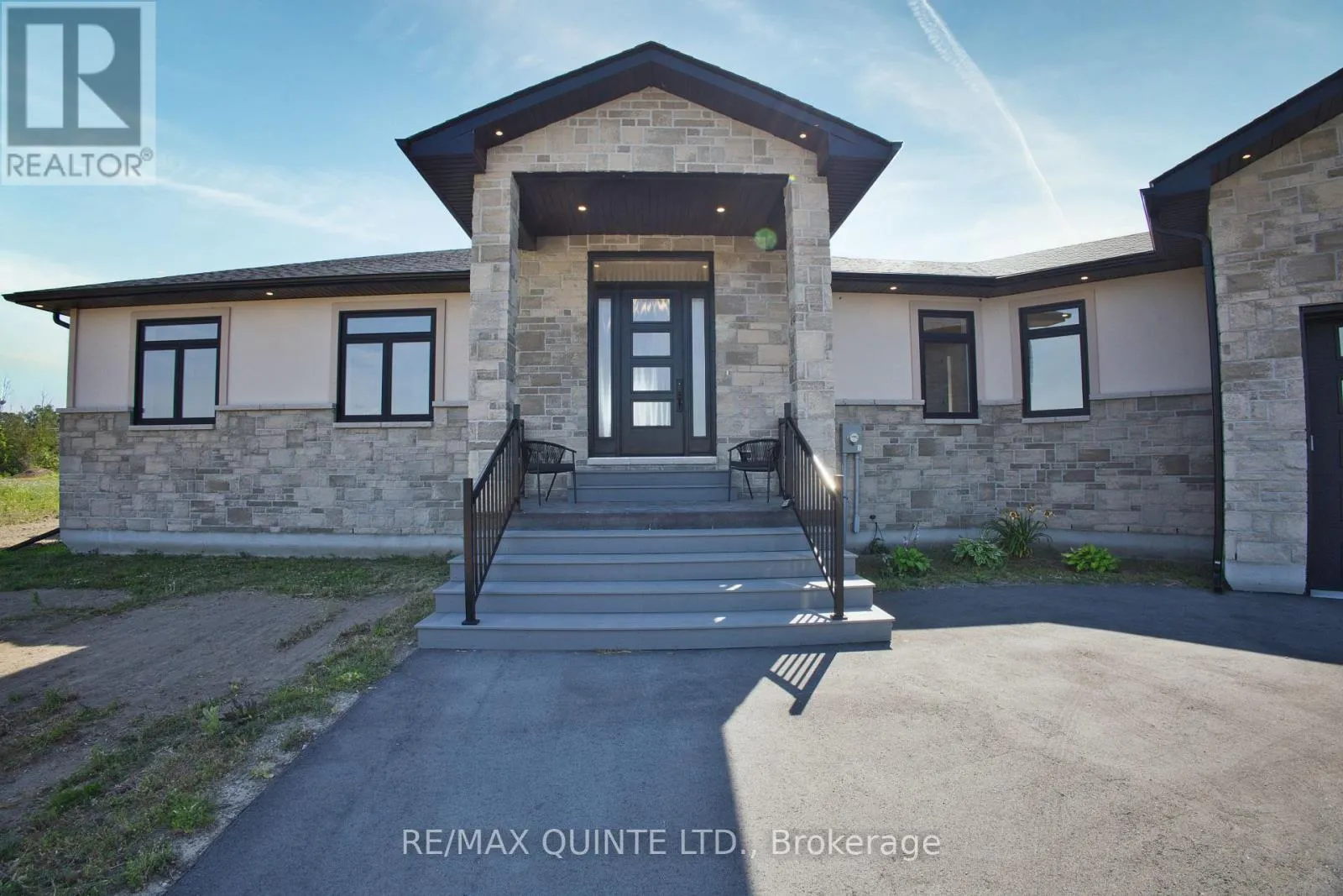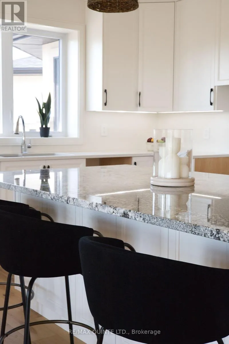 Cross Streets: County Rd 28 and Highway 62. ** Directions: Highway 62 south of Belleville to County Rd 28 in PEC to Leaside Drive to Navigation Drive. This striking executive stone and stucco home offers scenic water views and is located in the desirable "Watermark on the Bay" community in Prince Edward County-just minutes from Belleville and close to trails, parks, vineyards, and the Bay of Quinte. Residents of this elegant enclave enjoy private access to a marsh-front walking trail along the shoreline. Built with energy-efficient Insulated Concrete Form (ICF) construction and a forced air electric heat pump, the home is designed for year-round comfort. Inside, you'll find wide-plank wood flooring, quartz countertops, quality cabinetry, and a striking granite island in the contemporary kitchen. The spacious layout includes a walk-in butler's pantry, a generous mudroom with laundry, and a beautifully appointed 5-piece ensuite. Outdoor living is just as impressive, with a covered front porch and a rear deck featuring glass railings. The bright and open lower level has drywalled walls and is ready for your finishing touch. An oversized attached garage-nearly 1,000 sq. ft.-offers high ceilings, large windows, and ample space for storage or hobbies. With municipal water, Bell Fibe Internet, and a premium location in one of the area's most exclusive neighbourhoods, this home delivers comfort, style, and lasting value. (id:27476)