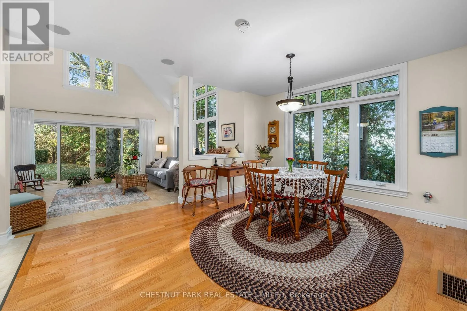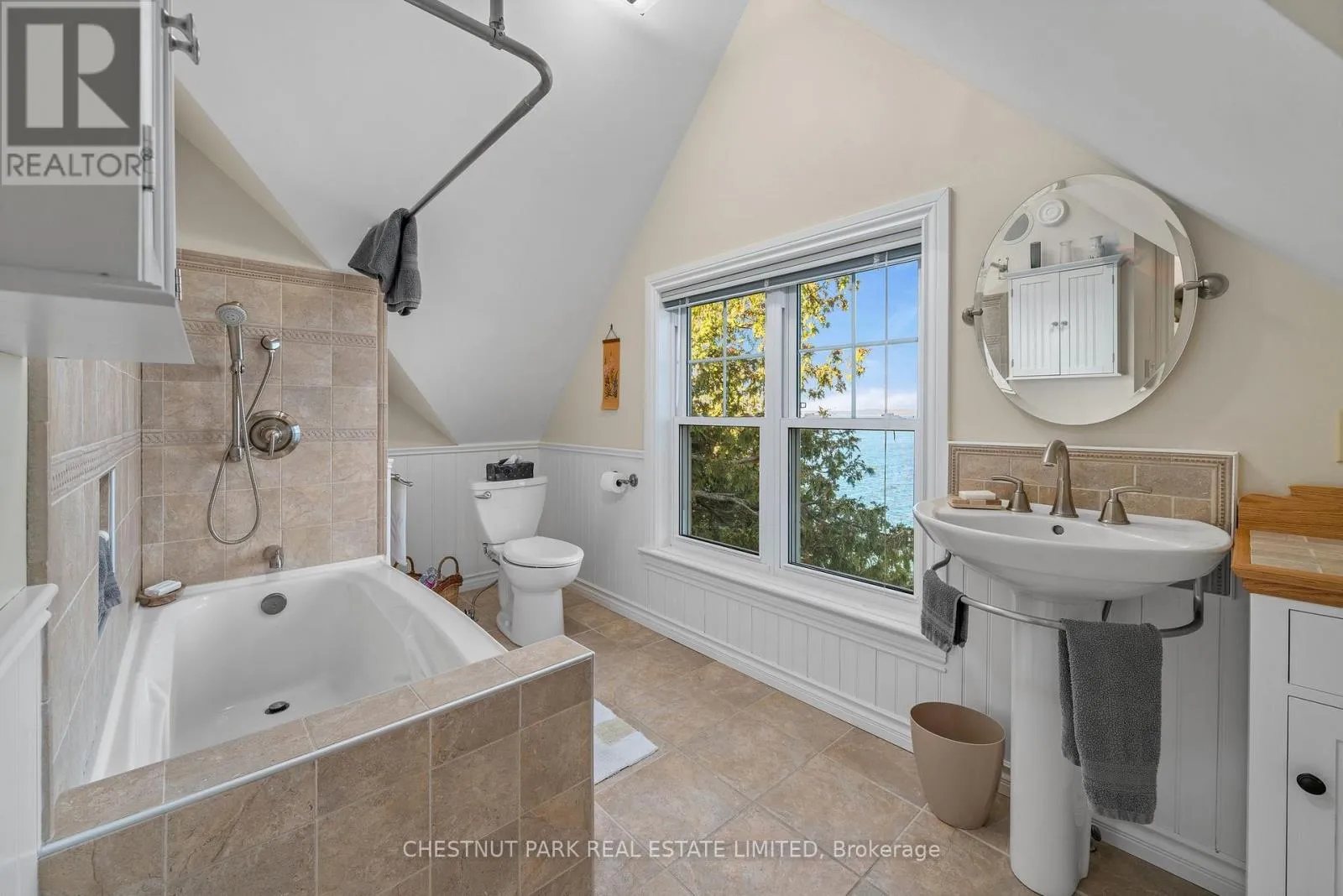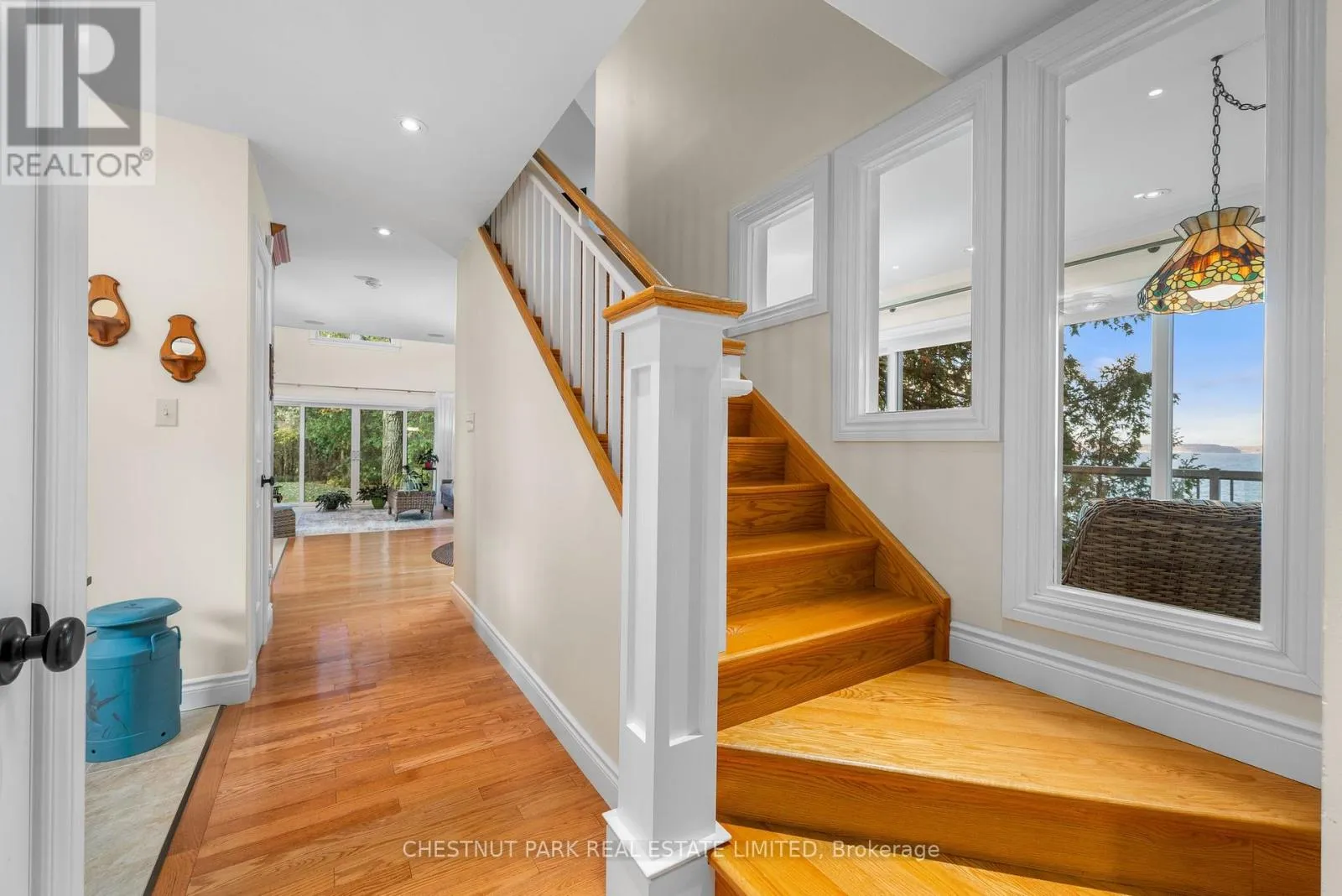Cross Streets: County Road 13 and Whattams Road. ** Directions: County Road 10 to County Road 13. Nestled on 1.6 pristine acres along nearly 900 feet of coved South Bay shoreline in Prince Edward County's most exclusive waterfront enclave, this custom masterpiece built by Peter Sage redefines lakeside living. This beautiful residence welcomes you with gleaming hardwood floors flowing beneath soaring vaulted ceilings in the grand living room, where panoramic lake vistas steal the show through expansive windows. Every detail exudes timeless craftsmanship and understated elegance. Entertain effortlessly in the open concept kitchen or retreat to the bright sunroom, which gives you a front-row seat to the County's most breathtaking sunsets. A three car garage with a loft workshop caters to the discerning hobbyist, while manicured trails and gardens wind exquisitely through your private forested sanctuary, blending seclusion with natural splendour. Direct stair access invites you to the waters edge, where you can enjoy all the beauty, serenity and recreation of your expansive private shoreline. Ideally suited for a year round residence or an idyllic space for weekend getaways, your legacy on South Bay awaits. (id:27476)