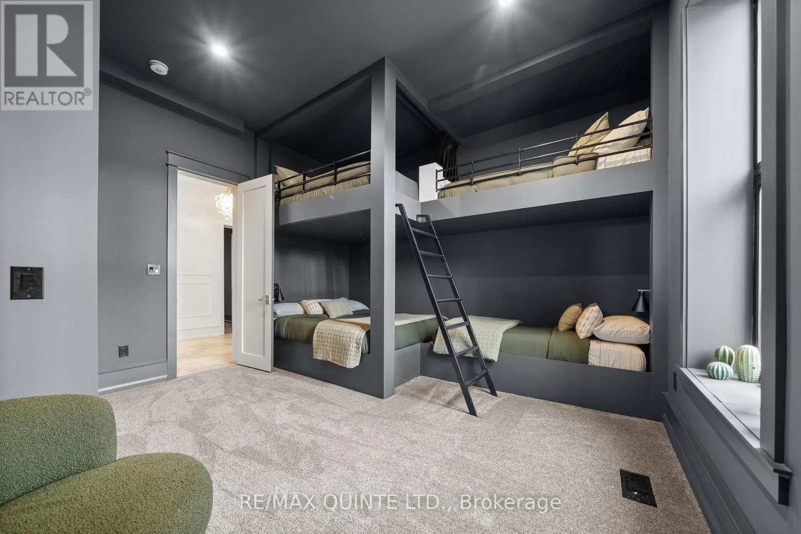 Cross Streets: Bridge St & Phillip St. ** Directions: #88 on Bridge St. This extraordinary estate offers the rare opportunity to experience luxury living on a grand scale in the heart of Picton. Originally dating back to 1862, the Uplands house has been fully reimagined to deliver the elegance of a heritage property with the comfort and sophistication of modern design. Soaring 11' ceilings, refined architectural details and expansive principal rooms create an atmosphere of effortless grandeur from the moment you step inside. Designed for both intimate living and large-scale entertaining, the home flows beautifully from the chef-style kitchen to the stunning great room, where vaulted ceilings and a dramatic fireplace set the stage for memorable gatherings. The primary suite evokes a boutique hotel retreat, while 3 additional bedrooms, including a custom bunk room, offer versatility for family or guests. Entertainment spaces such as the theatre room and bar lounge enhance the home's appeal, complemented by built-in speakers and thoughtful storage throughout. The lower level extends the premium experience with a spacious recreation room, private gym and relaxing infrared sauna and cold plunge. Outside, the property unfolds like a private resort, featuring an inground heated pool, hot tub, pergola with built-in kitchen and multiple seating areas surrounded by professionally landscaped grounds - perfect for summer evenings and weekend celebrations. Remarkably, the lot spans nearly half a town block, providing the space and privacy of a country estate with the convenience of walkable in-town living. A 3-car garage with 12' lift-ready ceilings completes this exemplary offering. A truly unparalleled home for the discerning buyer seeking luxury, character and lifestyle without compromise. (id:27476)