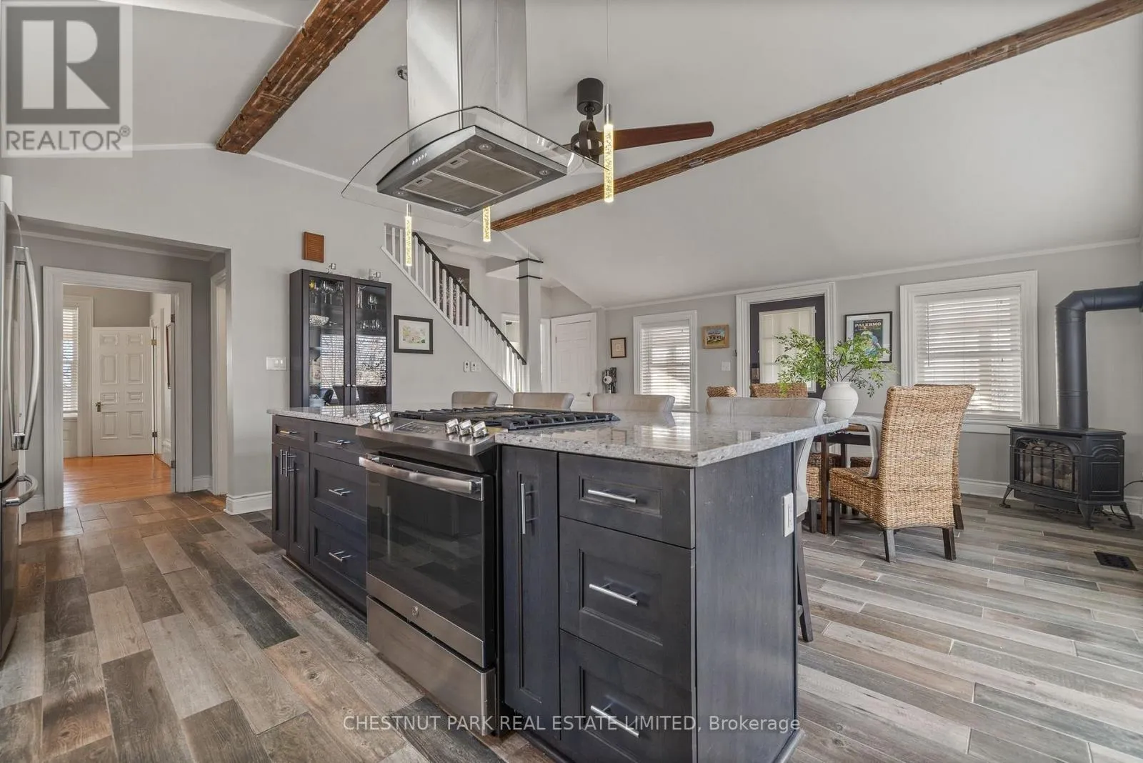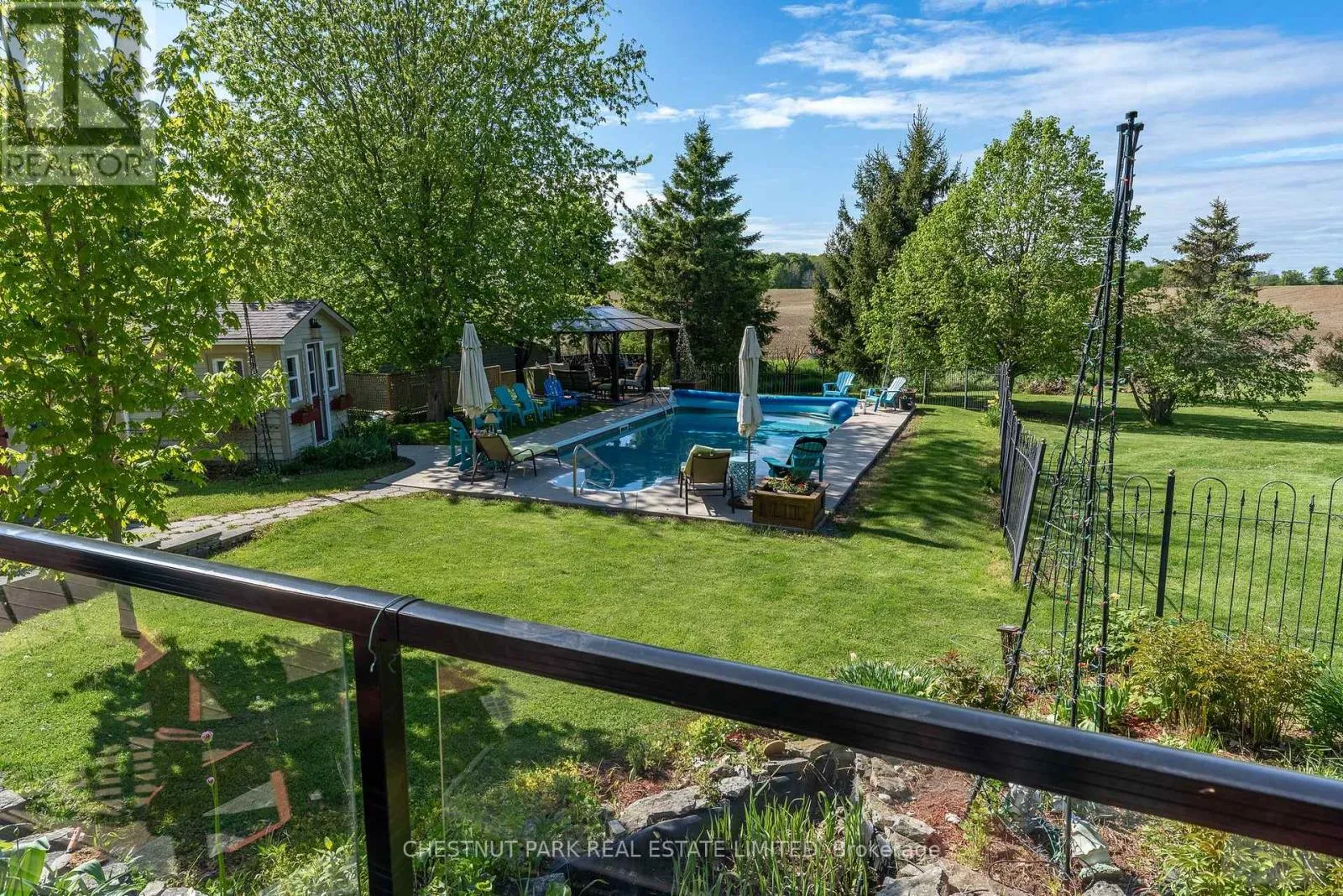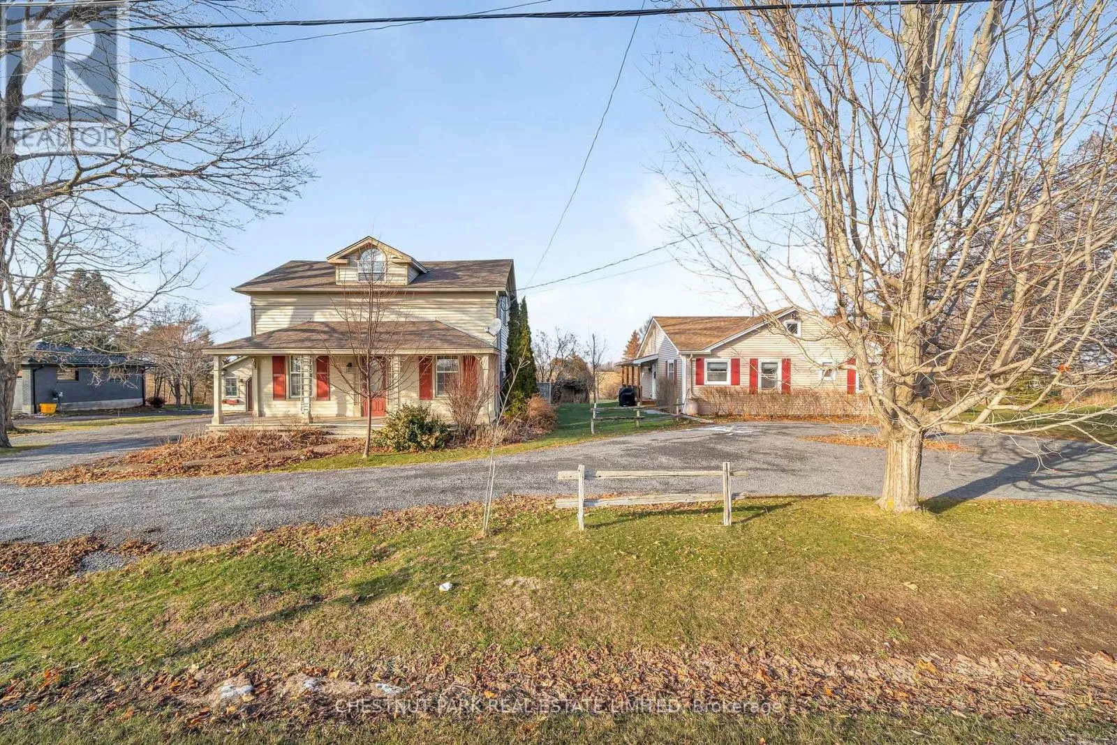Cross Streets: Loyalist Parkway. ** Directions: West on Bloomfield Main St to Loyalist Parkway/Hwy 33 to #14782. A truly unique property offering two separate residences on just over an acre at the edge of Bloomfield. Both homes overlook the private backyard oasis, thoughtfully designed for relaxation and entertaining. The outdoor space is a true retreat, featuring an in-ground pool, pool house, gazebo, expansive deck, patio, and yard space, all framed by lush perennial gardens and mature trees, while backing onto open farm fields for added privacy and a peaceful sense of open space. The main house exudes timeless charm and elegance, seamlessly blending historic original character with tasteful modern updates. The spacious eat-in kitchen was designed for entertaining and is the perfect gathering space, with an oversized island, granite counter tops and updated finishes that balance function and style. The main level is completed by a cozy living room with a gas fireplace, a formal dining room, and a powder room, while the upper-level accommodates two comfortable bedrooms and a four-piece bath. A convenient enclosed side porch and inviting front porch add to the home's warmth and appeal. The secondary residence, built in 2020, provides an additional 1000+ sq ft of living space. This modern, single-level home features an open-concept kitchen, dining, and living area, two bedrooms, and a full bath - ideal for guests, multi-generational living, or generating rental income. Completing the property is a detached garage and ample parking for both houses. Centrally located within minutes of downtown Bloomfield, Picton, Wellington and the 401, as well as many renowned restaurants, wineries, and beaches - the best of Prince Edward County living in a quiet country setting. (id:27476)
