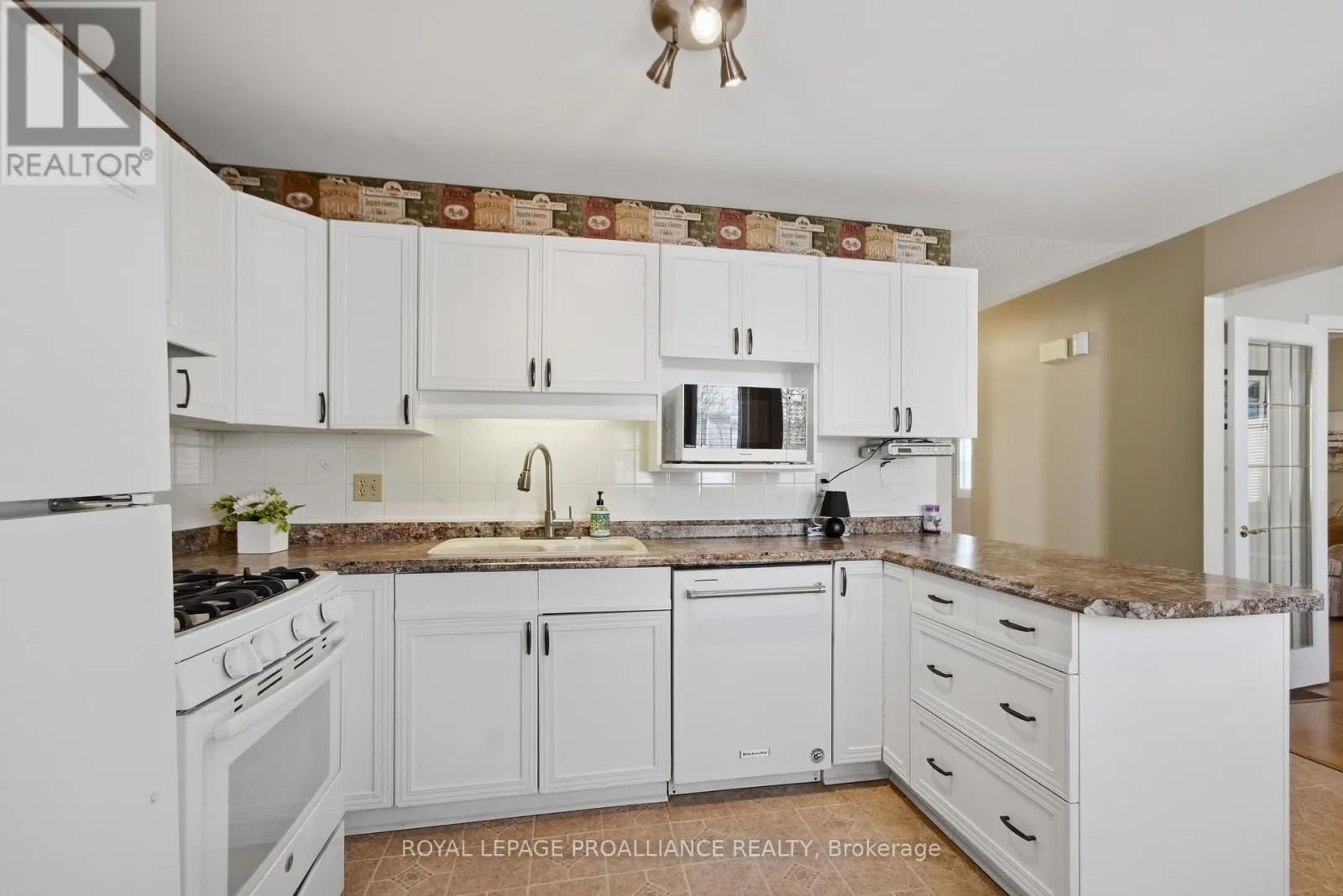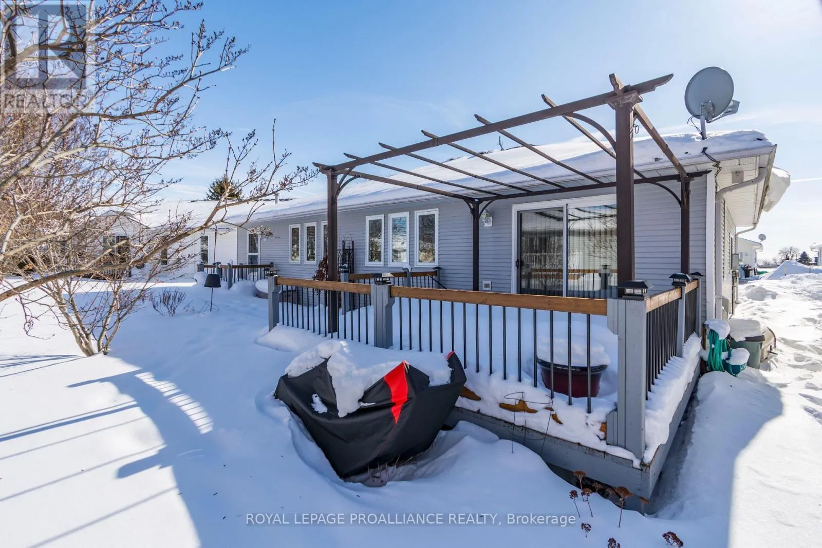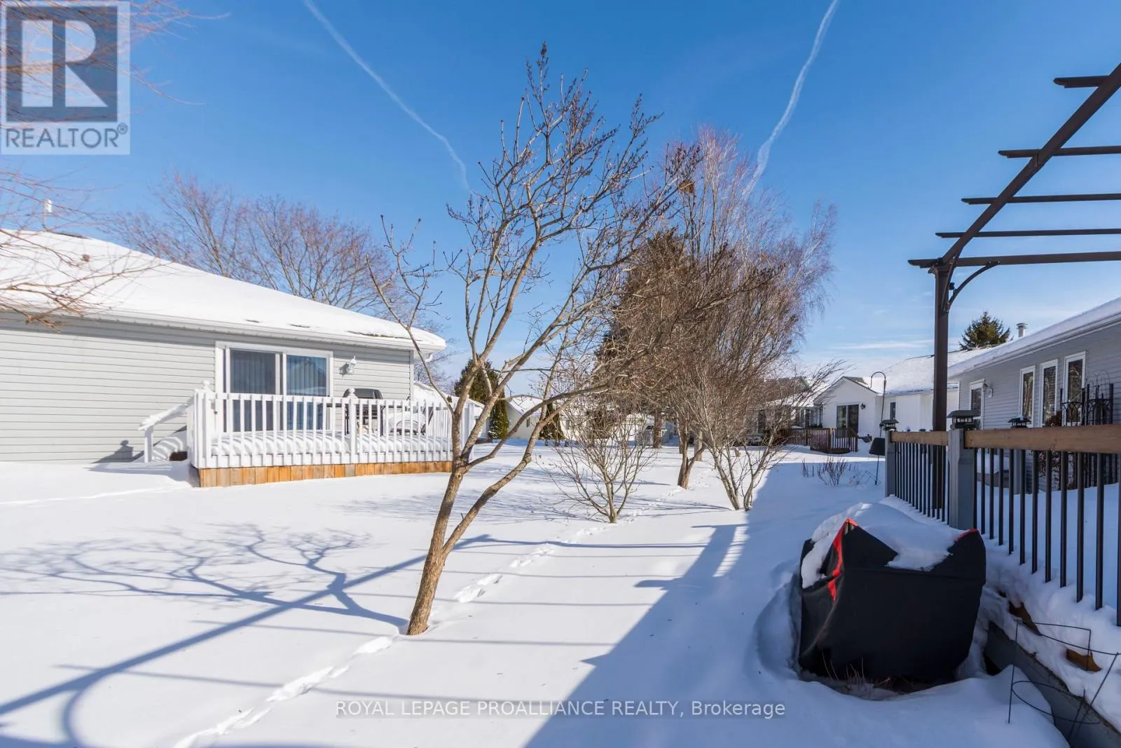 Heritage Drive & Cretney Drive Welcome to 5 Cretney Drive, a beautifully maintained bungalow located in a friendly, well-established 55-plus community in the heart of Wellington, Ontario. Designed for easy, main-floor living, this thoughtfully laid-out home offers two bedrooms, two bathrooms, and the convenience of a one-car garage-an ideal option for those looking to downsize without compromise. Built specifically with seniors in mind, the home features enhanced accessibility throughout, including lowered electrical outlets and countertops, as well as wider hallways and doorways to comfortably accommodate wheelchair access if needed. A crawl space provides valuable additional storage, further adding to the home's practical and efficient design. Set within a vibrant and welcoming community, residents enjoy access to a recreation centre featuring a swimming pool, lawn bowling, and a full calendar of social and community events-allowing you to be as active and connected as you choose. Monthly maintenance fees include land lease, road maintenance within the community, and membership to the community recreation centre, offering a truly low-maintenance lifestyle. The home is well cared for and move-in ready, located in a setting where neighbours quickly become friends. Ideally situated close to Wellington's charming shops, local restaurants, parks, beaches, nearby golf courses, and Prince Edward County wineries, this leased-land home is also conveniently less than a two-hour drive from the GTA. (id:27476)
