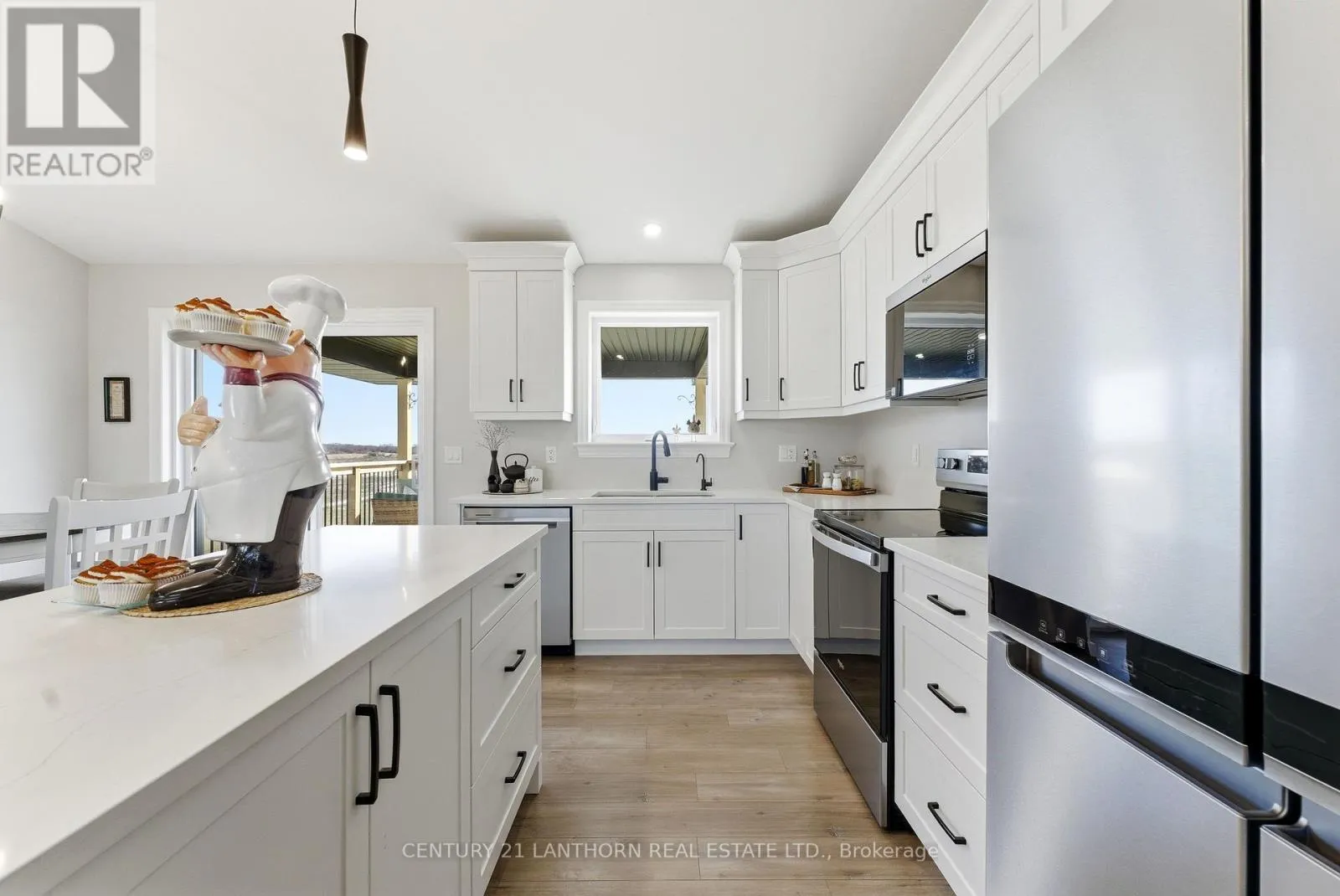 Cross Streets: County Road 25, Loyalist Parkway. ** Directions: County Road 8 to County Road 25, right on County Road 7 to 1232 OR Loyalist Parkway (Glenora Road) to County Road 7 past Lake-on-the-mountain to 1232. Sign on. Modern Farmhouse in Prince Edward County! Enjoy one-level living in this true bungalow, a 1-year-old Farnsworth Construction build with attached double garage and Tarion Warranty. This home features a bright and open layout, with upgraded kitchen, including quartz counters and all appliances included (1 year old Whirlpool), large island with seating, and plenty of storage. Cathedral ceiling with pot lights in the main living area creates an open and bright feeling, with walk out to your 32x6-foot concrete covered front porch and 12x14-foot covered rear deck! The pleasing main floor layout features inside entry from the garage into the mudroom/laundry (1 year old Samsung top loading, large capacity washer and dryer included), open living space, 3 spacious bedrooms and 2 full washrooms with tiled floors on the main level (Primary bedroom has a walk in tiled shower in the large ensuite). Basement renovation completed in 2025 nearly doubled the square footage of this home! The basement features the Great Room, which is bright and spacious with extra-height (8'8") ceilings, areas for family entertainment and leisure, high quality laminate flooring and underlay, walk out to the rear yard, and potential for a secondary unit - full 4-piece washroom already installed and wiring is ready to add a fourth bedroom in the future. This 2-acre property was seeded and landscaped in 2025 and features: raised garden beds and a variety of tree species, including, maple, blue spruce, sugar maple and more! Located 5 minutes to Waupoos winery, Cressy Mustard, Stella's Eatery, County Cider and Lake-on-the-Mountain, and less than 15 minutes to Picton for groceries, shopping, hospital and more. Quick closing available! (id:27476)