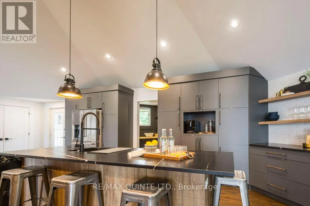 Cross Streets: County Rd 23. ** Directions: Highway 62 South to County Rd 3. Stunning waterfront retreat located on the Bay of Quinte in picturesque and sought after Prince Edward County.This fully updated, exceptional 3-bedroom, 3-bathroom property offers a perfect blend of modern sophistication and tranquil waterfront living. With its impressive waterfall granite kitchen island serving as the heart of the home and a private boathouse right at your doorstep, this residence promises both luxury and a serene lifestyle. Step inside to discover an open and inviting layout that seamlessly connects the living, dining, and kitchen areas all with gorgeous views perfect for entertaining friends and family or enjoying cozy nights in. The spacious living room features a cozy fireplace, providing a warm ambiance on cool evenings. Each bedroom is generously sized, the master suite boasts an amazing hotel quality en-suite bath with modern fixtures and design.Outside, you'll find an outdoor paradise waiting to be explored! Both decks overlook the sparkling water, ideal for summer gatherings or peaceful morning coffees while taking in the stunning views. You'll be captivated by the beautifully landscaped yard, which includes ample space for outdoor activities. The property comes complete with a private boathouse, providing direct access to the water for fishing, boating, or kayaking adventures. Nestled within the charming community of Prince Edward County, this home offers not only stunning natural beauty but also convenient access to nearby attractions, including wineries, beaches, and gourmet restaurants. The area is well-known for its vibrant art scene, local farmers' markets, and outdoor recreational opportunities. Families will appreciate the proximity to excellent schools and community services, ensuring both comfort and convenience. Your slice of paradise in Prince Edward County awaits! (id:27476)
