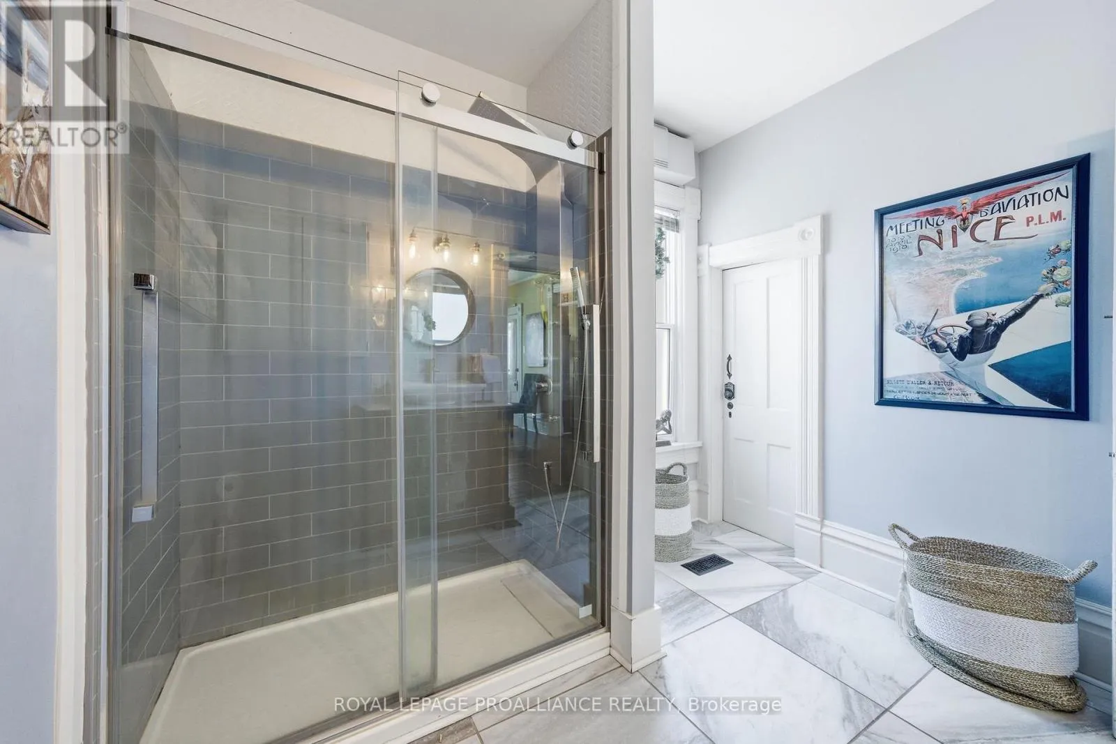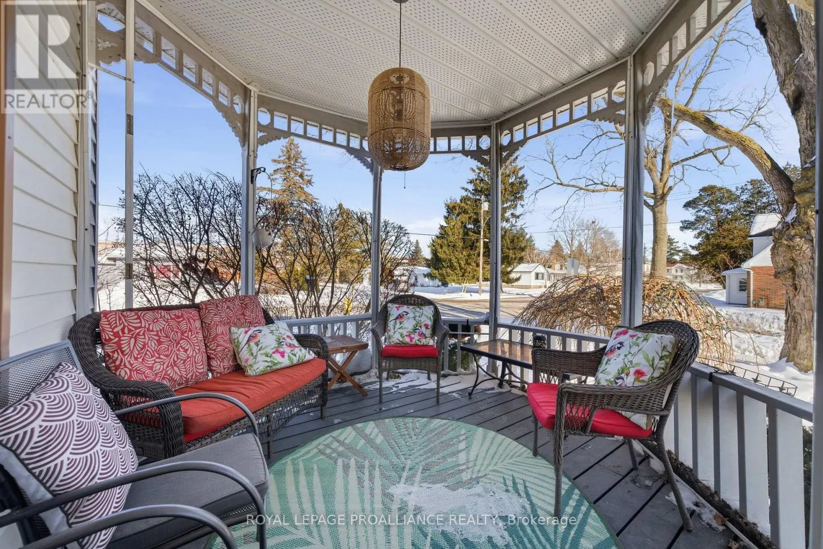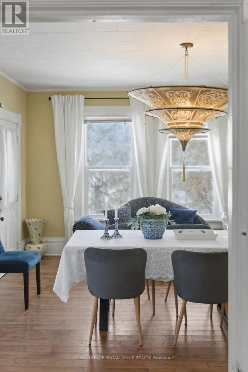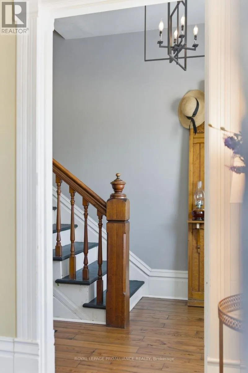 Cross Streets: Elm Street-Barker Street. ** Directions: Follow Picton Main St W, turn left on Paul St, property is on the corner of Paul Street and Elm Street - #47 - sign on. Introducing 47 Paul Street in the heart of picturesque Prince Edward County. Perfectly positioned on a prominent corner in one of Picton's most desirable neighbourhoods, this classic Queen Anne residence sits just steps away from the local school and park, and is an easystroll to downtown shops, dining, theatre, and amenities. Surrounded by other heritage properties, this distinguished home stands out with its wraparound gazebo-style porch adorned with intricate gingerbread detailing. Large, inviting windows fill the interior with natural light, creating a warm and welcoming atmosphere ideal for family living or guest accommodations. The home offers three bedrooms and two full bathrooms as well as a transferrable whole-home Short-Term Accommodation (STA) license. Character details are beautifully preserved throughout, from the tongue-and-groove wood ceiling in the kitchen to the original millwork, decorative spindle accents, and substantial baseboards. Designed with both comfort and entertaining in mind, the main floor features a formal dining room and spacious living room, alongside an updated kitchen complete with brand-new countertops and charming original wood ceiling detail. The home's original staircase leads to a generous upper level with a cozy family sitting area, three well-proportioned bedrooms, and a second full bathroom. Practical features include a detached single-car garage and ample storage space, offering convenience to match the home's historic charm. At 47 Paul Street, classic architectural beauty blends seamlessly with modern-day updates. (id:27476)