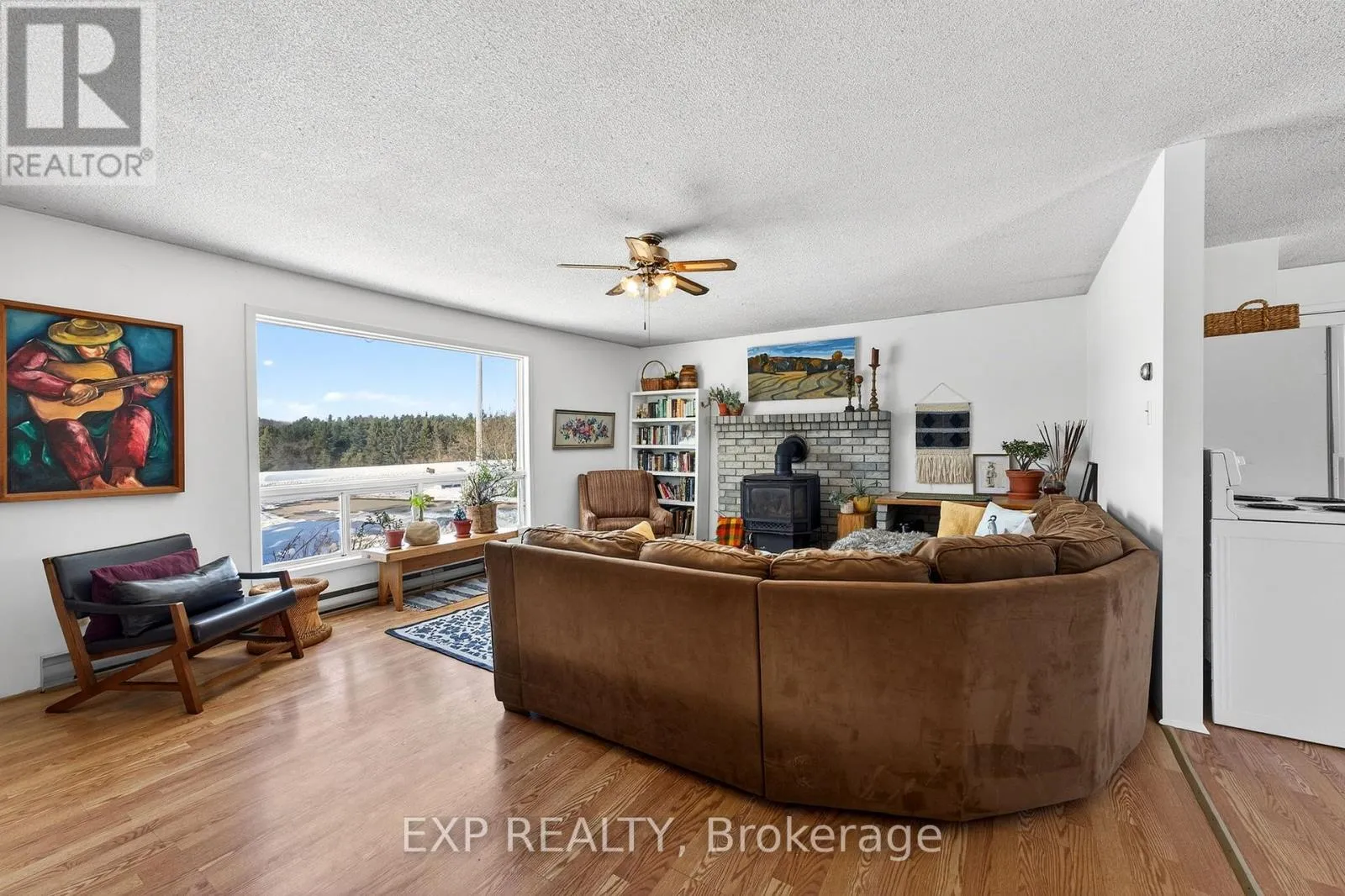 Cross Streets: Ridge Rd & Shannon Rd. ** Directions: From Picton follow Lake Street South to Ridge Road, then follow to 1423 on the left. Welcome to this solid raised bungalow set on a private acre, overlooking farm fields and forest, just minutes to Bloomfield, Picton, and Sandbanks beaches. Built in the 1990's and thoughtfully designed for practical, comfortable living, this home offers bright open-concept living spaces with a cozy propane fireplace in the living room, and large windows for lots of natural light. The main level features two bedrooms and a spacious 5-piece bath with convenient main-floor laundry. The finished lower level provides exceptional flexibility with a large rec room, 3-piece bath, generous bedroom with freestanding pellet stove, and a walkout to a private patio. This layout is ideal for an in-law suite, guest retreat, or potential income-generating space. Additional highlights include an attached garage, large mudroom, and a detached outbuilding offering outstanding potential for a workshop, art studio, home business, or future garden suite. A tool shed and custom-built children's play fort add to the functionality and enjoyment of the property. The excellent well has never gone dry, providing peace of mind for long-term living. Enjoy privacy, space, and versatility on this beautiful property, in a well-built home with flexible living options and endless potential in the heart of Prince Edward County. (id:27476)