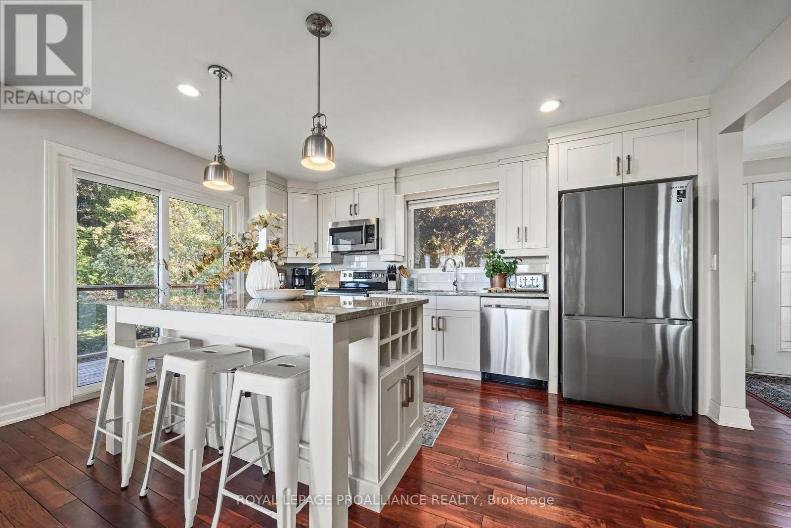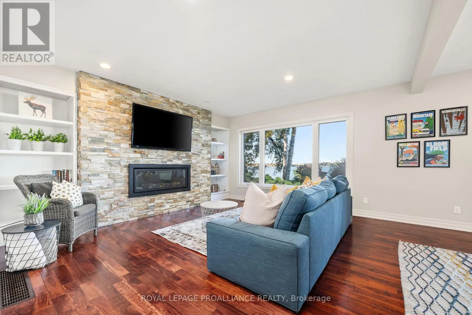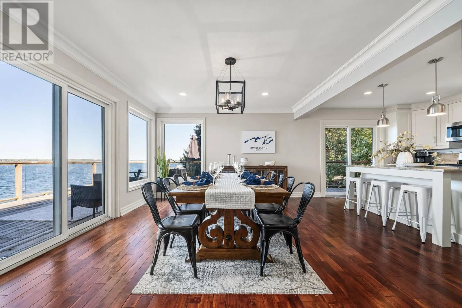 Cross Streets: County Road 3/Eastern Ave. ** Directions: County Rd 3 to Eastern Ave. Nestled on the picturesque shores of the Bay of Quinte, this extraordinary residence presents an unparalleled opportunity to embrace waterfront living. With 3,000 square feet of well designed interior space, this hidden gem seamlessly marries both quiet luxury and casual comfort. Upon entering you are immediately struck by the beautiful light flooding in from every direction. The spacious living room is anchored by a stone fireplace and unmatched views. The dining area opens to the wrap around raised deck through patio doors and the bright and sunny kitchen with a sizeable island, ample cabinetry and direct access to the BBQ. Tucked down the hall you will find 2 large guest rooms, main 4pc bath, a full guest suite with a walk in closet and 3pc ensuite. On the lower level, the spacious primary suite features direct access to the meticulously maintained lawns and gardens, a private 4pc ensuite with separate soaker tub and large shower. The bright, large games room with a stacked stone fireplace and matching bar area offer a seamless transition between indoor and outdoor living spaces making this the perfect location for entertaining large crowds or cuddling up for quiet movie nights. A 4th guest room, a 2pc bath, a large laundry room and a huge storage room under the garage fill out the lower level. The large bright windows and patio doors in the walkout lower level and direct access to the waterfront, allows natural light to flood the space. This versatile space adapts to the changing needs of modern families and could easily suite a multigenerational family. A stone shoreline that offers both step in shallow spaces and deep waters off the dock suitable for various water sports and activities. Tucked just off sought after Rednersville Road (Cty Rd 3) and located 6 mins to the Bay Bridge, 20 mins from Highway 401, this extraordinary home allows you to be close to everything and still able enjoy the beaches and wineries that define the sought after 'County' lifestyle. (id:27476)
