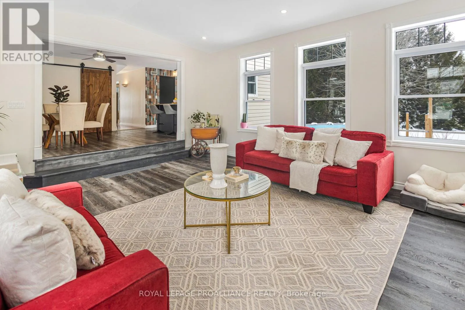 Cross Streets: County Rd 3 & Loyalist Parkway. ** Directions: Hwy 401 to Loyalist Parkway, South on Loyalist Parkway to Taft Road. Welcome to this wonderful family home set on a quiet road in beautiful Prince Edward County, offering just under 5 acres of manicured property and two impressive outbuildings.The main floor of this home includes a formal living room and a cozy den, both finished with hardwood flooring. The beautiful kitchen offers an abundance of quality cabinetry, granite countertops, tile backsplash, and a bright breakfast nook that is perfect for casual meals.The dining area off the kitchen flows into a bright sunken family room featuring a propane fireplace, stunning cathedral ceilings and windows making this space feel open and bright, creating a warm and inviting gathering space. The main level is completed by a convenient laundry area and a 4-piece bathroom.The second level offers a spacious primary suite with a walk-in closet and private 4-piece ensuite. Two additional bedrooms and another 4-piece bathroom provide plenty of space for family or guests.The full, unspoiled basement offers excellent storage and the potential to create a large recreation room or additional living space.Outside, the property showcases beautifully maintained grounds and gardens, mature trees, and a seasonal creek along the south side of the property. Enjoy the covered front porch, stamped concrete front walkway, rear patio, and an additional concrete entertaining area-perfect for relaxing or hosting gatherings.A standout feature of this property is the two detached outbuildings. The 28' x 40' insulated garage that, like the house, includes its own geothermal heating and cooling system and can accommodate up to four vehicles. There is also a large 30' x 60' Quonset hut, providing exceptional storage space for vehicles, equipment, or recreational toys.The property offers abundant parking and is surrounded by nature, with frequent sightings of birds, wild turkey, and deer.A truly unique property offering space, privacy, and incredible value. (id:27476)