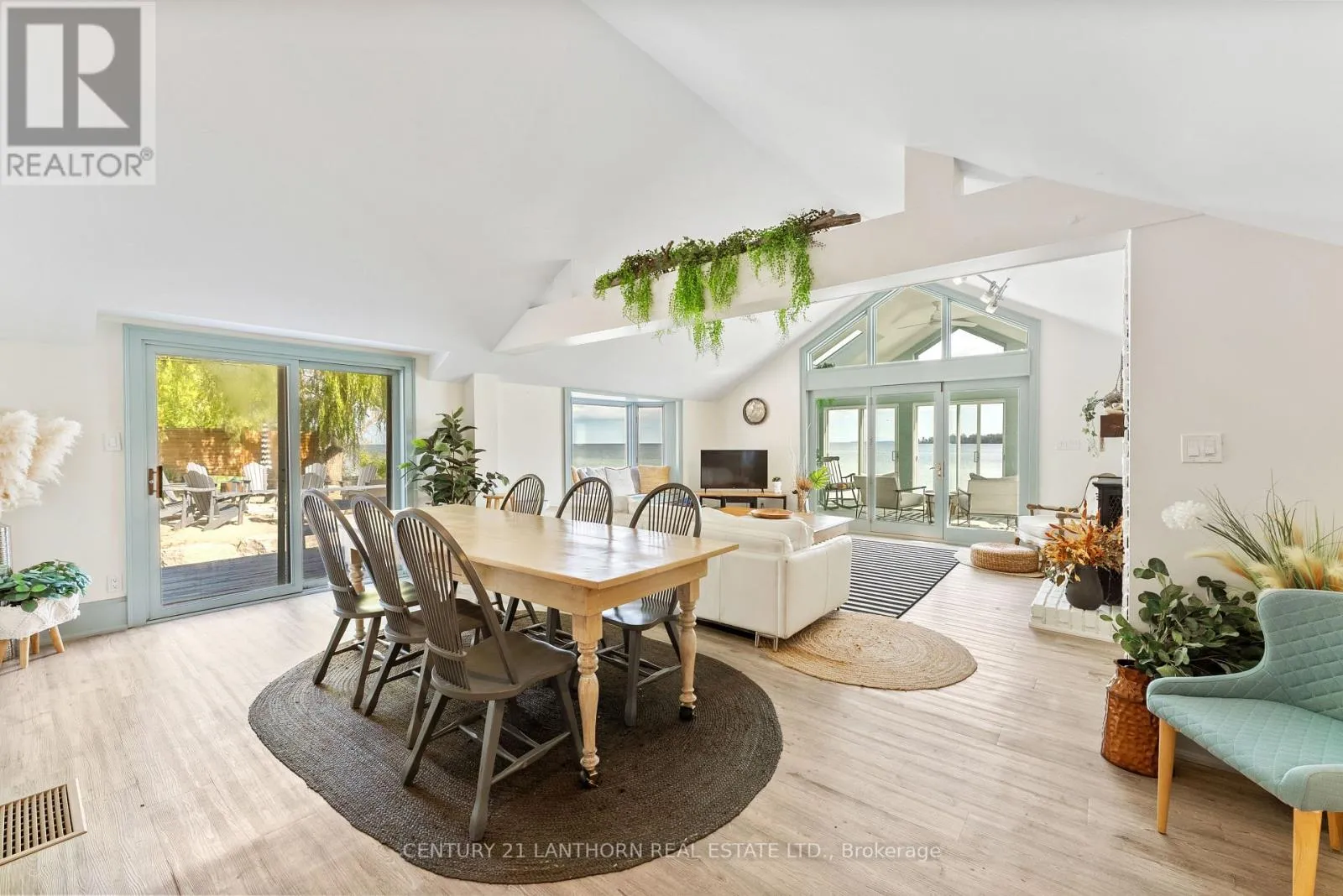 Cross Streets: County Rd 8/County Rd 13. ** Directions: From Picton East on County Rd 8 to Waupoos. Overlooking Waupoos island and with breathtaking sunrises, this rare 1.7 acre waterfront retreat offers privacy, flexibility, and a thriving five-star short term rental business. Zoned Tourist Commercial, its ideal as your personal getaway, income property, or intimate event venue. The property features five charming cottages with a total of 10 king bedrooms, comfortably sleeping 20 guests. Each cottage blends cozy charm with modern comfort, inviting sitting areas and stylish bathrooms. The main cottage sits right on the waters edge, offering three bedrooms, two baths, a full kitchen, washer/dryer, and sunroom for your year-round enjoyment. The four additional cottages each have their own character, from peaceful balconies with lake views to bright, cheerful interiors including a chef's kitchen complete with a restaurant sized stove, two ovens, fridge, sink and stainless steel counters. Outside you'll find multiple areas to relax. After a long day on the water, rinse off in the outdoor shower, warm up by the campfire or enjoy a delicious meal in the enclosed dining area. Just a short stroll from local restaurants and food trucks in Waupoos, this property combines serene seclusion with convenient access to everything Prince Edward County has to offer. Whether kept as a personal retreat or continued as a successful rental operation, this exceptional property delivers an unmatched blend of privacy, profitability, and natural beauty on the Bay. (id:27476)