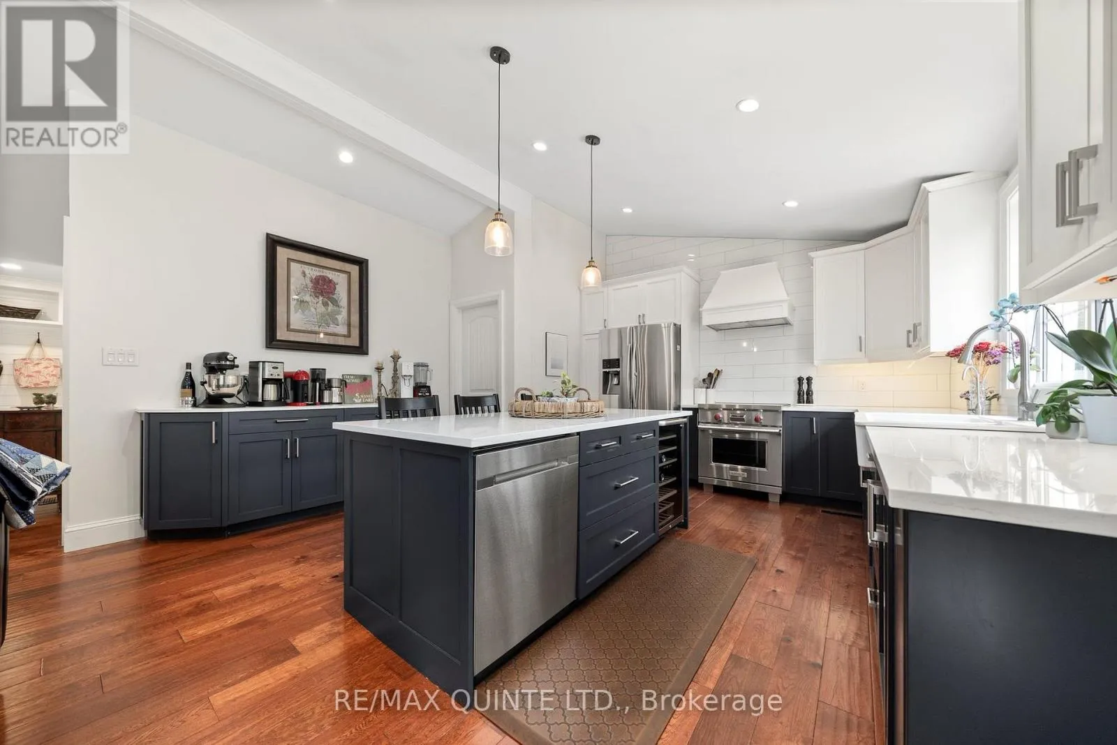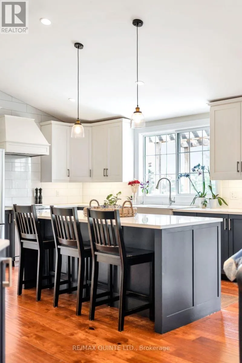 Cross Streets: Rednersville Road. ** Directions: From Belleville, turn west onto County Road 3, then turn right onto Eastern Avenue. Sign on the property. Country Living with Bay of Quinte Views - Just Minutes from Belleville! Welcome to this beautifully renovated bungalow, ideally situated on a generous 0.62-acre lot with picturesque views of the Bay of Quinte just across the road. Enjoy peaceful water vistas from the north-facing windows while being only 10 minutes from all the amenities of Belleville. Step inside to a stunning open-concept great room featuring gleaming hardwood floors and a seamless flow into the dining area-perfect for entertaining. A large picture window fills the space with natural light and provides direct access to the private backyard, ideal for summer barbecues and outdoor gatherings. The cozy living room is anchored by a WETT-certified wood stove and opens onto a deck where you can relax and take in the beautiful water views. The chef-inspired kitchen is a true standout, showcasing quartz countertops, a farmhouse sink, under-cabinet lighting, a pantry with convenient pull-out shelving, and a custom butler's servery-reflecting exceptional pride of ownership. The spacious primary suite features a large picture window, a stylish 3-piece ensuite, and an expansive walk-in closet with custom shelving. The fully finished walk-out basement offers a large rec room with built-in shelving and an electric fireplace, a finished laundry area, space for a home gym, and plenty of storage. Completing the property is a double-car garage with a 552 sq. ft. loft, offering incredible potential for a studio, guest suite, office, or additional fitness space. Move-in ready and thoughtfully renovated throughout, this home offers the perfect blend of country tranquility and convenient access to city amenities-all with beautiful views of the Bay of Quinte. (id:27476)