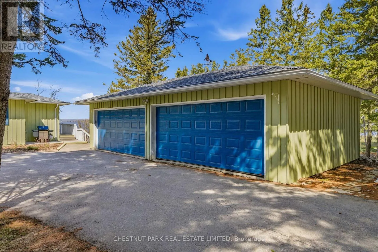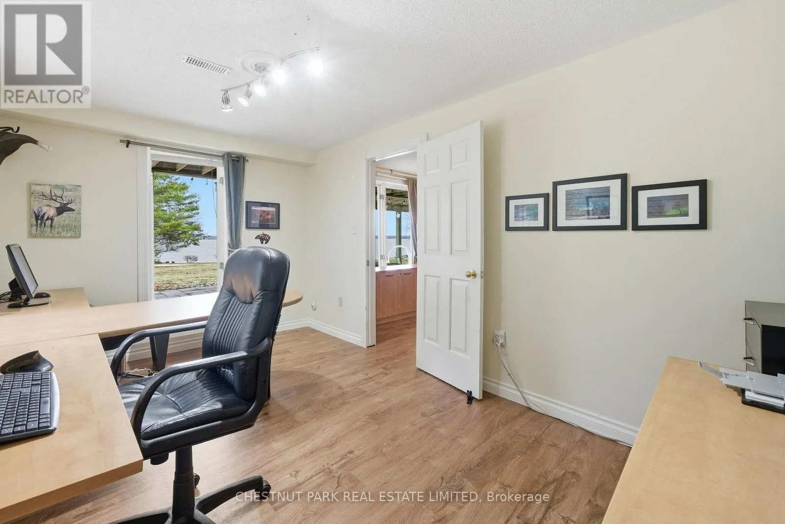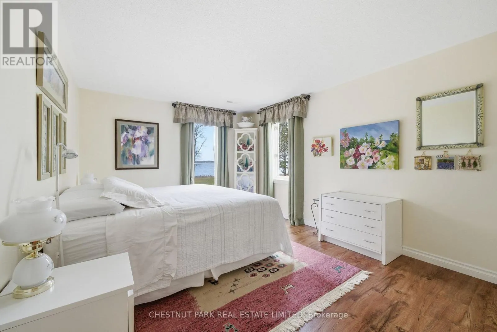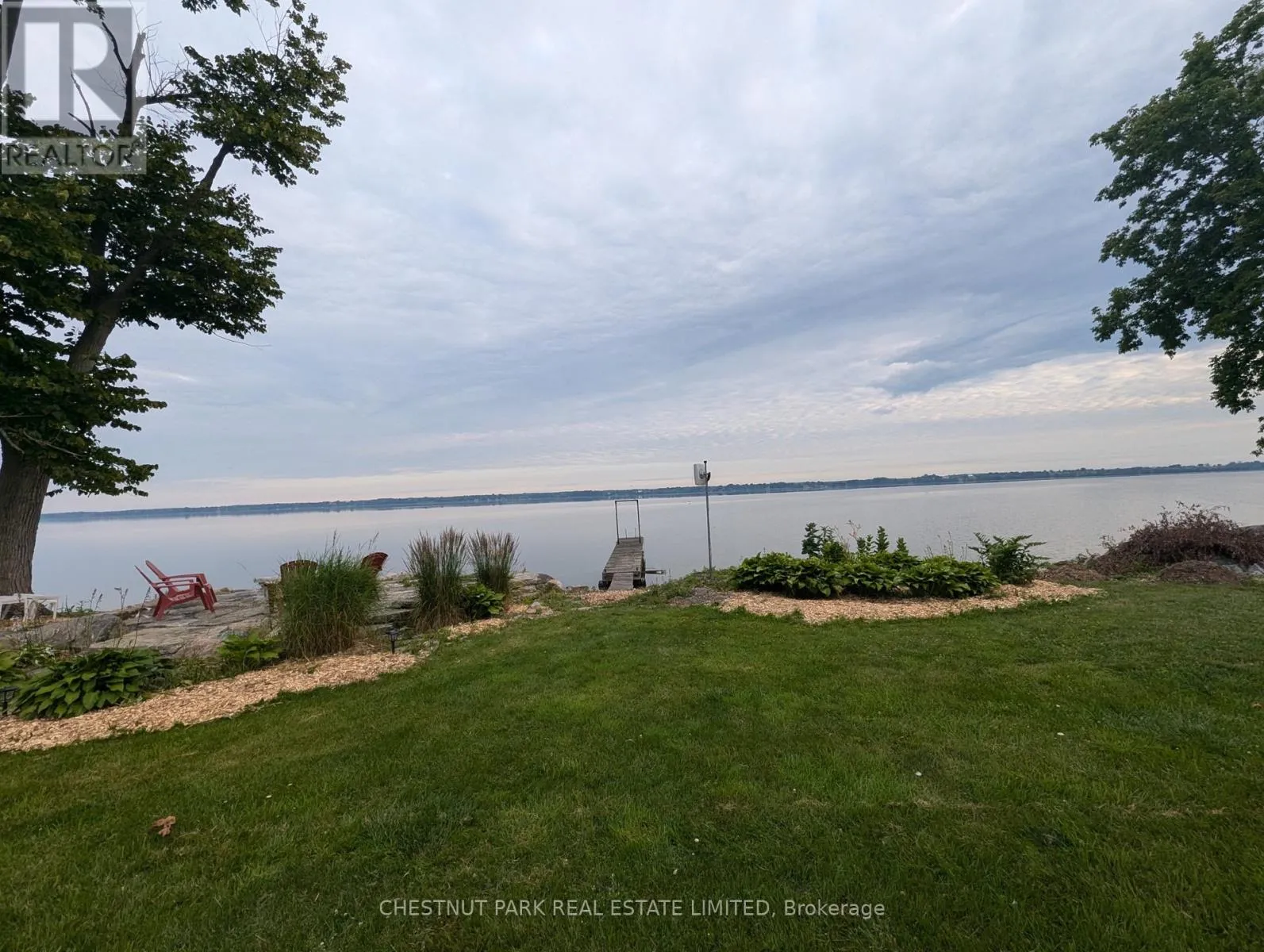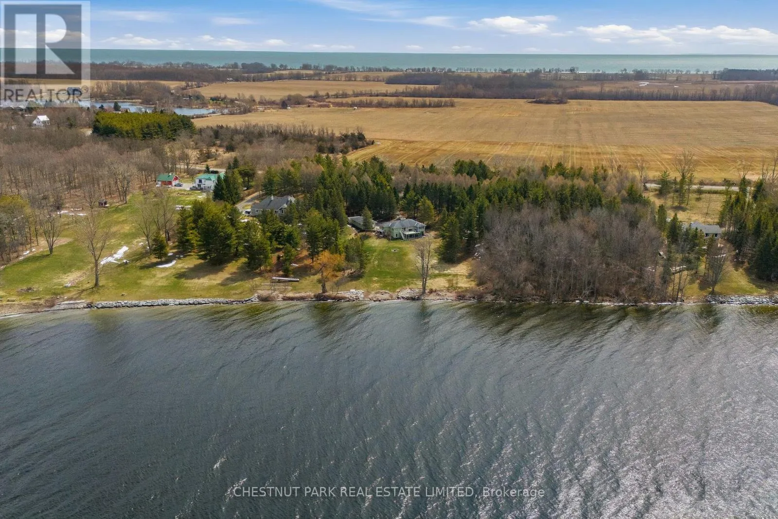 Cross Streets: County Road 7 Between Kaiser Crossroad and Prinyers Cove Crescent. ** Directions: Picton Main Street to Bridge St, right onto County Road 7. A Waterfront Retreat in Prince Edward County. Set along 275 feet of pristine waterfront on 3.4 acres of private, gently treed landscape, this naturally inviting property unfolds with a quiet sense of arrival. A meandering drive leads through mature pines to a thoughtfully positioned bungalow with walkout, where open lawns meet the shoreline and sunset views become part of daily life. Seamless Indoor-Outdoor Living defines the experience here, with curated exterior spaces including a broad deck and stone patio extending toward a bonfire gathering area and the water's edge. The setting feels both refined and effortless, designed for long summer evenings and unhurried mornings alike. Inside, the home is defined by light, scale, and an intuitive connection to its surroundings. Principal rooms are generously proportioned, with expansive windows framing uninterrupted views across green space and water. A sunroom and walkout deck offer year-round vantage points, while the main floor primary suite with ensuite is privately set for comfort and ease. A den on this level provides a flexible retreat or studio. Space to Gather, Space to Unwind continues in the walkout lower level, where a spacious recreation area, two additional bedrooms, a three-piece bath, laundry with storage, and an optional bedroom, office, or hobby room create a thoughtful balance between hosting and quiet retreat. Complementing the residence, a detached dual-bay garage presents excellent opportunity for workshop use, recreational gear, or future refinement. Along the shoreline, the water is clean and inviting-ideal for swimming, boating, canoeing, or kayaking-while the setting attracts an ever-changing tapestry of birdlife. Step beyond to peaceful country roads for walking and cycling, with Picton, Waupoos, and Lake on the Mountain all within easy reach. Private. Peaceful. Distinctly County. (id:27476)