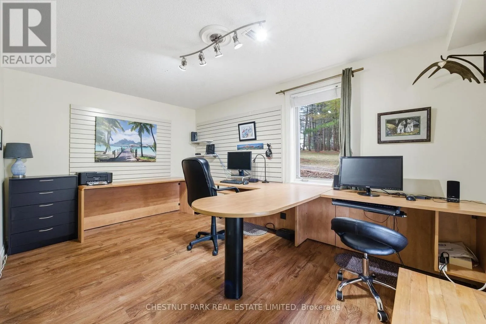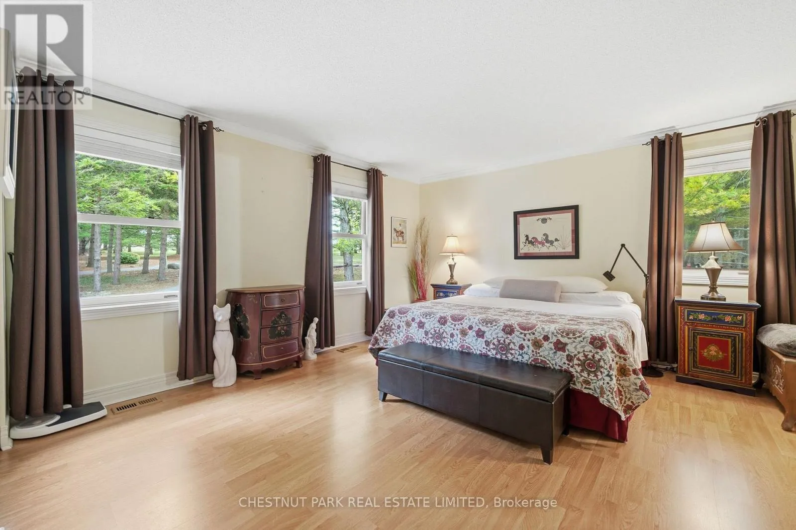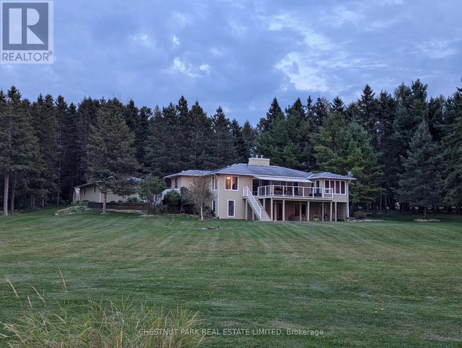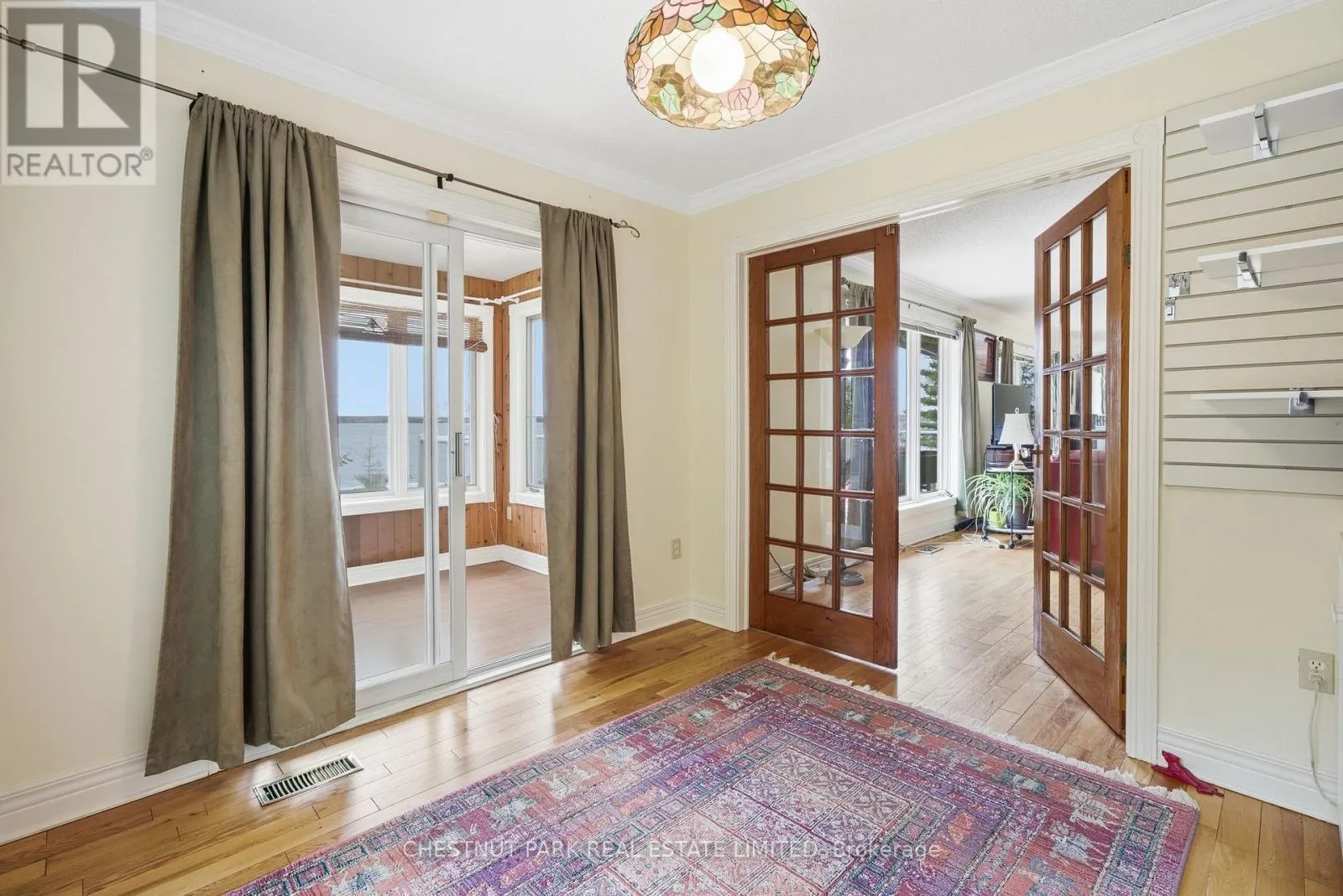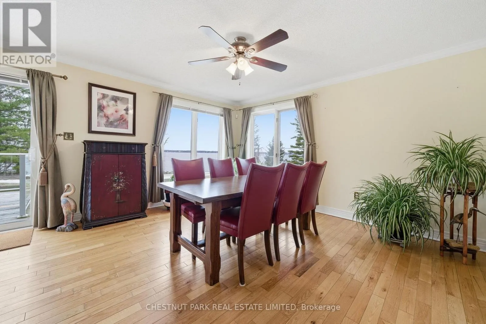 Cross Streets: County Road 7 Between Kaiser Crossroad and Prinyers Cove Crescent. ** Directions: Picton Main Street to Bridge St, right onto County Road 7. A Waterfront Retreat in Prince Edward County. Set along 275 feet of pristine waterfront on 3.4 acres of private, gently treed landscape, this naturally inviting property unfolds with a quiet sense of arrival. A meandering drive leads through mature pines to a thoughtfully positioned bungalow with walkout, where open lawns meet the shoreline and sunset views become part of daily life. Seamless Indoor-Outdoor Living defines the experience here, with curated exterior spaces including a broad deck and stone patio extending toward a bonfire gathering area and the water's edge. The setting feels both refined and effortless, designed for long summer evenings and unhurried mornings alike. Inside, the home is defined by light, scale, and an intuitive connection to its surroundings. Principal rooms are generously proportioned, with expansive windows framing uninterrupted views across green space and water. A sunroom and walkout deck offer year-round vantage points, while the main floor primary suite with ensuite is privately set for comfort and ease. A den on this level provides a flexible retreat or studio. Space to Gather, Space to Unwind continues in the walkout lower level, where a spacious recreation area, two additional bedrooms, a three-piece bath, laundry with storage, and an optional bedroom, office, or hobby room create a thoughtful balance between hosting and quiet retreat. Complementing the residence, a detached dual-bay garage presents excellent opportunity for workshop use, recreational gear, or future refinement. Along the shoreline, the water is clean and inviting-ideal for swimming, boating, canoeing, or kayaking-while the setting attracts an ever-changing tapestry of birdlife. Step beyond to peaceful country roads for walking and cycling, with Picton, Waupoos, and Lake on the Mountain all within easy reach. Private. Peaceful. Distinctly County. (id:27476)