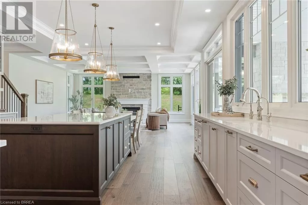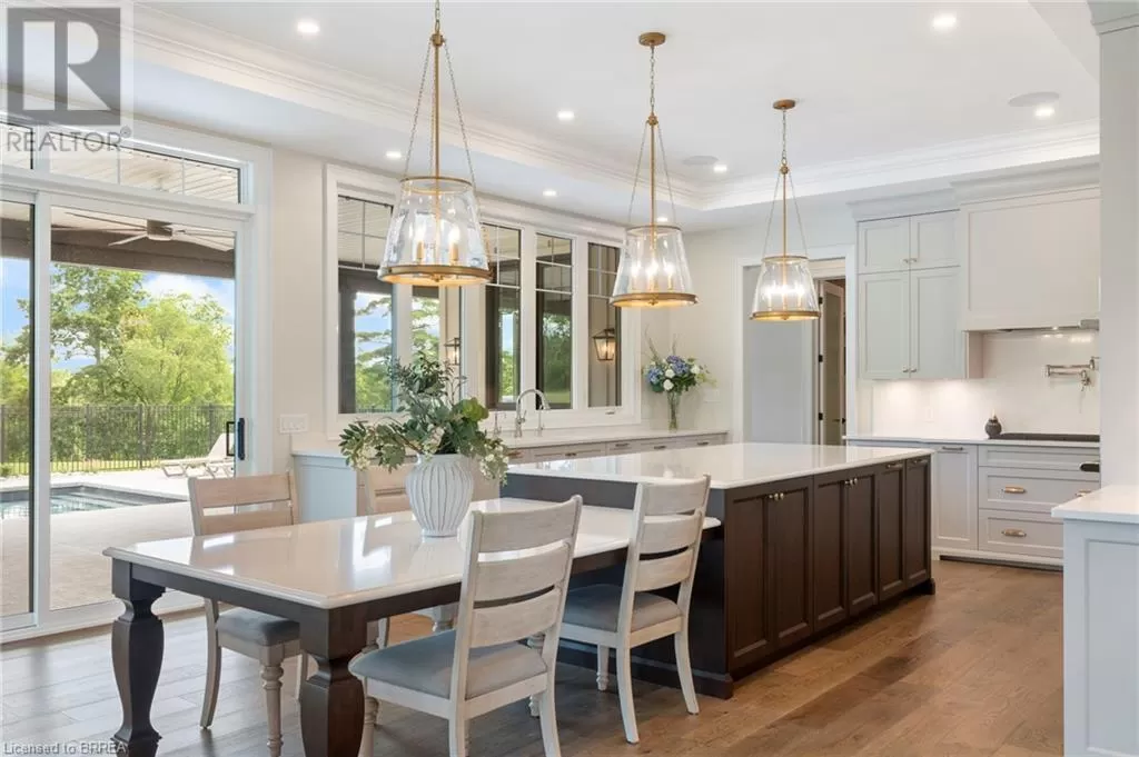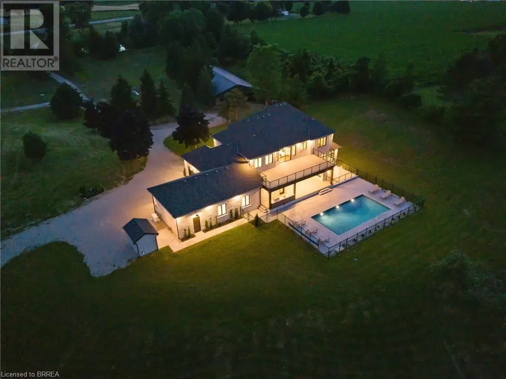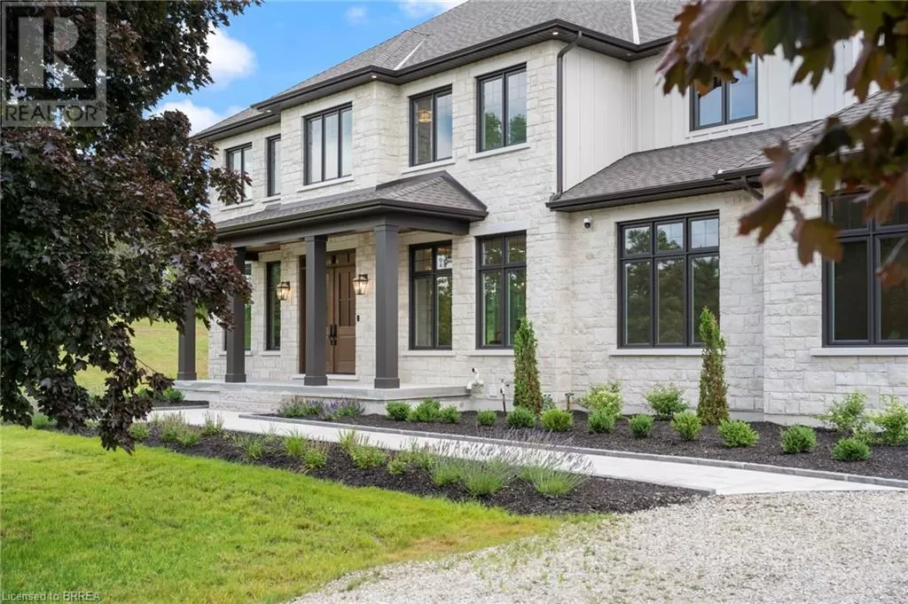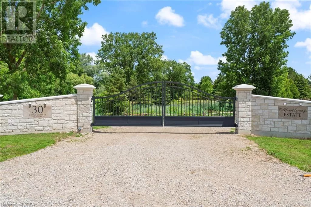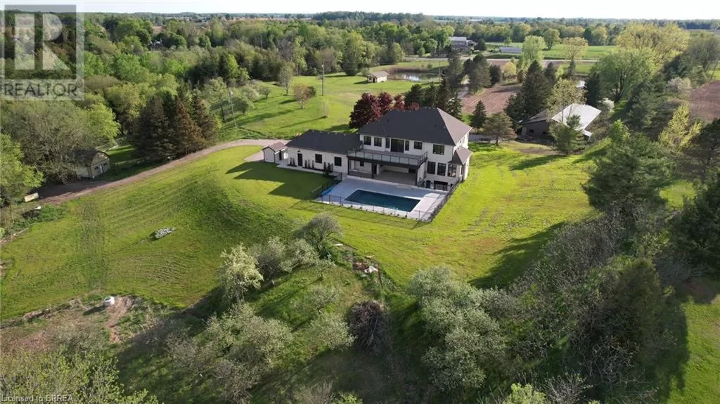 Governors Road W Presenting a once in a lifetime property. Welcome home to the iconic Falkland Springs Estate at 30 Brant County Highway 2, Brant. A generational retreat on over 10 acres of scenic countryside. Custom built in 2024, this elegant showpiece is perched atop a breathtaking landscapeâa legacy property offering unmatched privacy and grandeur. Equipped with outbuildings and ponds, start the tour through a gated entry that leads up a winding and fenced road. Commanding a staggering 7472 sq ft en masse, with nearly 2000 sq ft in the oversized 4 car garage and 7100 sq ft of which is masterfully crafted finished living space. The home radiates timeless sophistication. Find 6 bedrooms and 6 bathrooms including a separately accessed and full in law suite and full kitchen. Enter the home into a bright and inviting foyer. To the left, a richly appointed office with custom built-ins and a gas fireplace sets a refined tone. On the right, an elegant dining room showcases intricate ceiling details, ideal for formal gatherings. The heart of the home is the open-concept kitchen and living room. Coffered ceilings and a cozy gas fireplace create warmth, with sight-lines of private resort-style backyardâcomplete with an outdoor kitchen, covered patio, gas fireplace, and heated saltwater pool. The chefs kitchen outfitted with high end, built-in appliances. It seamlessly blends functionality with luxury with an abundance of custom cabinetry and ample counter space. Upstairs enjoy a coffee bar leading into the primary suite with walk through closet, a stunning en suite and a balcony overlooking the pool and mature trees. The bright basement is home to the secondary suite but is still versatile and has room for the whole family! Enjoy an additional rec room, a sauna with plenty of seating and a dedicated theatre room. This home has it all! For the hobbyist the larger of the outbuildings was once a hatchery is 5387 sq ft. For the discerning buyer; donât wait, begin your legacy today. (id:27476)