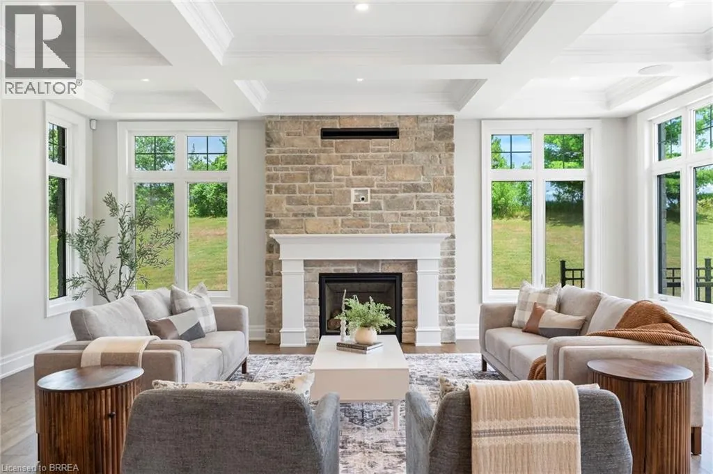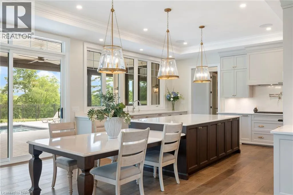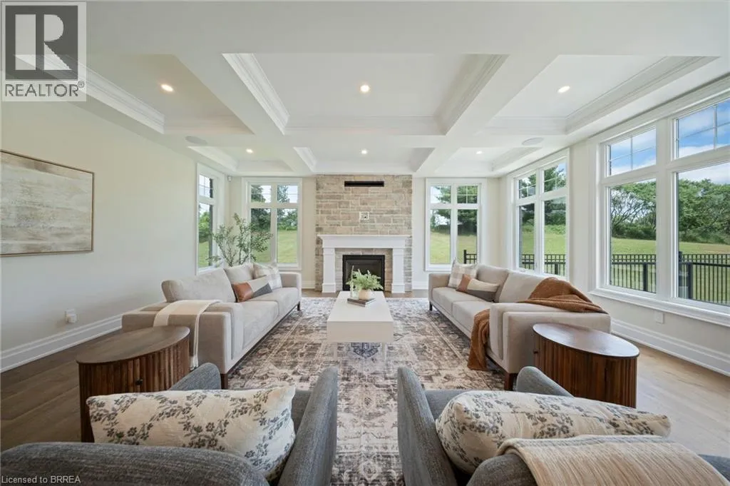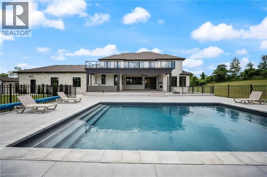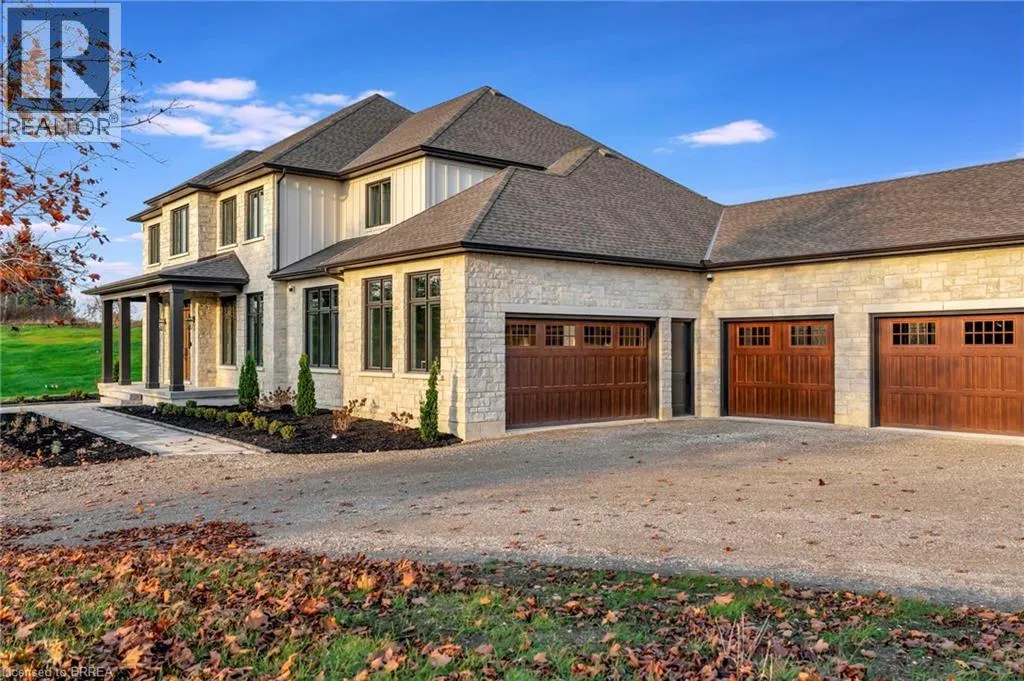 Governors Road W Presenting a once in a lifetime property. Welcome home to the iconic Falkland Springs Estate at 30 Brant County Highway 2, Brant. A generational retreat on over 10 acres of scenic countryside. Custom built in 2024, this elegant showpiece is perched atop a breathtaking landscapeâa legacy property offering unmatched privacy and grandeur. Equipped with outbuildings and ponds, start the tour through a gated entry that leads up a winding and fenced road. Commanding a staggering 7472 sq ft en masse, with nearly 2000 sq ft in the oversized 4 car garage and 7100 sq ft of which is masterfully crafted finished living space. The home radiates timeless sophistication. Find 6 bedrooms and 6 bathrooms including a separately accessed and full in law suite and full kitchen. Enter the home into a bright and inviting foyer. To the left, a richly appointed office with custom built-ins and a gas fireplace sets a refined tone. On the right, an elegant dining room showcases intricate ceiling details, ideal for formal gatherings. The heart of the home is the open-concept kitchen and living room. Coffered ceilings and a cozy gas fireplace create warmth, with sight-lines of private resort-style backyardâcomplete with an outdoor kitchen, covered patio, gas fireplace, and heated saltwater pool. The chefs kitchen outfitted with high end, built-in appliances. It seamlessly blends functionality with luxury with an abundance of custom cabinetry and ample counter space. Upstairs enjoy a coffee bar leading into the primary suite with walk through closet, a stunning en suite and a balcony overlooking the pool and mature trees. The bright basement is home to the secondary suite but is still versatile and has room for the whole family! Enjoy an additional rec room, a sauna with plenty of seating and a dedicated theatre room. This home has it all! For the hobbyist the larger of the outbuildings was once a hatchery is 5387 sq ft. For the discerning buyer; donât wait, begin your legacy today. (id:27476)