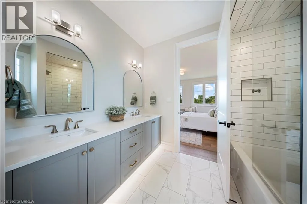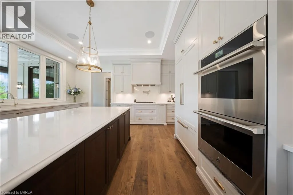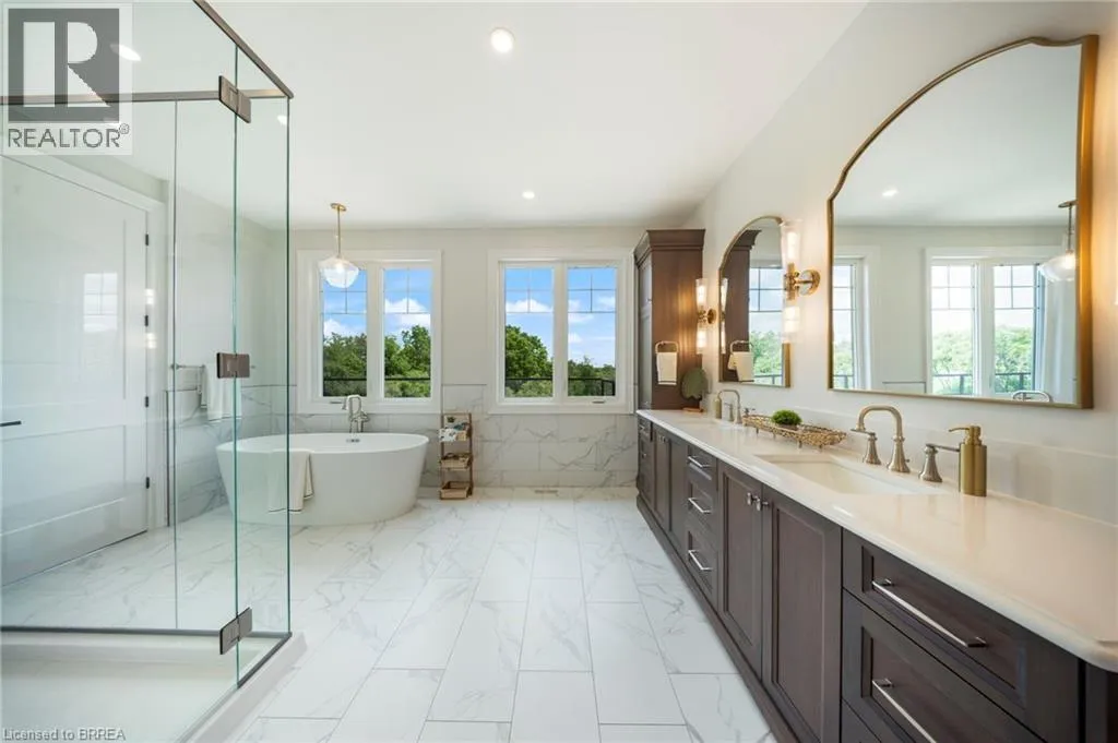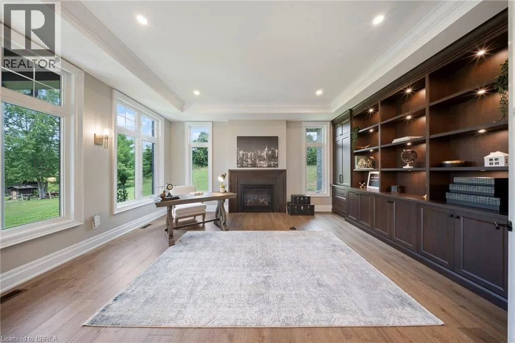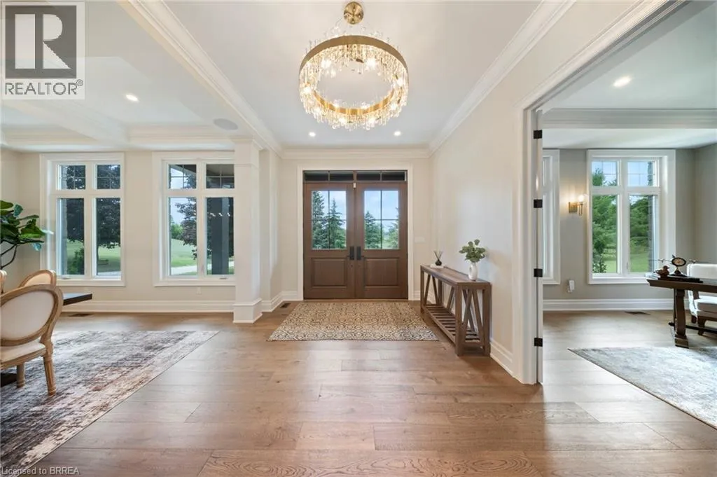 Governors Road W Presenting a once in a lifetime property. Welcome home to the iconic Falkland Springs Estate at 30 Brant County Highway 2, Brant. A generational retreat on over 10 acres of scenic countryside. Custom built in 2024, this elegant showpiece is perched atop a breathtaking landscapeâa legacy property offering unmatched privacy and grandeur. Equipped with outbuildings and ponds, start the tour through a gated entry that leads up a winding and fenced road. Commanding a staggering 7472 sq ft en masse, with nearly 2000 sq ft in the oversized 4 car garage and 7100 sq ft of which is masterfully crafted finished living space. The home radiates timeless sophistication. Find 6 bedrooms and 6 bathrooms including a separately accessed and full in law suite and full kitchen. Enter the home into a bright and inviting foyer. To the left, a richly appointed office with custom built-ins and a gas fireplace sets a refined tone. On the right, an elegant dining room showcases intricate ceiling details, ideal for formal gatherings. The heart of the home is the open-concept kitchen and living room. Coffered ceilings and a cozy gas fireplace create warmth, with sight-lines of private resort-style backyardâcomplete with an outdoor kitchen, covered patio, gas fireplace, and heated saltwater pool. The chefs kitchen outfitted with high end, built-in appliances. It seamlessly blends functionality with luxury with an abundance of custom cabinetry and ample counter space. Upstairs enjoy a coffee bar leading into the primary suite with walk through closet, a stunning en suite and a balcony overlooking the pool and mature trees. The bright basement is home to the secondary suite but is still versatile and has room for the whole family! Enjoy an additional rec room, a sauna with plenty of seating and a dedicated theatre room. This home has it all! For the hobbyist the larger of the outbuildings was once a hatchery is 5387 sq ft. For the discerning buyer; donât wait, begin your legacy today. (id:27476)